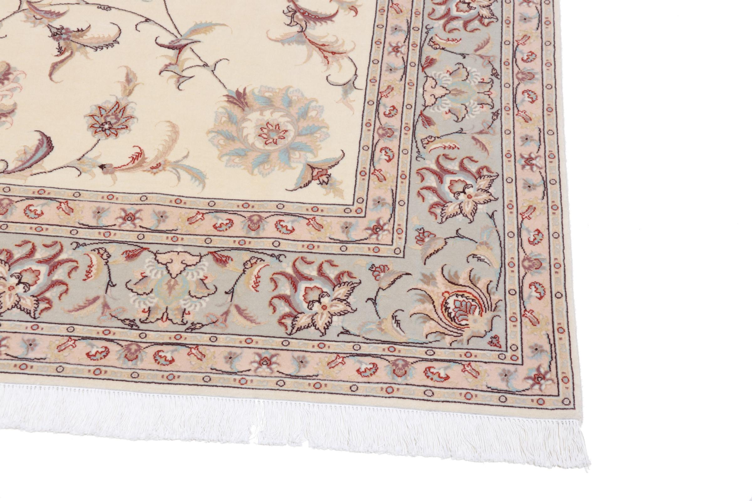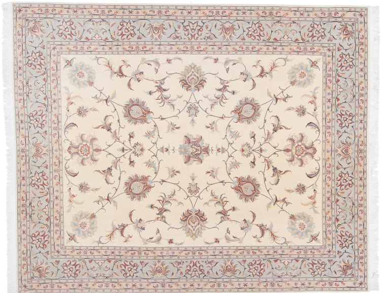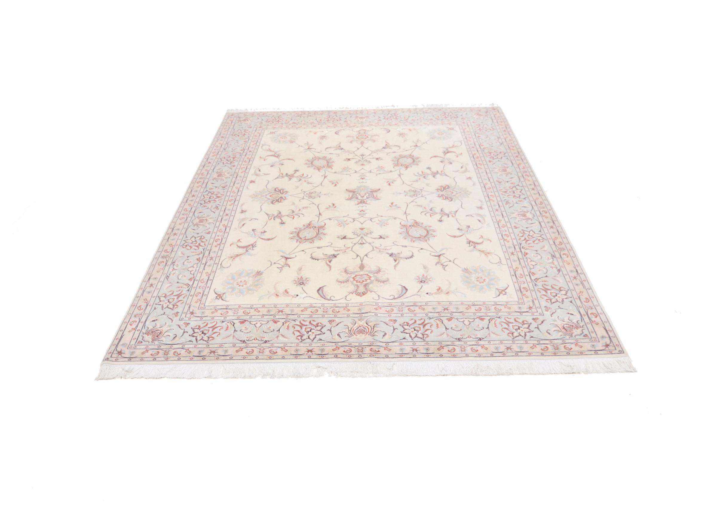 Tæppe-nr.: 40550049624 Størrelse: 246x202 cm Tykkelse: ca. 7 mm Knuder: 450 000 - 500 000 / m² Forarbejdelse: Knyttet i hånden Luv: Uld med silke Kæde: Bomuld Oprindelse: Persien / Iran Alder: Ny Vægt: ca. 15 kg Også kendt som Tabriz, Tabris, Täbris, Tebriz, Tebris, 40Raj, 50Raj Antal på lager: Unik - Kun 1 tilbage på lager