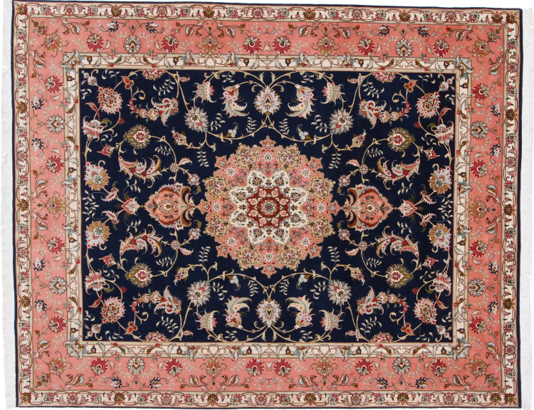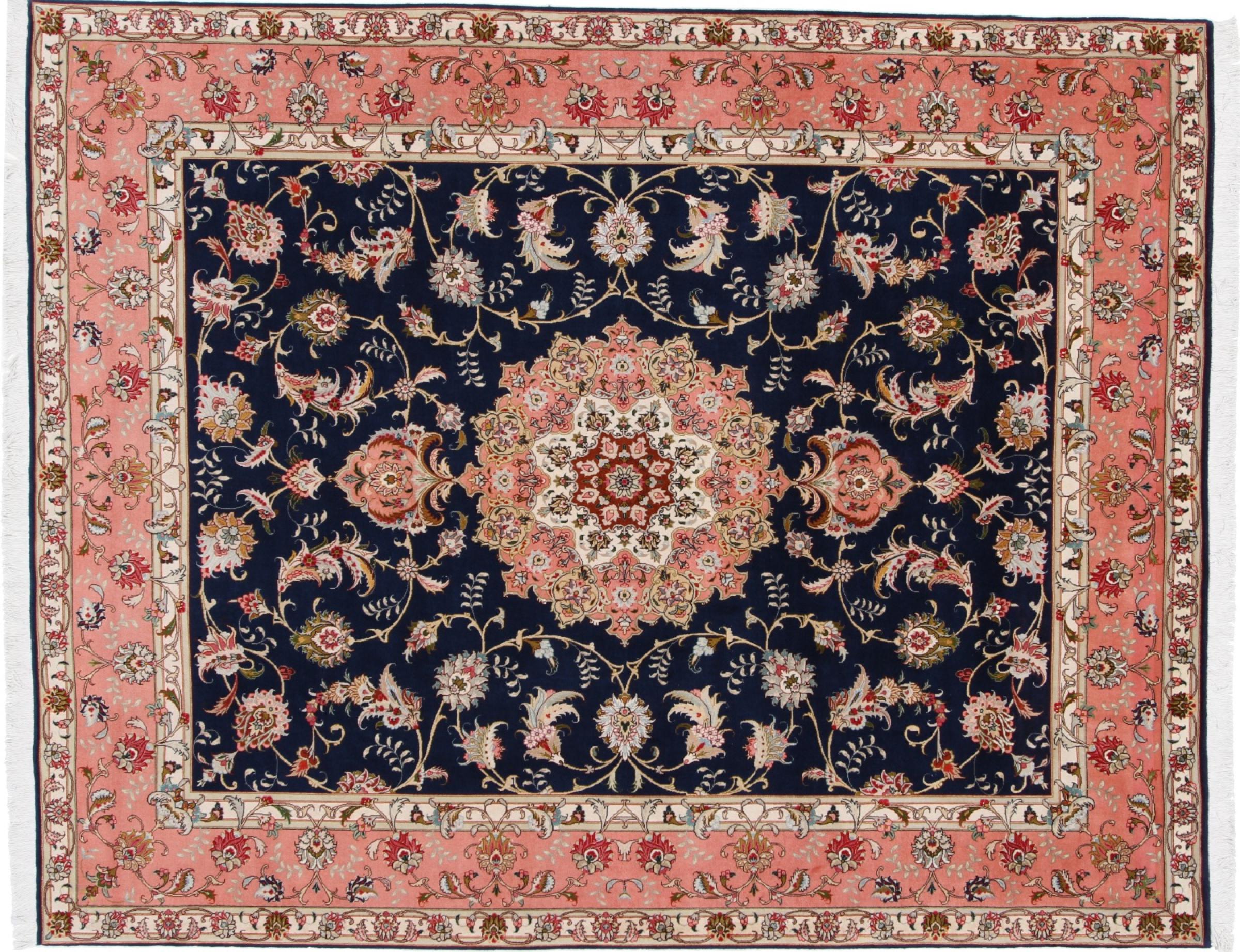 Tæppe-nr.: 38660043278 Størrelse: 253x201 cm Tykkelse: ca. 7 mm Knuder: 450 000 - 500 000 / m² Forarbejdelse: Knyttet i hånden Luv: Uld med silke Kæde: Bomuld Oprindelse: Persien / Iran Alder: Ny Vægt: ca. 15 kg Også kendt som Tabriz, Tabris, Täbris, Tebriz, Tebris, 40Raj, 50Raj Antal på lager: Unik - Kun 1 tilbage på lager