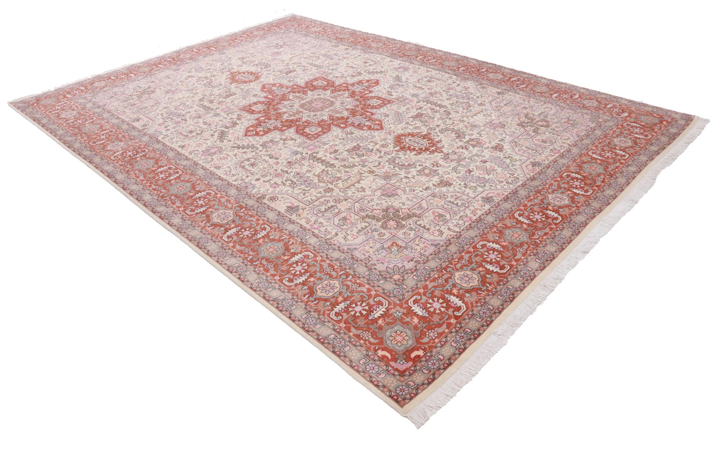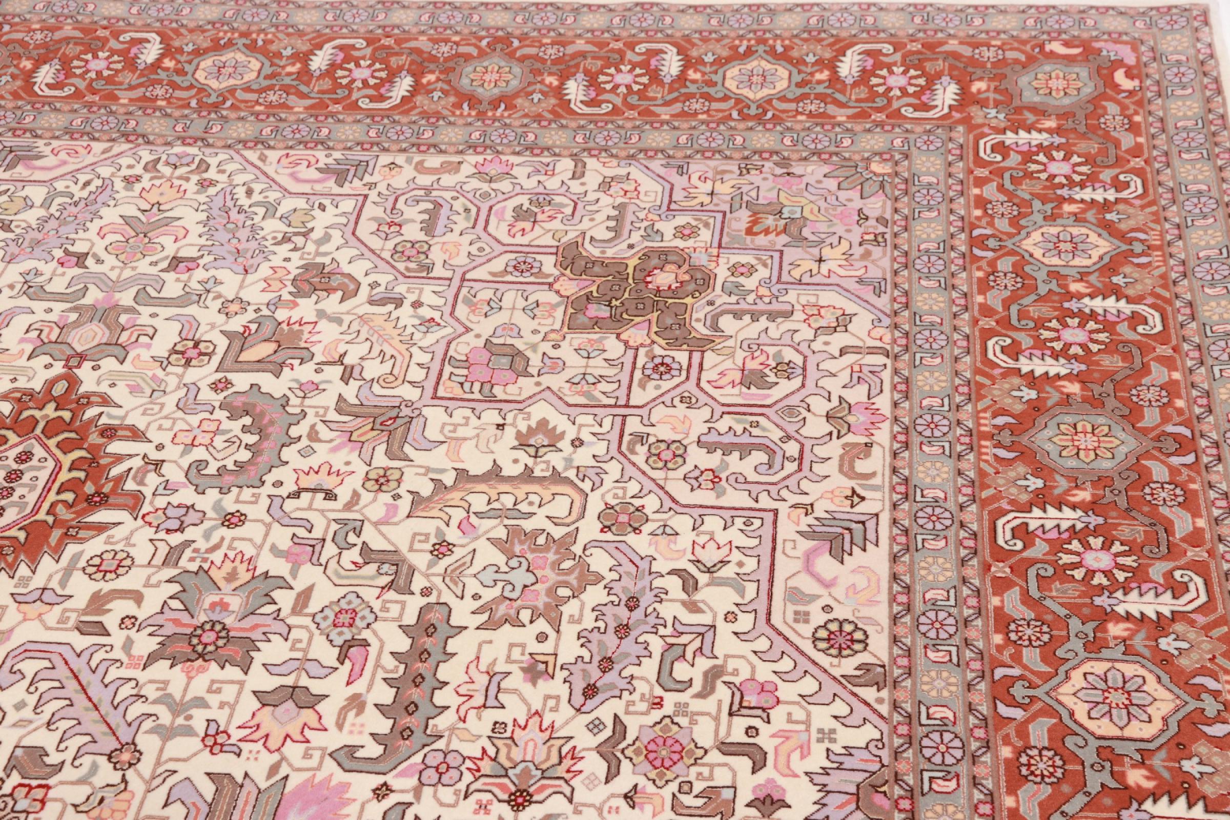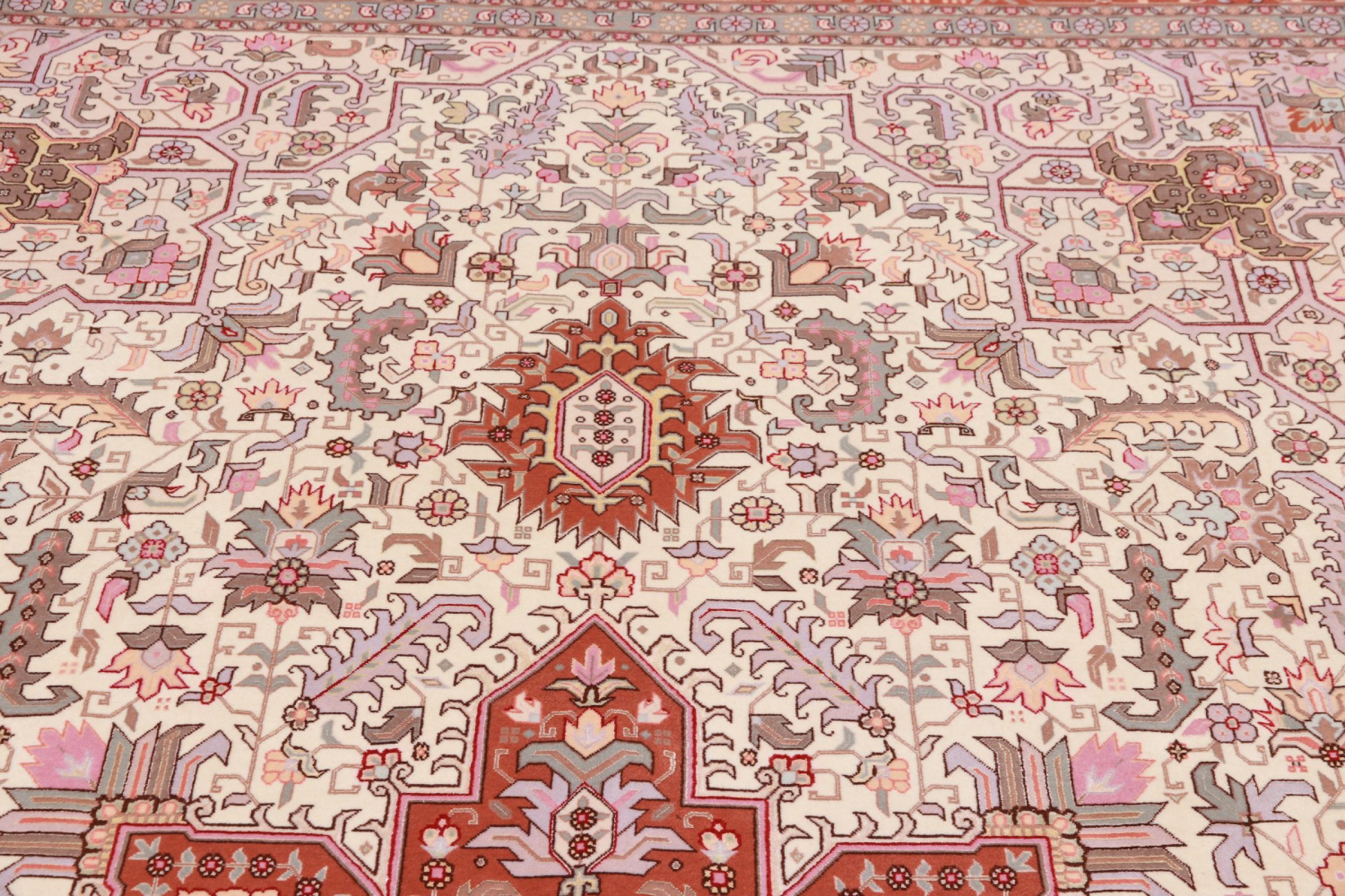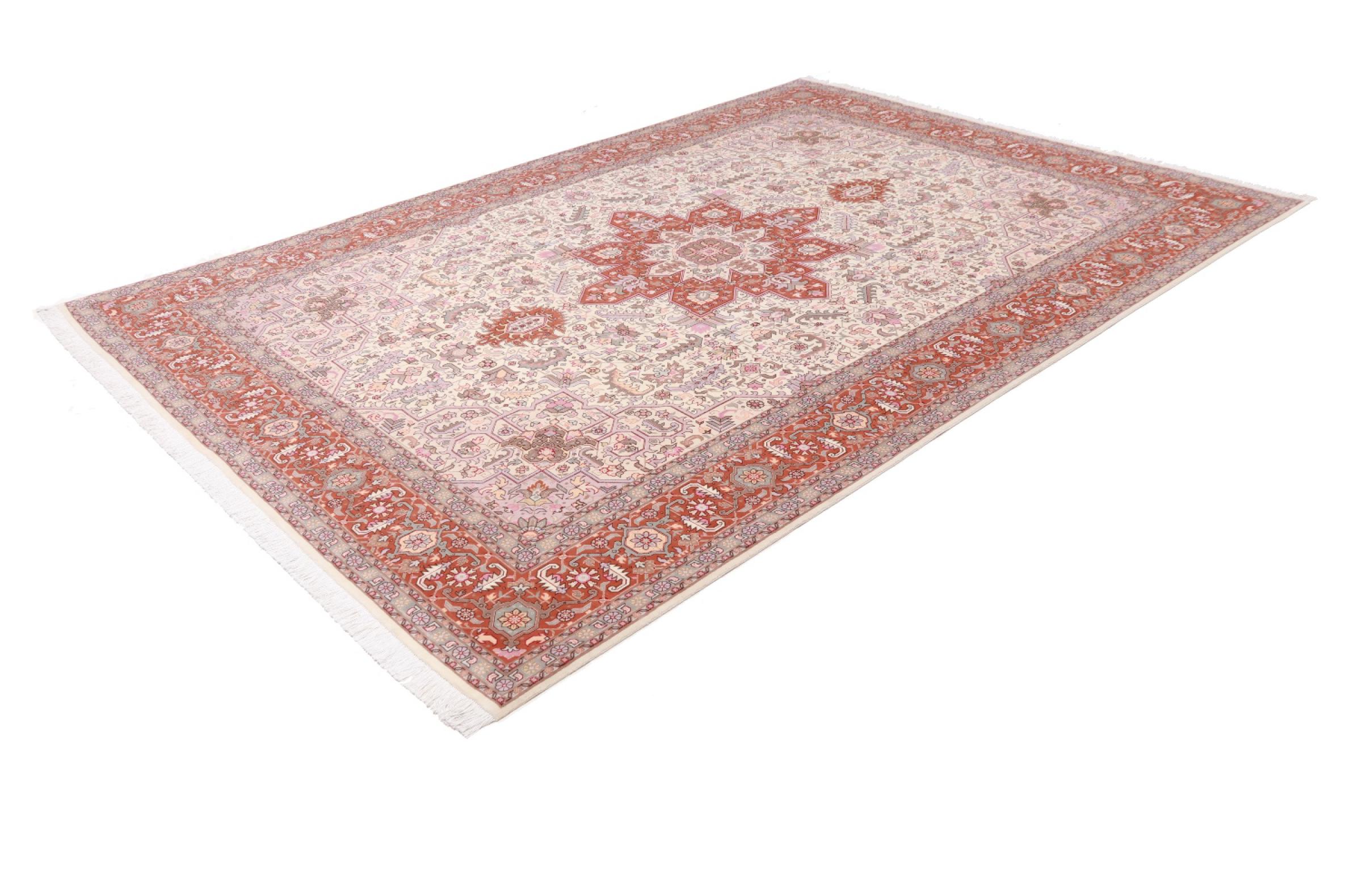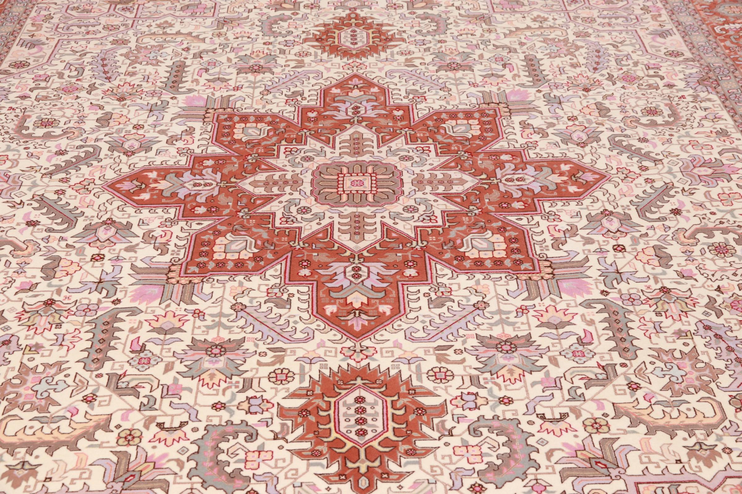 Tæppe-nr.: 48690051084 Størrelse: 362x256 cm Tykkelse: ca. 7 mm Knuder: 450 000 - 500 000 / m² Forarbejdelse: Knyttet i hånden Luv: Uld med silke Kæde: Bomuld Oprindelse: Persien / Iran Alder: Ny Vægt: ca. 28 kg Også kendt som Tabriz, Tabris, Täbris, Tebriz, Tebris, 40Raj, 50Raj Antal på lager: Unik - Kun 1 tilbage på lager