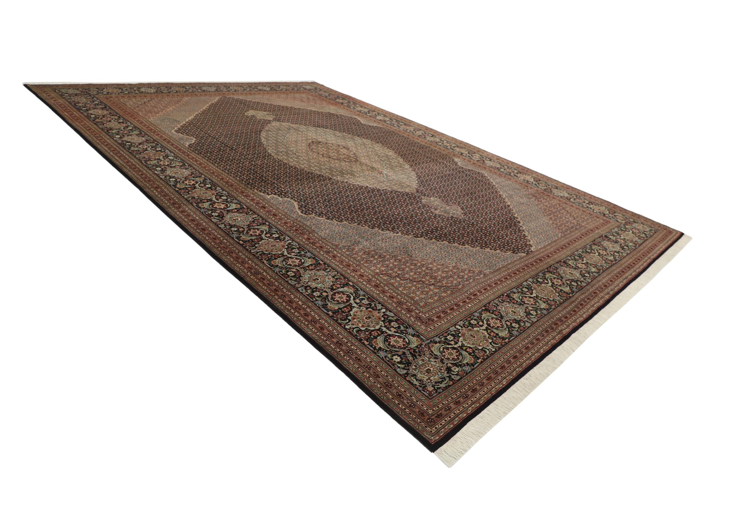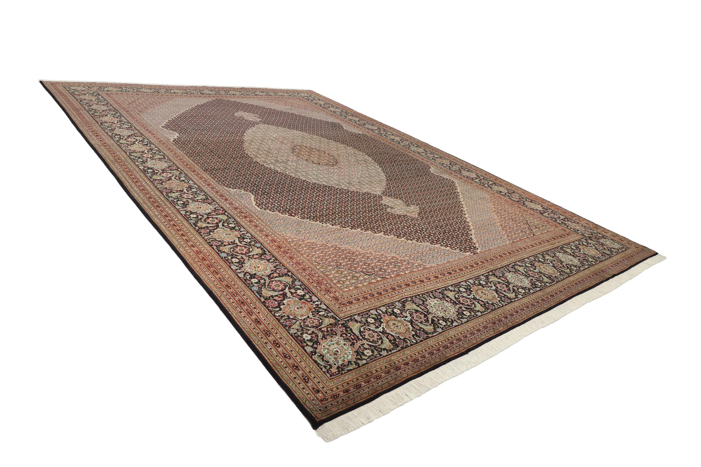 Tæppe-nr.: 291798003117029 Størrelse: 488x351 cm Tykkelse: ca. 7 mm Knuder: 450 000 - 500 000 / m² Forarbejdelse: Knyttet i hånden Luv: Uld med silke Kæde: Bomuld Oprindelse: Persien / Iran Alder: Ny Vægt: ca. 51 kg Også kendt som Tabriz, Tabris, Täbris, Tebriz, Tebris, 40Raj, 50Raj Antal på lager: Unik - Kun 1 tilbage på lager