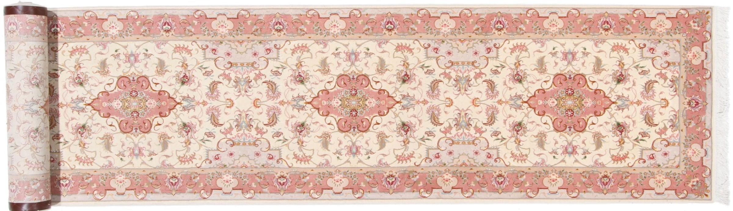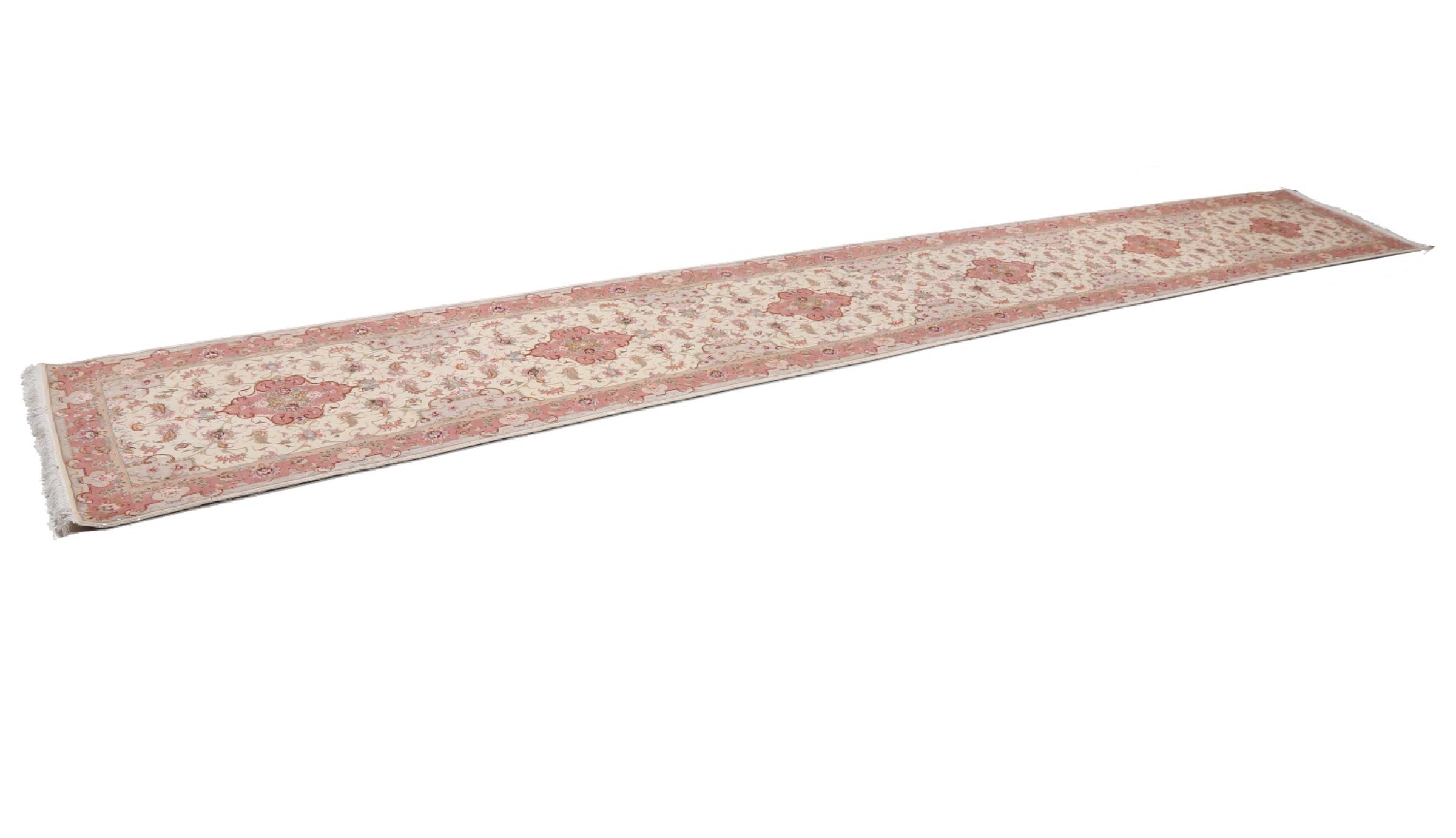 Tæppe-nr.: 47120052440 Størrelse: 632x91 cm Tykkelse: ca. 7 mm Knuder: 450 000 - 500 000 / m² Forarbejdelse: Knyttet i hånden Luv: Uld med silke Kæde: Bomuld Oprindelse: Persien / Iran Alder: Ny Vægt: ca. 17 kg Også kendt som Tabriz, Tabris, Täbris, Tebriz, Tebris, 40Raj, 50Raj Antal på lager: Unik - Kun 1 tilbage på lager