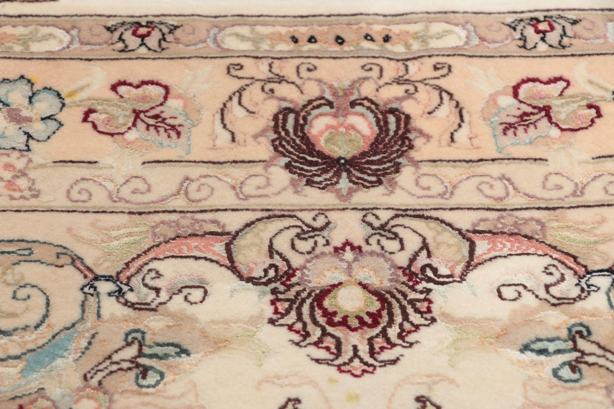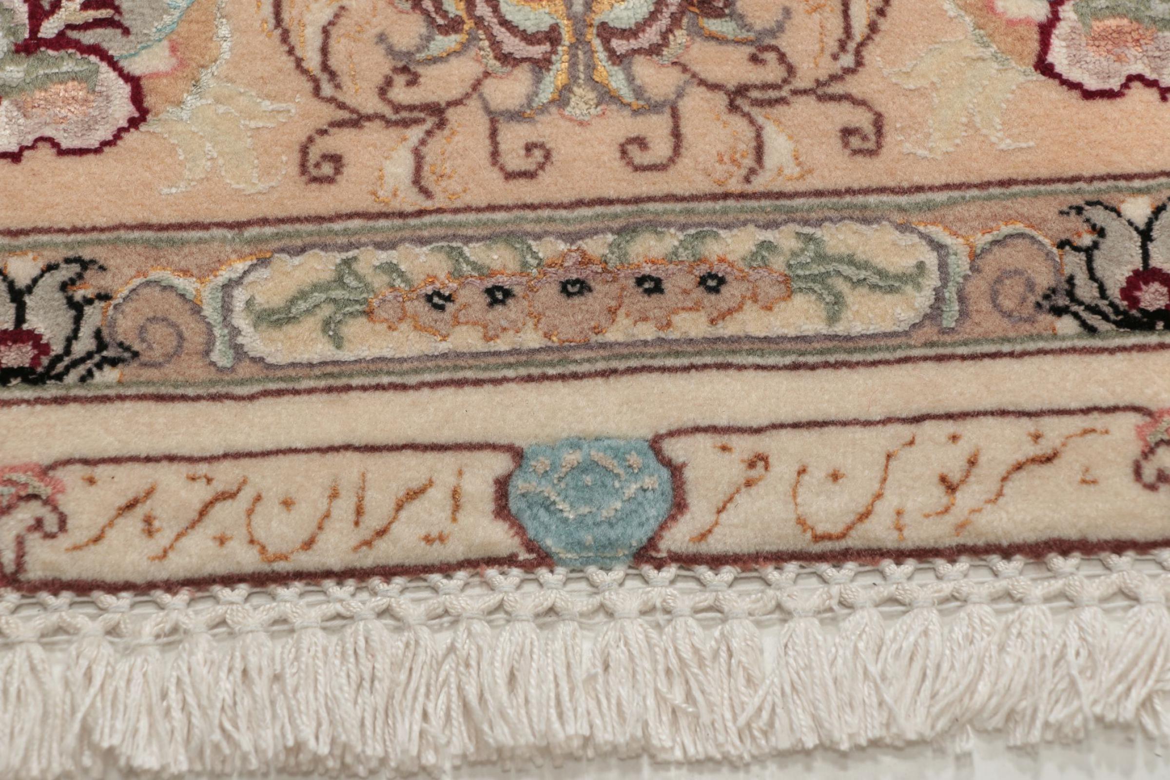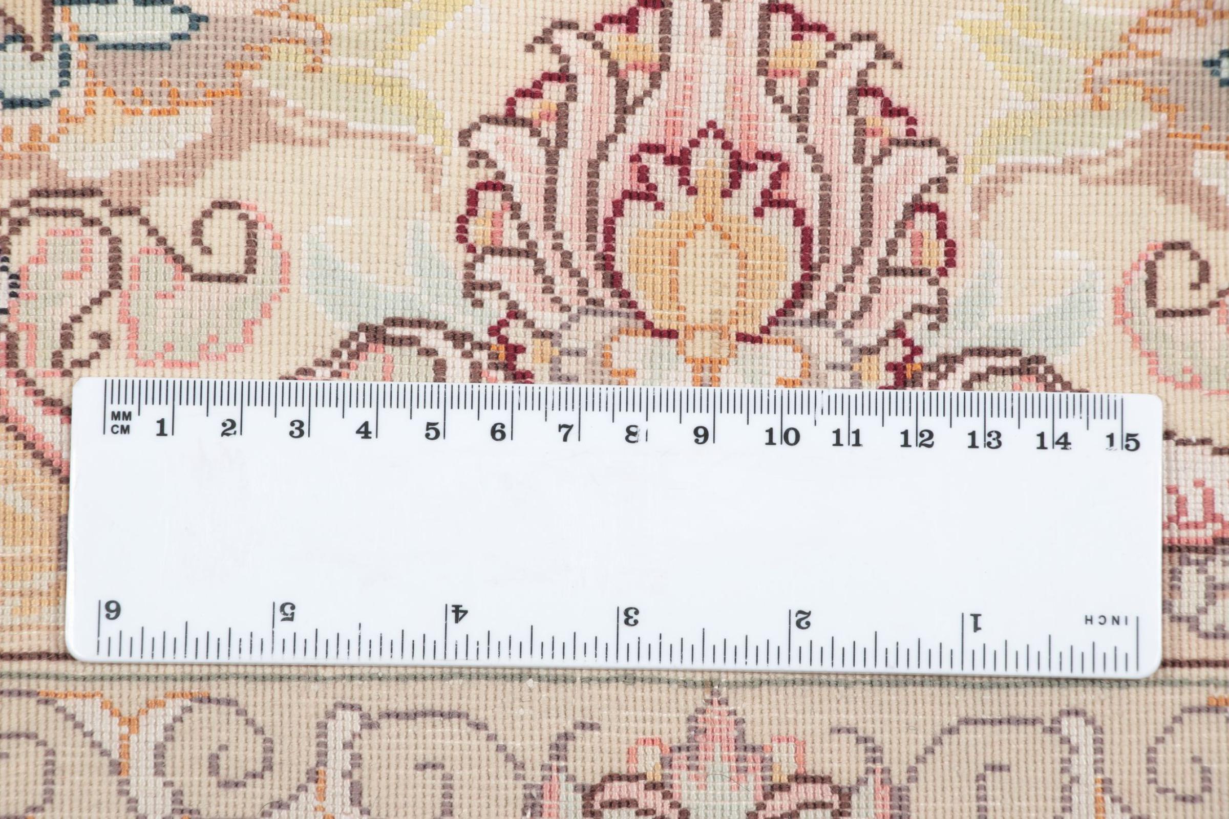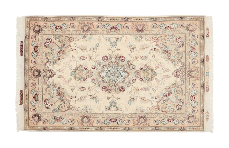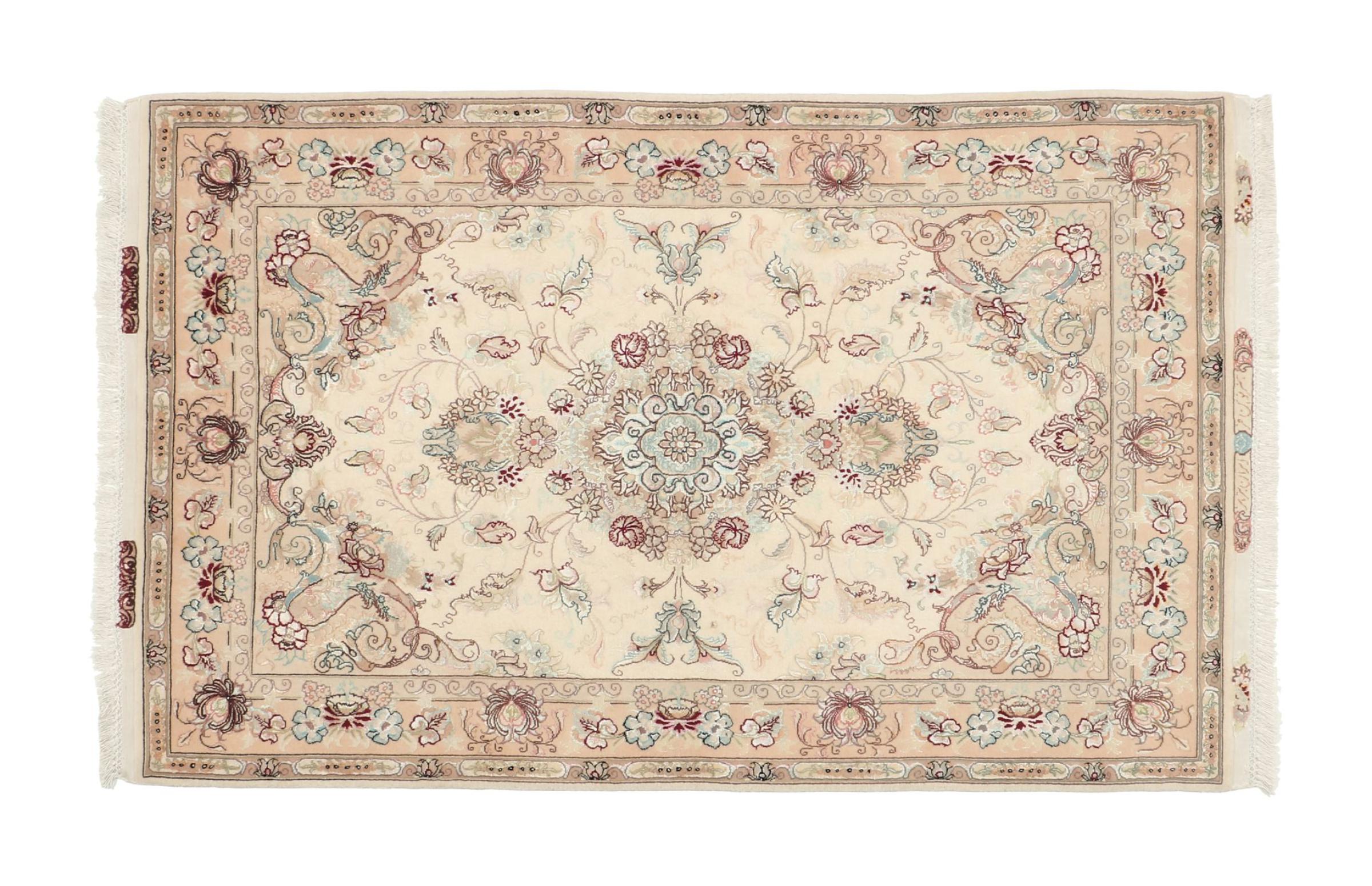 Tæppe-nr.: 309439008229441 Størrelse: 156x101 cm Tykkelse: ca. 7 mm Knuder: 440 000 - 490 000 / m² Forarbejdelse: Knyttet i hånden Luv: Uld med silke Kæde: Silke Oprindelse: Persien / Iran Alder: Ny Vægt: ca. 5 kg Også kendt som Tabriz, Tabris, Täbris, Tebriz, Tebris, 40Raj, 50Raj Antal på lager: Unik - Kun 1 tilbage på lager