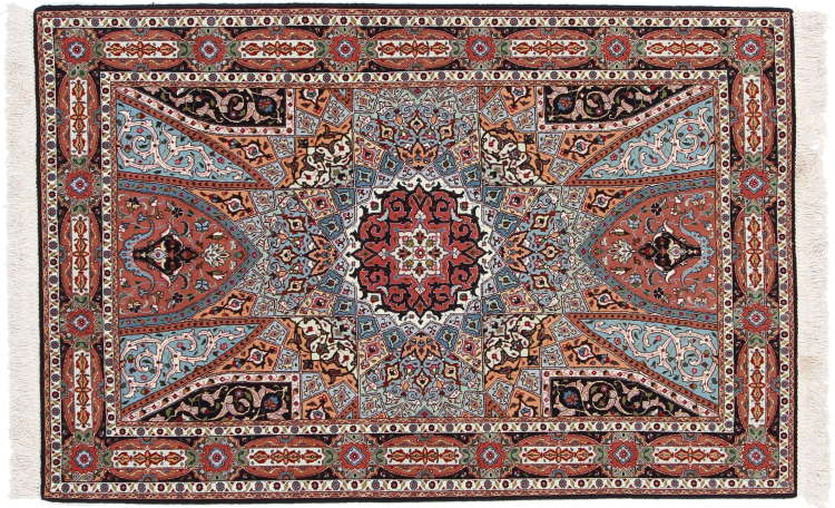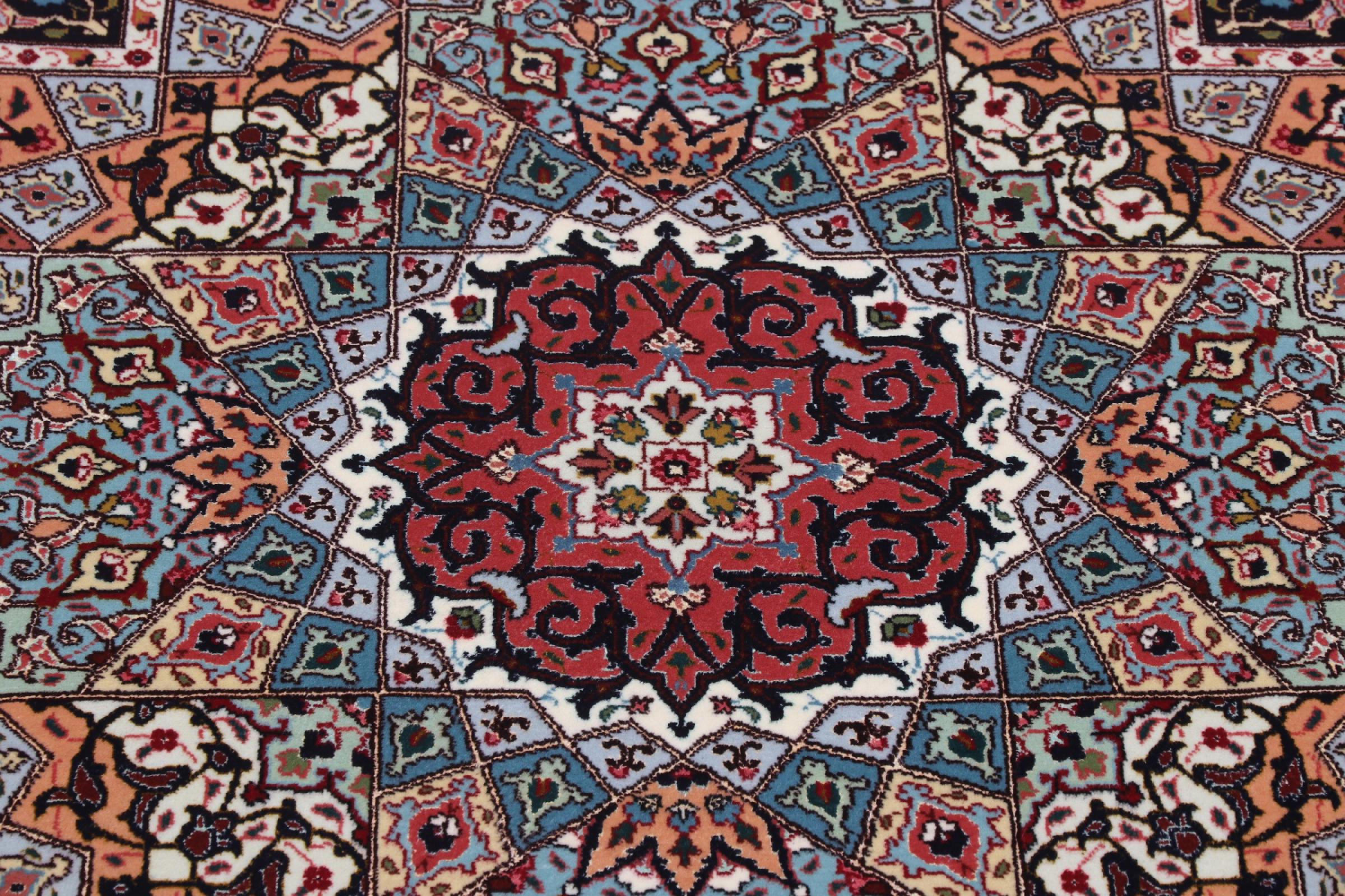 Dette Tabriz Gumbad minder med sine buede former om kupler af moskeer. Takket være brugen af uld med høj kvalitet og håndknytning er dette tæppe en virkelig værdifuld eksemplar af tæppe kultur fra Tabriz.