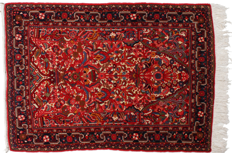 Tæppe-nr.: 39690037960 Størrelse: 150x107 cm Tykkelse: ca. 10 mm Knuder: 450 000 - 500 000 / m² Forarbejdelse: Knyttet i hånden Luv: Uld med silke Kæde: Bomuld Oprindelse: Persien / Iran Alder: gammel/semi-antik, ældre end 50 år Vægt: ca. 6 kg Også kendt som Tabris, Tabriz, Tebris, Tebriz, Täbris, Village Antal på lager: Unik - Kun 1 tilbage på lager