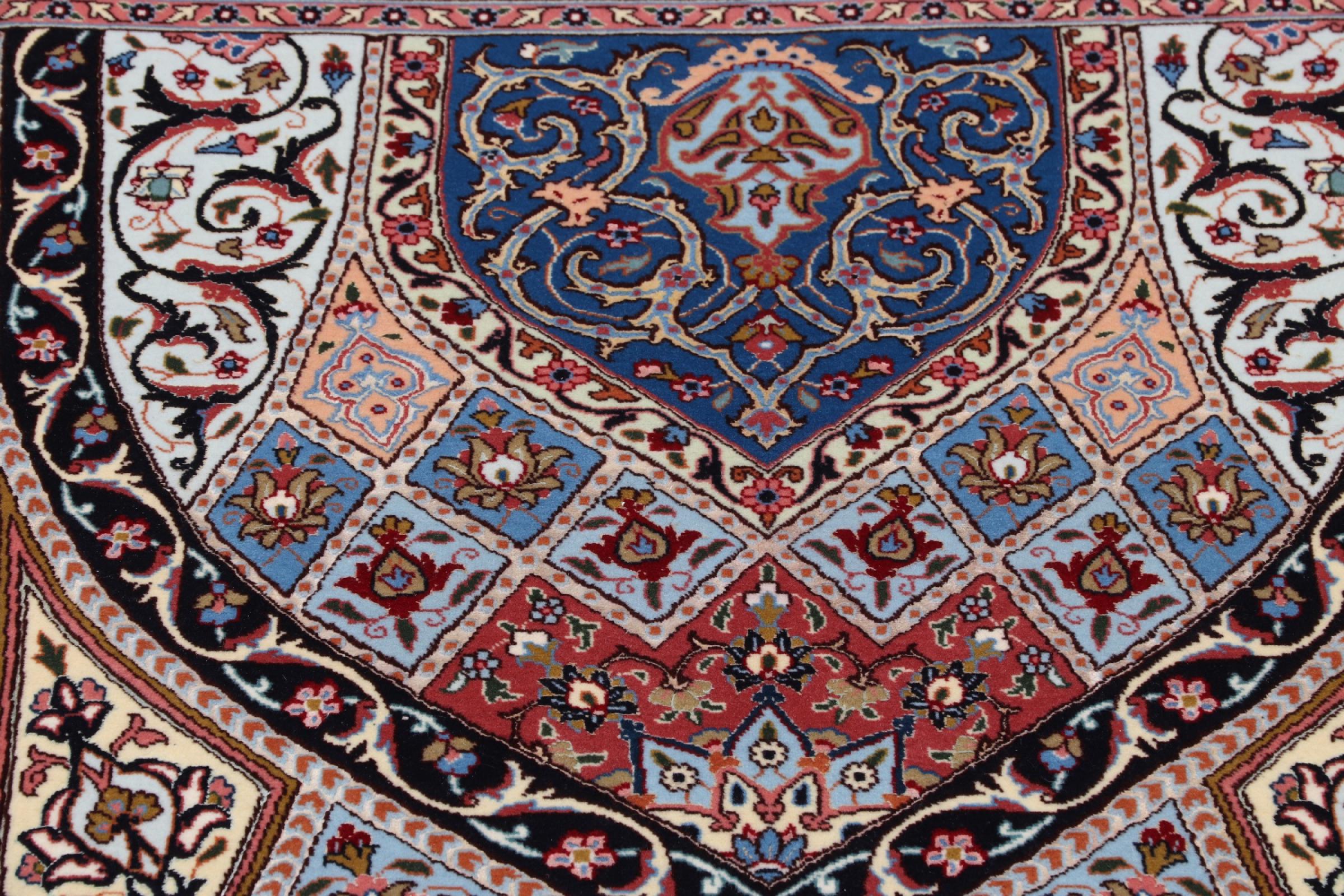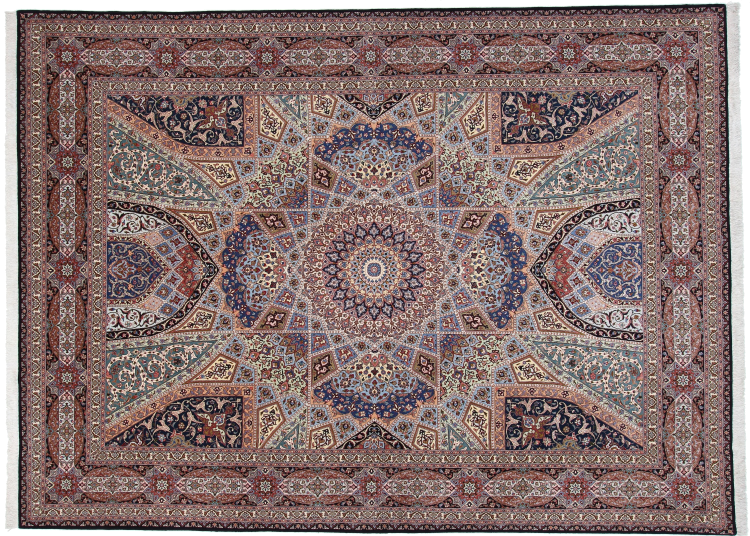 Dette Tabriz Gumbad minder med sine buede former om kupler af moskeer. Takket være brugen af uld med høj kvalitet og håndknytning er dette tæppe en virkelig værdifuld eksemplar af tæppe kultur fra Tabriz.