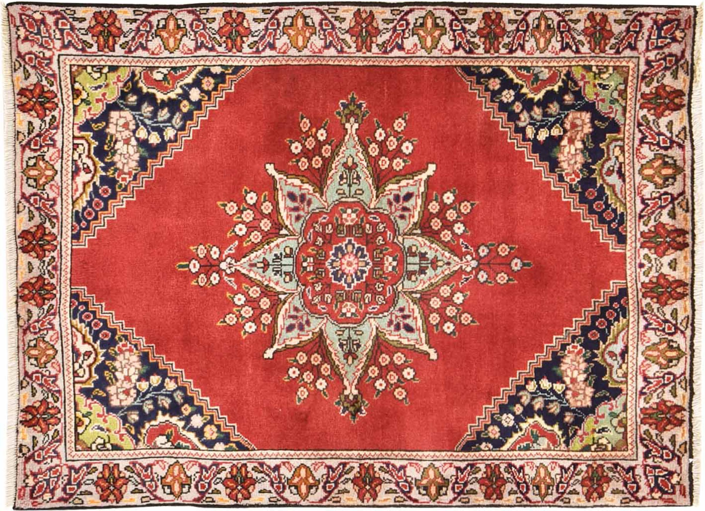 Tæppe-nr.: 300986006031913 Størrelse: 127x96 cm Tykkelse: ca. 10 mm Knuder: 128 000 - 160 000 / m² Forarbejdelse: Knyttet i hånden Luv: Håndspunden uld Kæde: Bomuld Oprindelse: Persien / Iran Alder: Ny Vægt: ca. 4 kg Også kendt som Tabris, Tabriz, Tebris, Tebriz, Täbris, Village Antal på lager: Unik - Kun 1 tilbage på lager