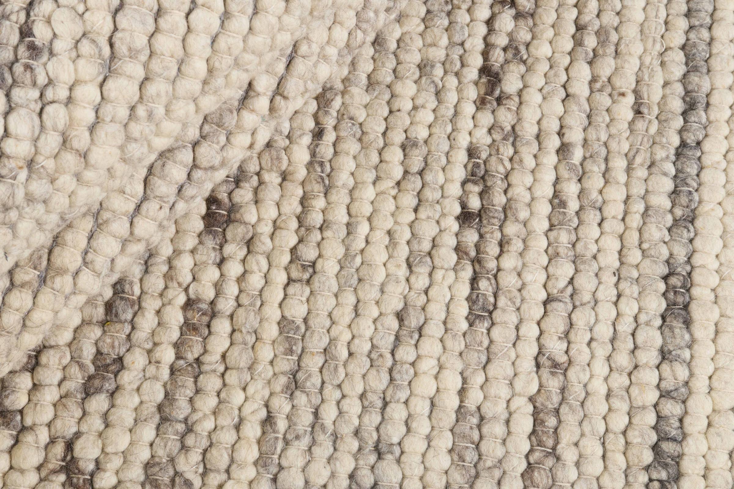 Dette Texura Hilly tæppe er håndvævet af naturligt fåreuld ved brug af traditionelt håndværk i Indien. Dets komfortproducerende design blev skabt i Skandinavien. Da den er vævet og ikke knyttet, har den ingen luv. Ikke desto mindre imponerer dette tæppe med en højde på 18 mm og ser ekstremt hjemligt ud, selv i ellers køligere designerinteriører, hvor det er en ideel harmoniserende tilføjelse.
