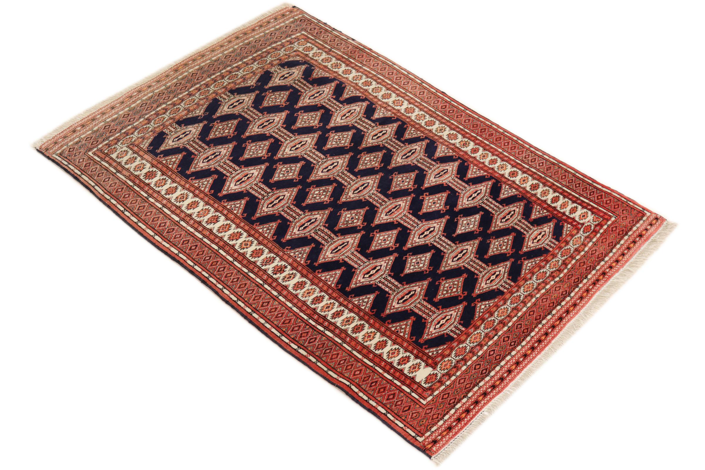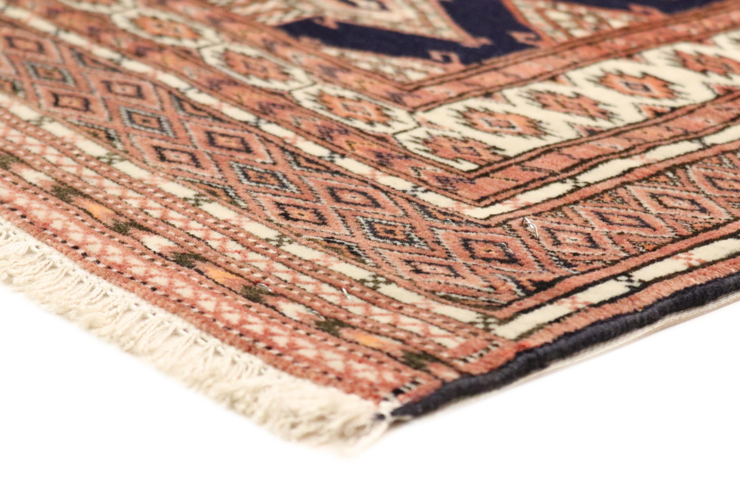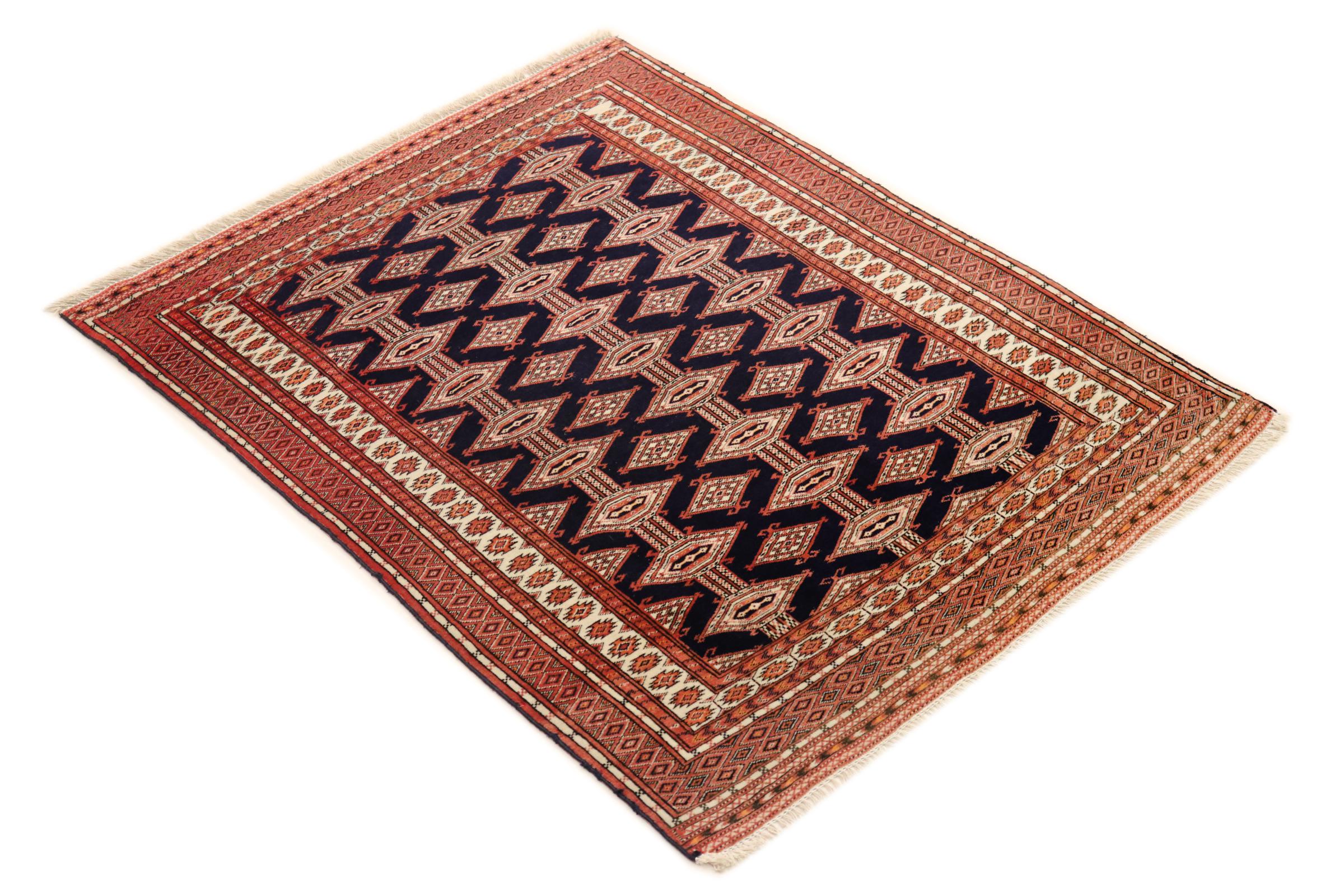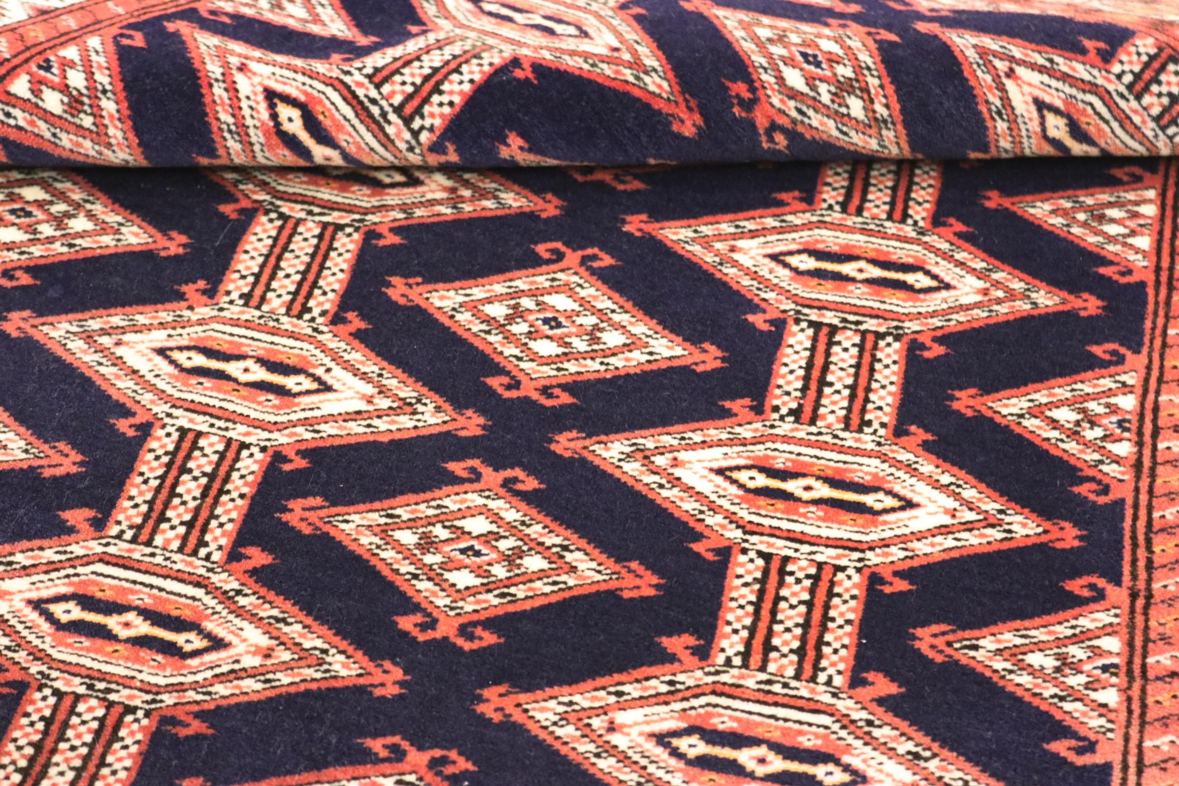 Denne Turkaman tæppe blev knyttet i den fineste håndarbejde og overbeviser med sin høje standard for produktionen og den anvendte uld. Dens farver afspejler den turkmenske kultur og giver din omgivelse et strejf af Orienten.
