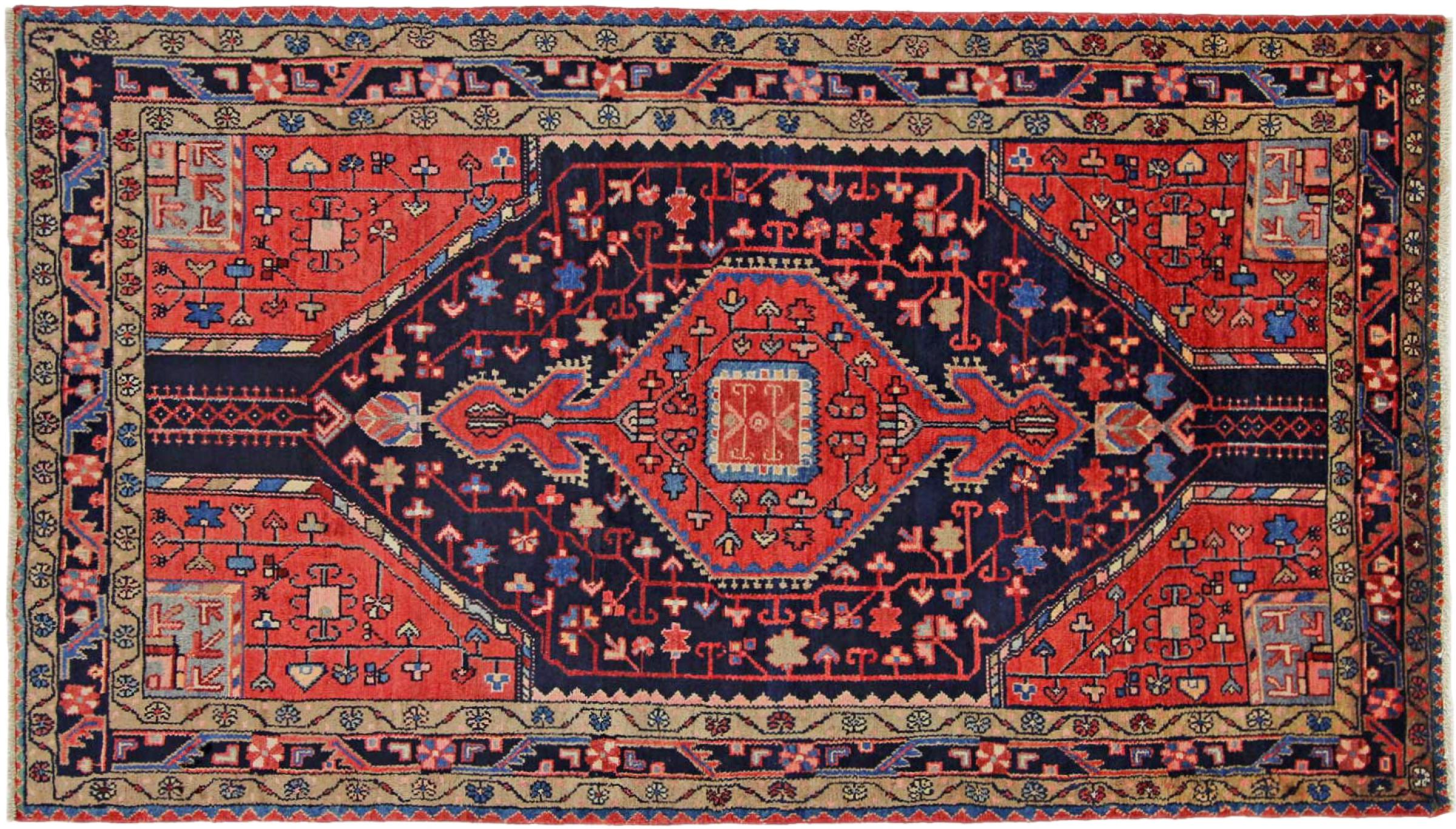 Dette tæppe hører til landsby- og nomadetæpper fra Iran, tidligere Persien. Denne type tæppe er håndknyttet i små byer og landsbyer i den gamle tradition. Nomader fremstiller også persiske tæpper under den åbne himmel. Tæpperne er knudt helt fra hovedet uden en skabelon. De er kendetegnet ved klassiske ornamenter, der er opstillet i lineære og geometriske mønstre. Takket være deres kulturelle og traditionelle oprindelse har disse tæpper en unik karakter, der udgør det gamle Persien.