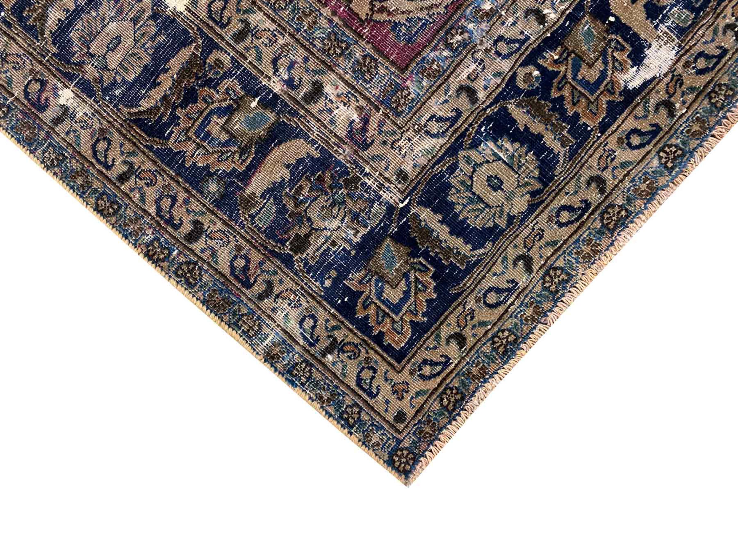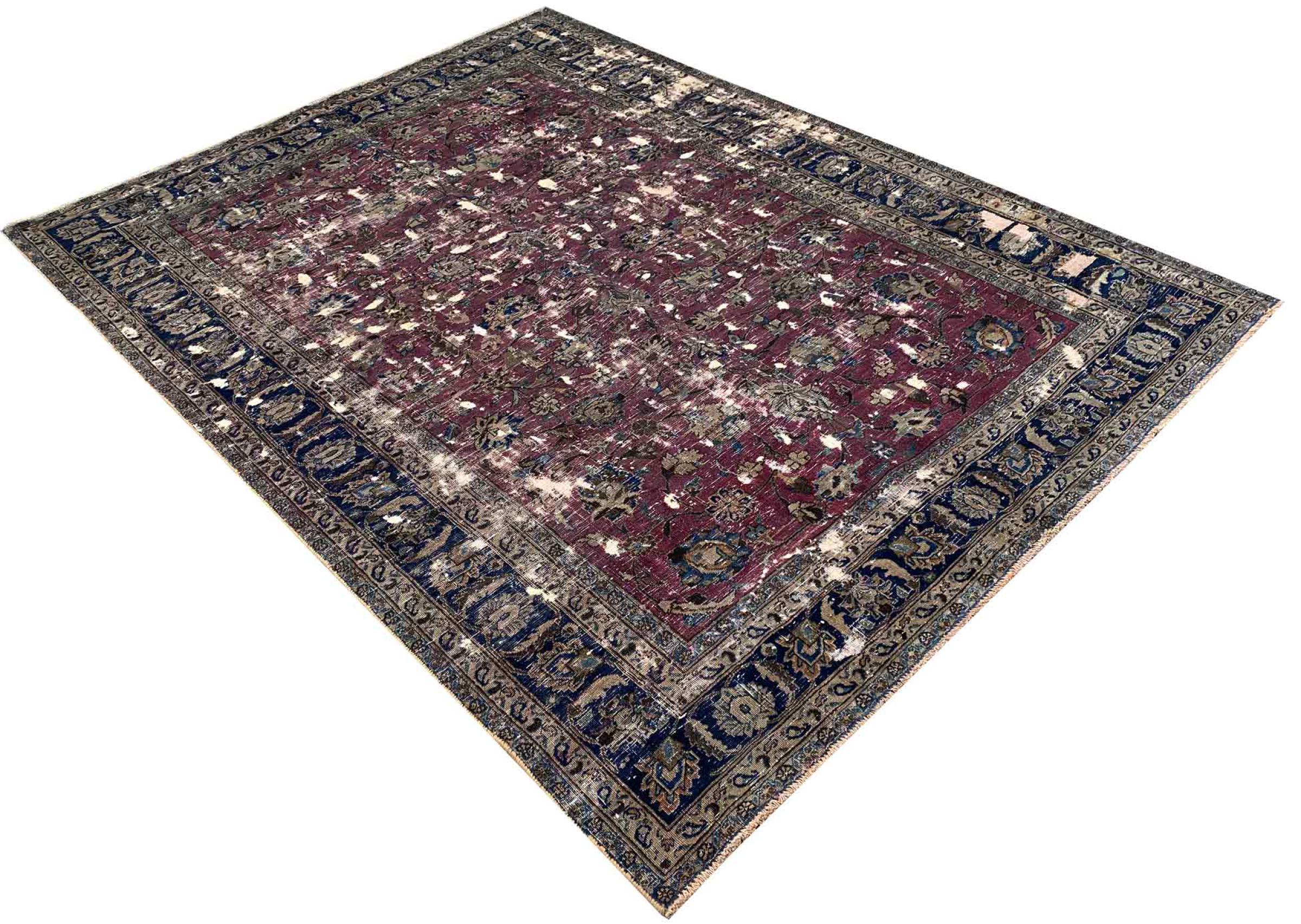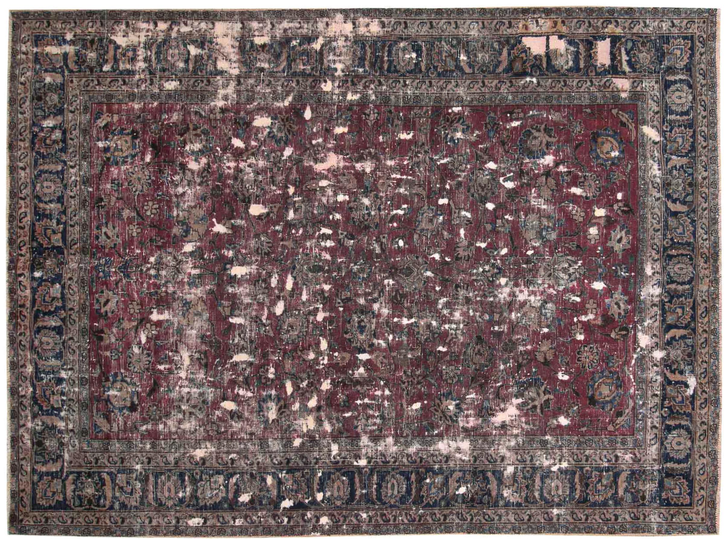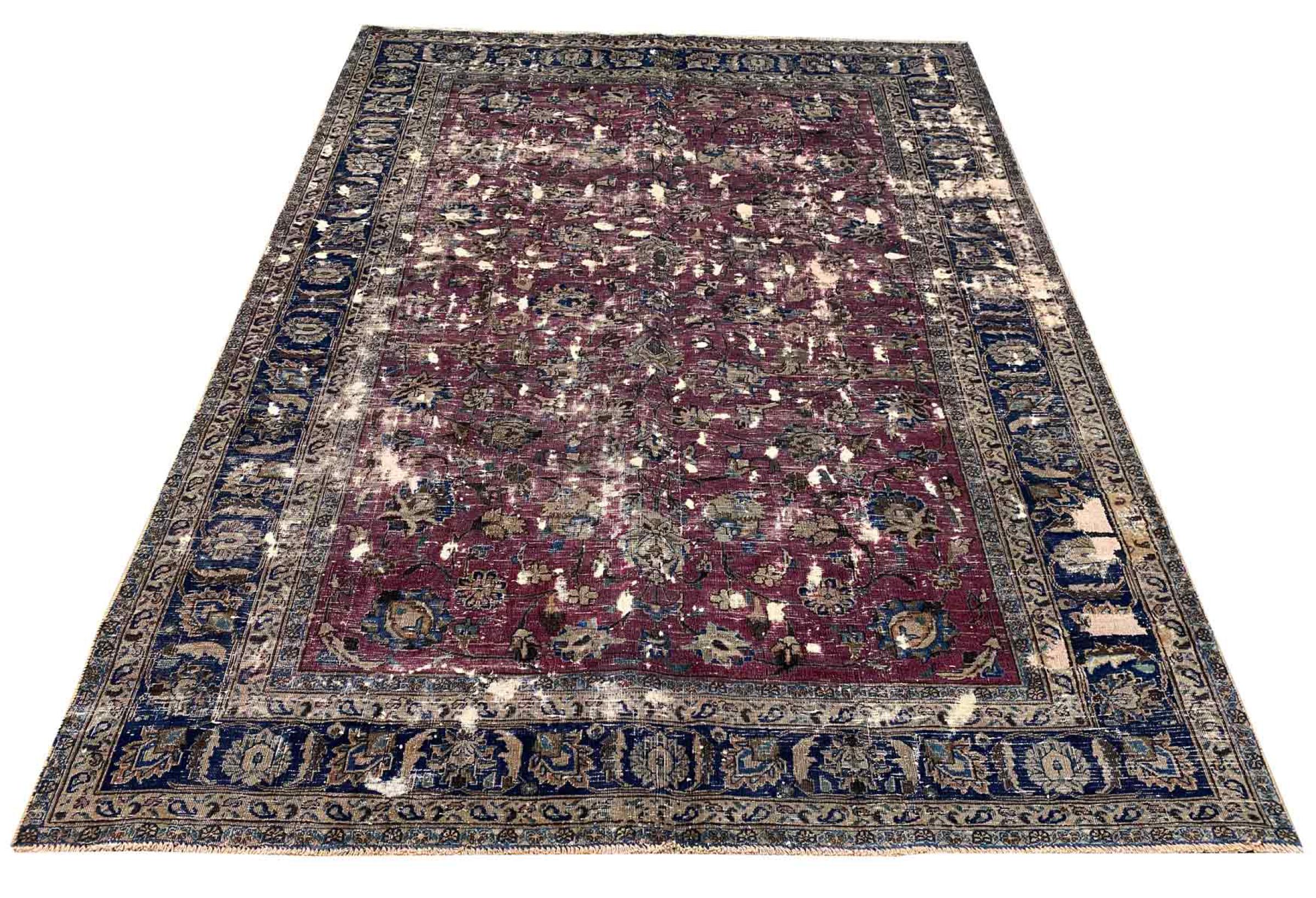 Dette er et håndknyttet persisk tæppe, som er mindst 20 år gammelt. Sådan et tæppe kan holde i generationer med den rette pleje. Tæppet er blevet fuldstændig genfarvet uden helt at overfarve de oprindeligt knyttede ornamenter. Det giver det persiske tæppe af høj kvalitet en unik moderne vintage-karakter.