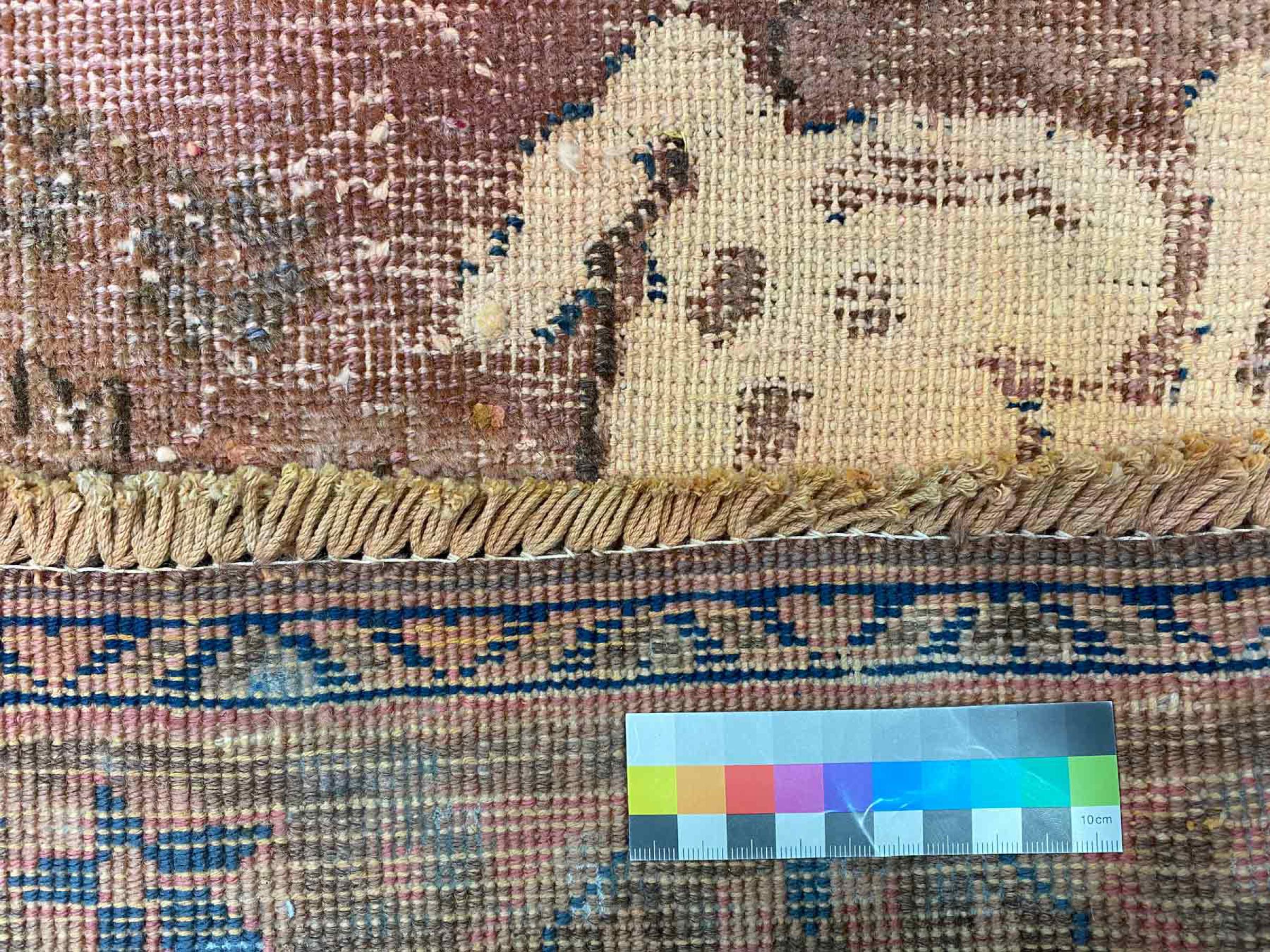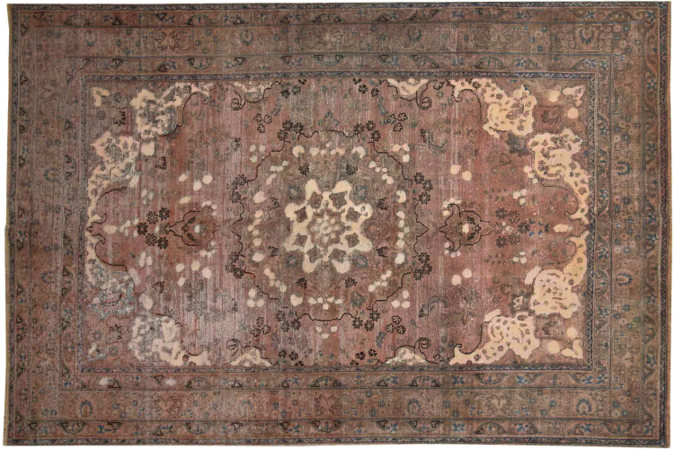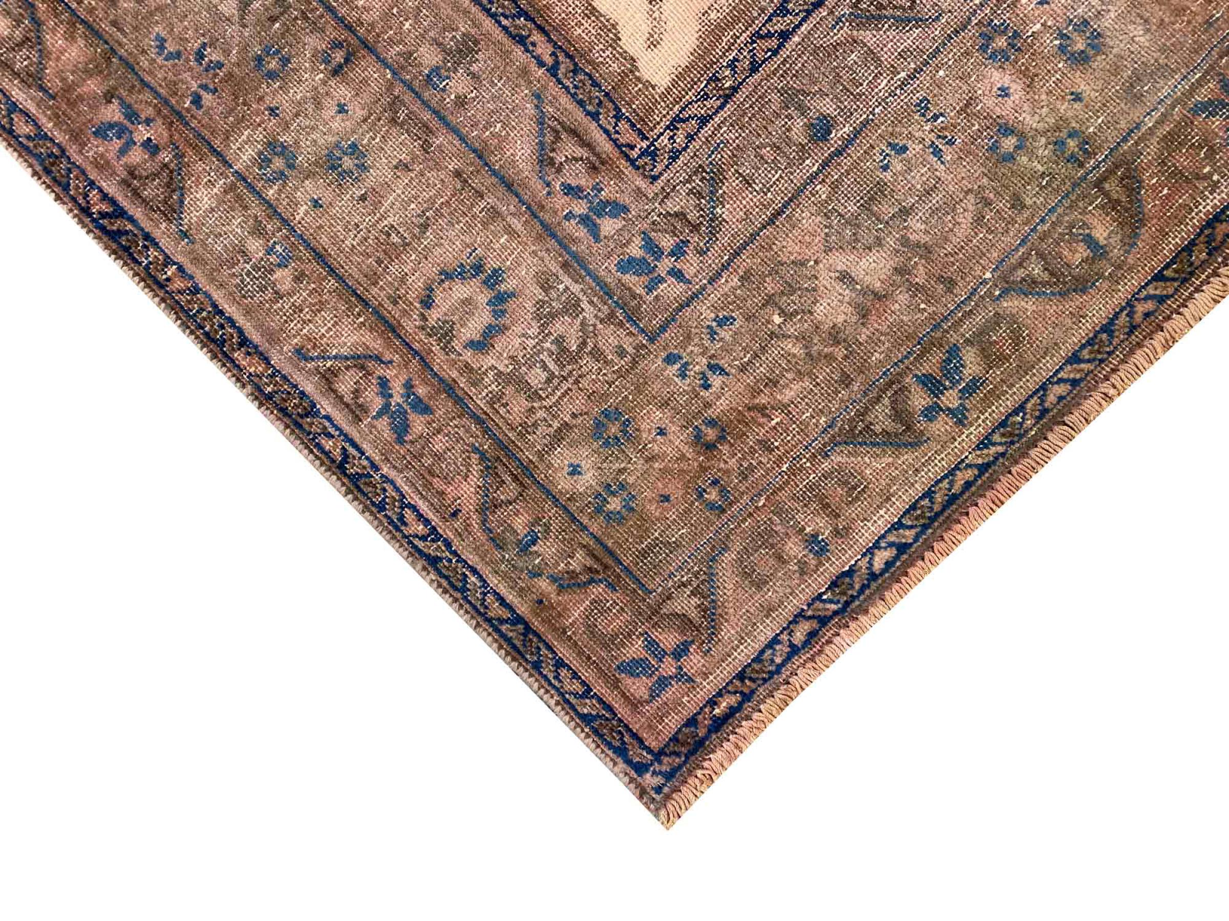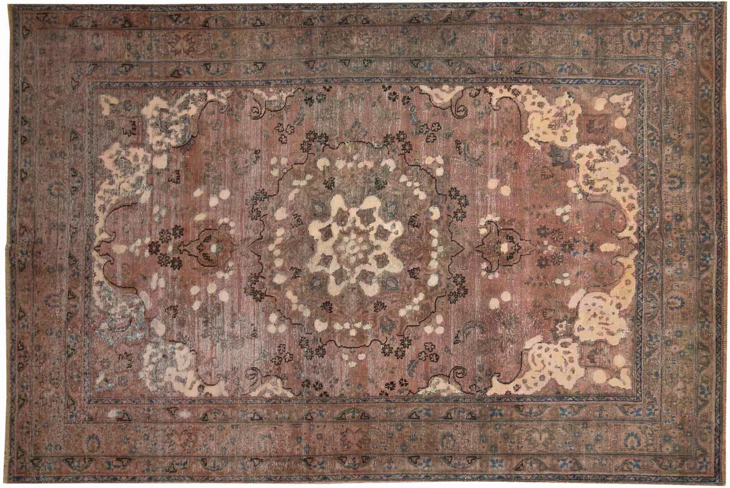 Dette er et håndknyttet persisk tæppe, som er mindst 20 år gammelt. Sådan et tæppe kan holde i generationer med den rette pleje. Tæppet er blevet fuldstændig genfarvet uden helt at overfarve de oprindeligt knyttede ornamenter. Det giver det persiske tæppe af høj kvalitet en unik moderne vintage-karakter.