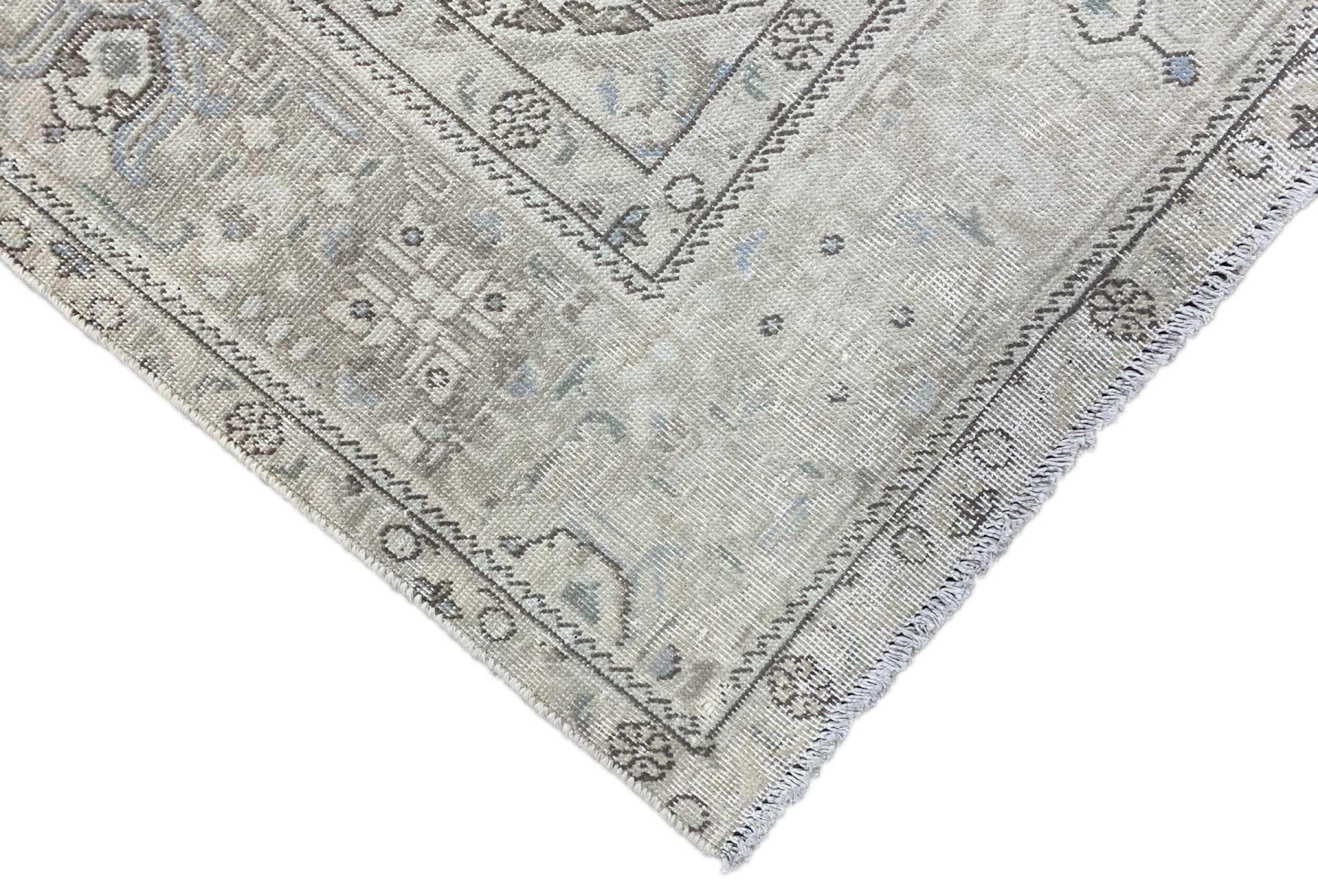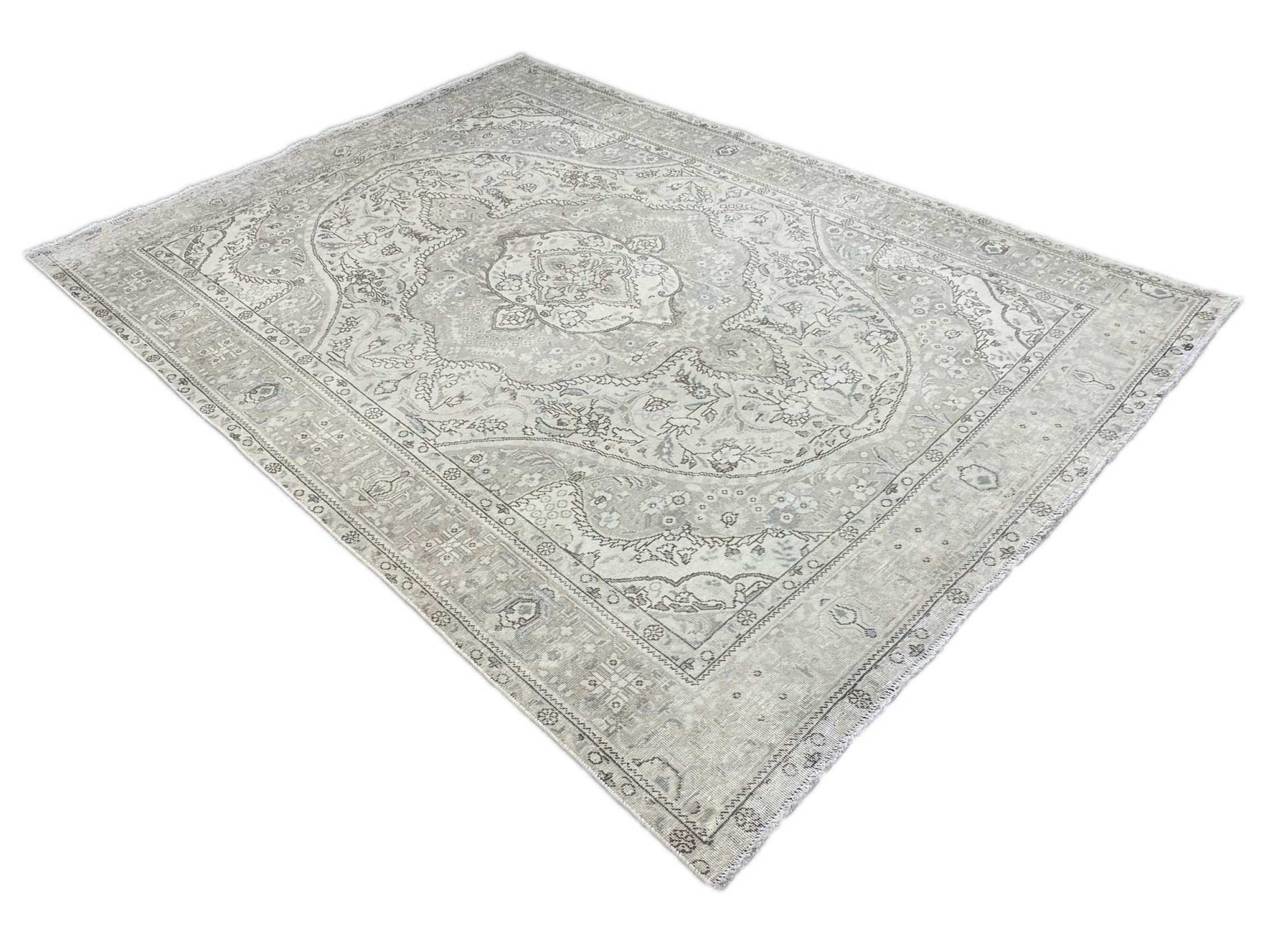 Dette er et håndknyttet persisk tæppe, som er mindst 20 år gammelt. Sådan et tæppe kan holde i generationer med den rette pleje. Tæppet er blevet fuldstændig genfarvet uden helt at overfarve de oprindeligt knyttede ornamenter. Det giver det persiske tæppe af høj kvalitet en unik moderne vintage-karakter.
