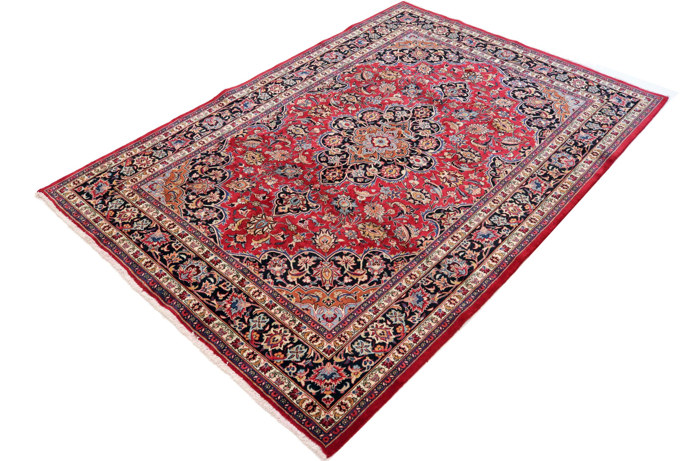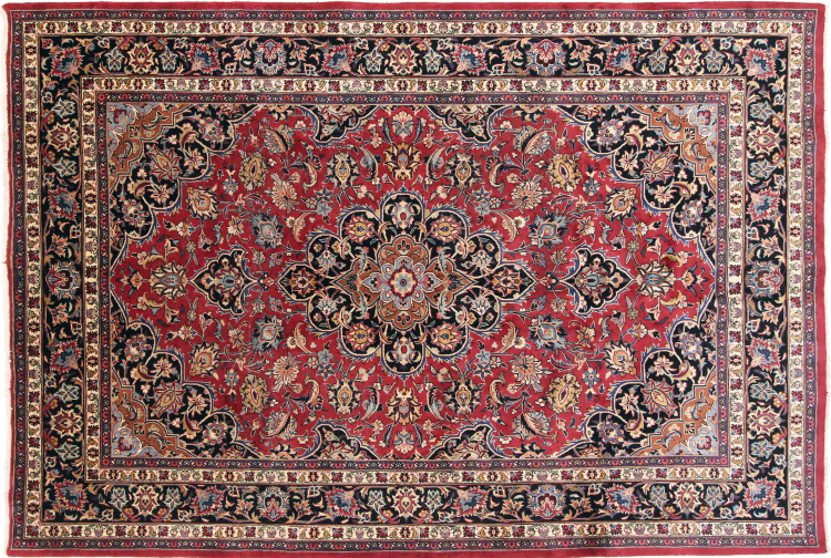 Tæppe-nr.: 128270008145707 Størrelse: 298x202 cm Tykkelse: ca. 5 mm Knuder: 200 000 - 250 000 / m² Forarbejdelse: Knyttet i hånden Luv: Håndspunden uld Kæde: Uld Tilstand / Bevaring På visse steder kan slitage konstateres Oprindelse: Persien / Iran Alder: ca. 20-30 år Vægt: ca. 21 kg Antal på lager: Unik - Kun 1 tilbage på lager