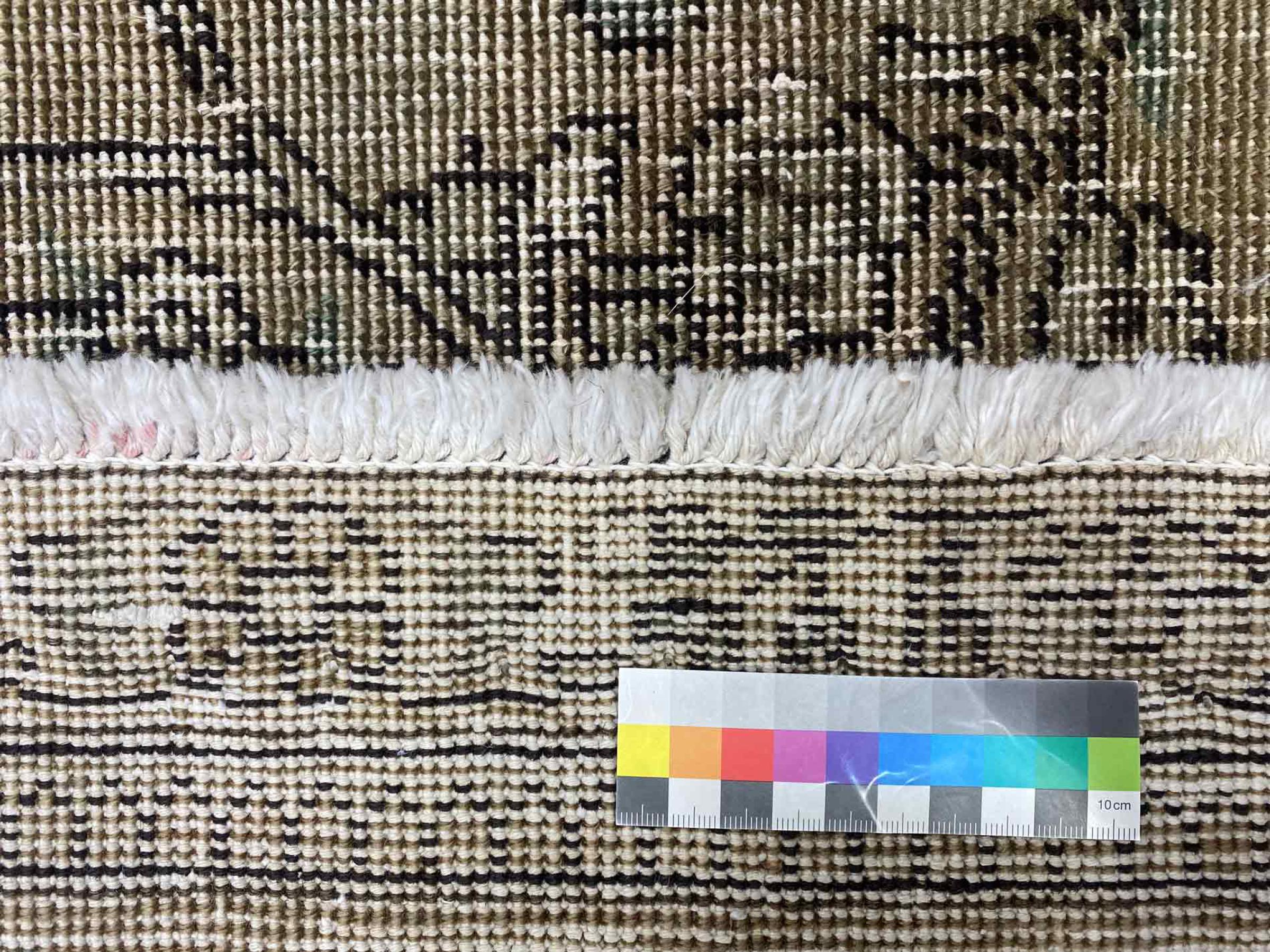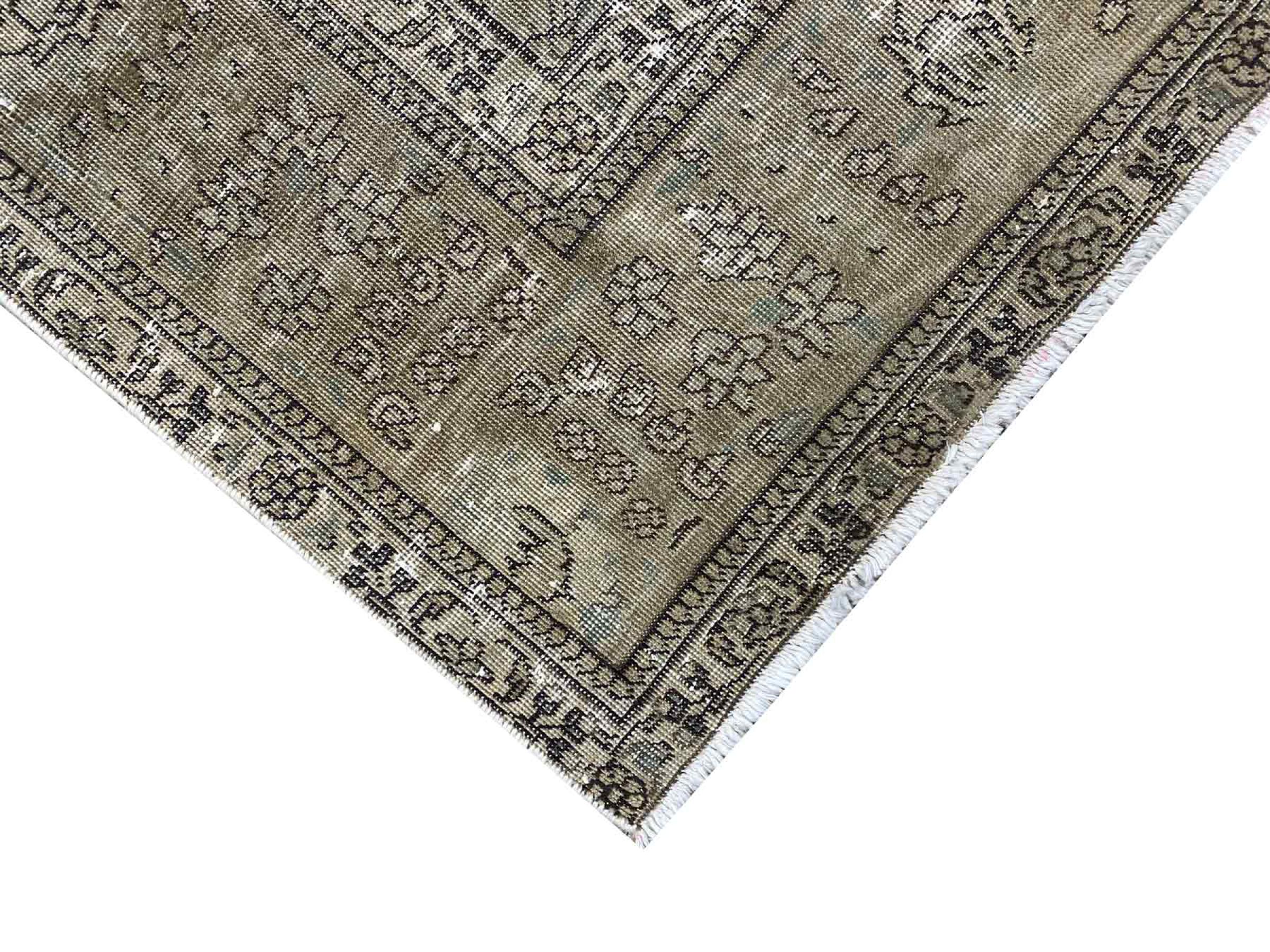 Dette er et håndknyttet persisk tæppe, som er mindst 20 år gammelt. Sådan et tæppe kan holde i generationer med den rette pleje. Tæppet er blevet fuldstændig genfarvet uden helt at overfarve de oprindeligt knyttede ornamenter. Det giver det persiske tæppe af høj kvalitet en unik moderne vintage-karakter.