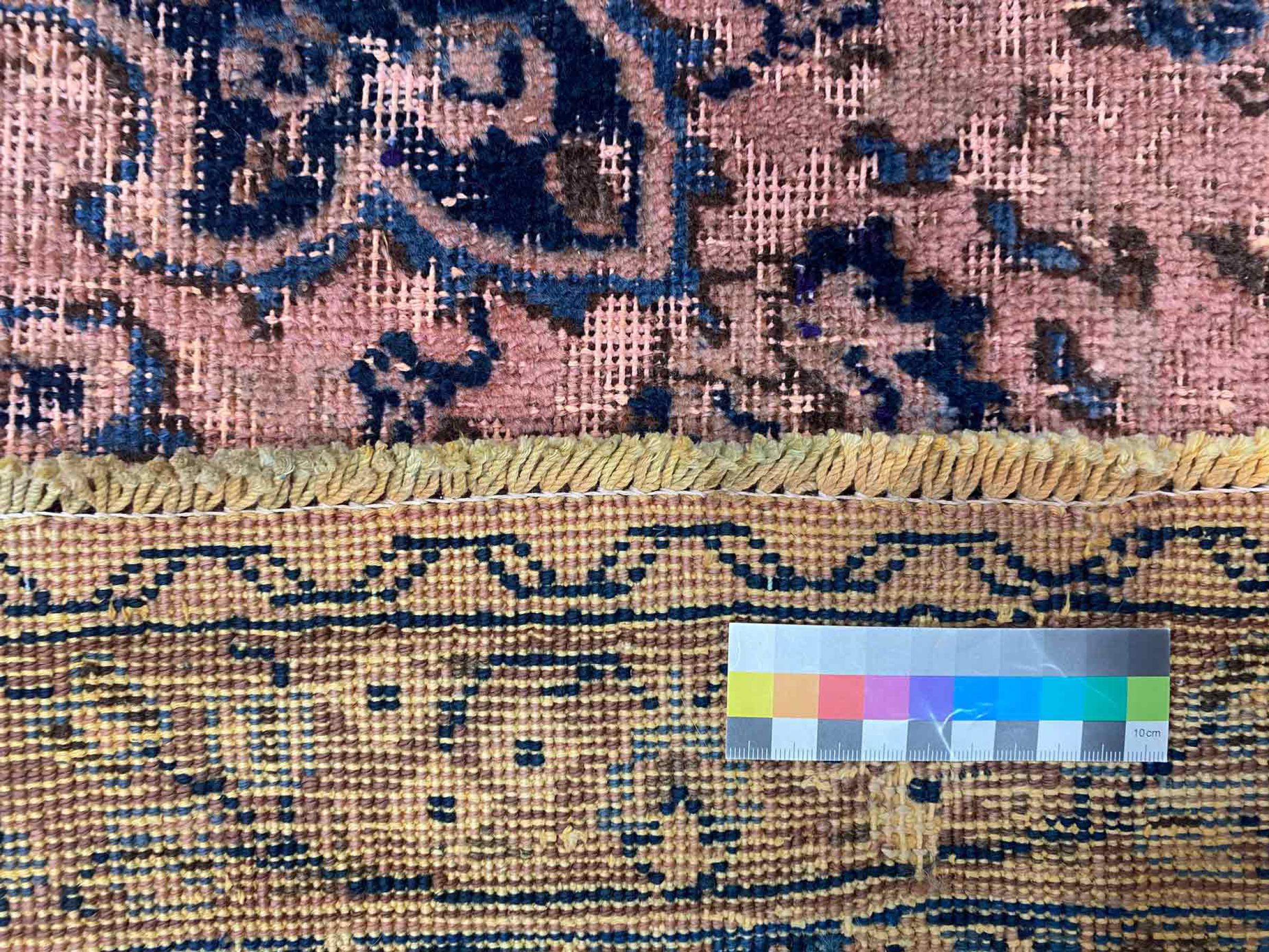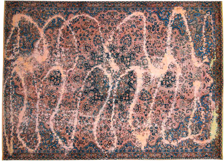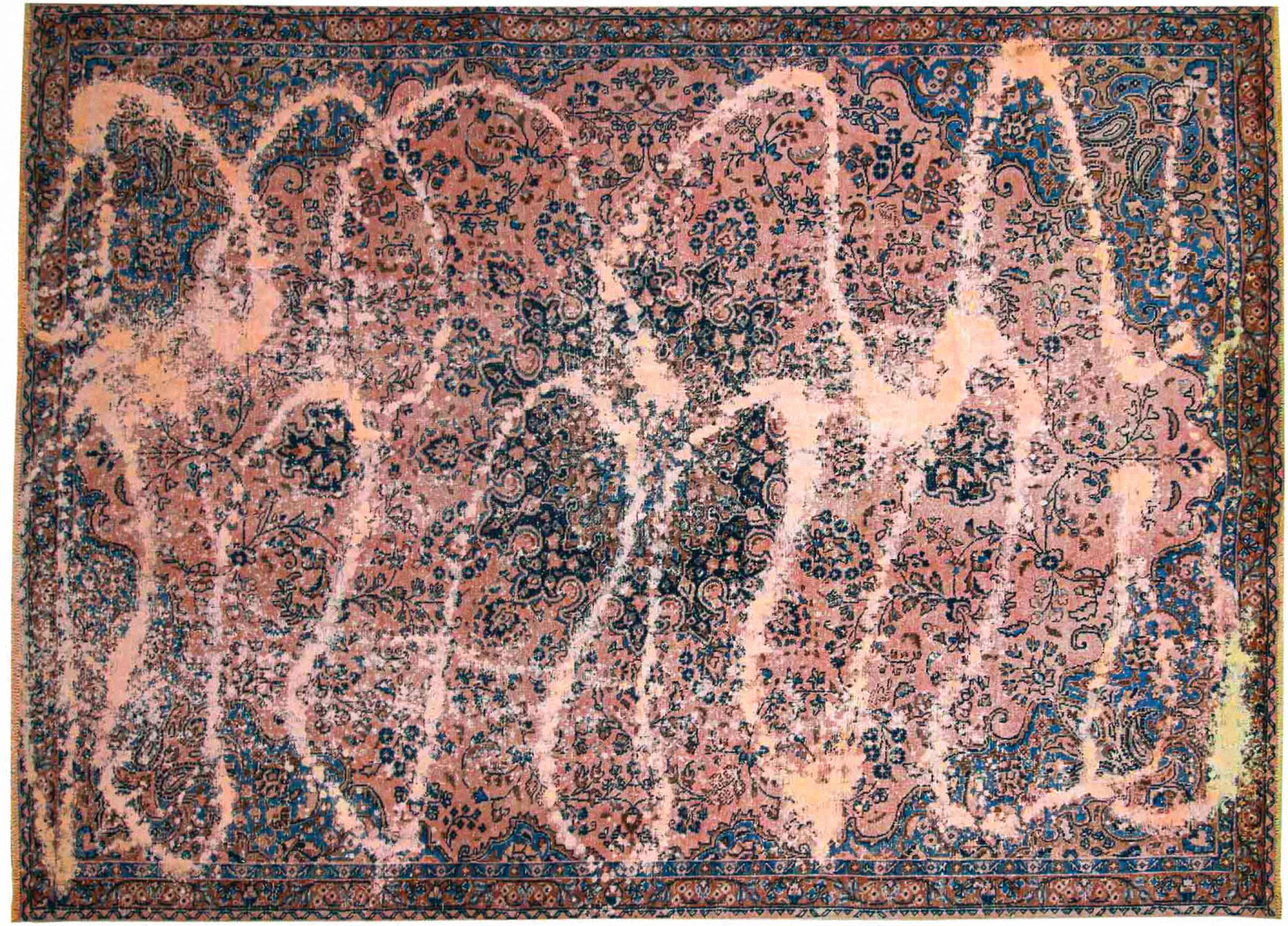 Dette er et håndknyttet persisk tæppe, som er mindst 20 år gammelt. Sådan et tæppe kan holde i generationer med den rette pleje. Tæppet er blevet fuldstændig genfarvet uden helt at overfarve de oprindeligt knyttede ornamenter. Det giver det persiske tæppe af høj kvalitet en unik moderne vintage-karakter.