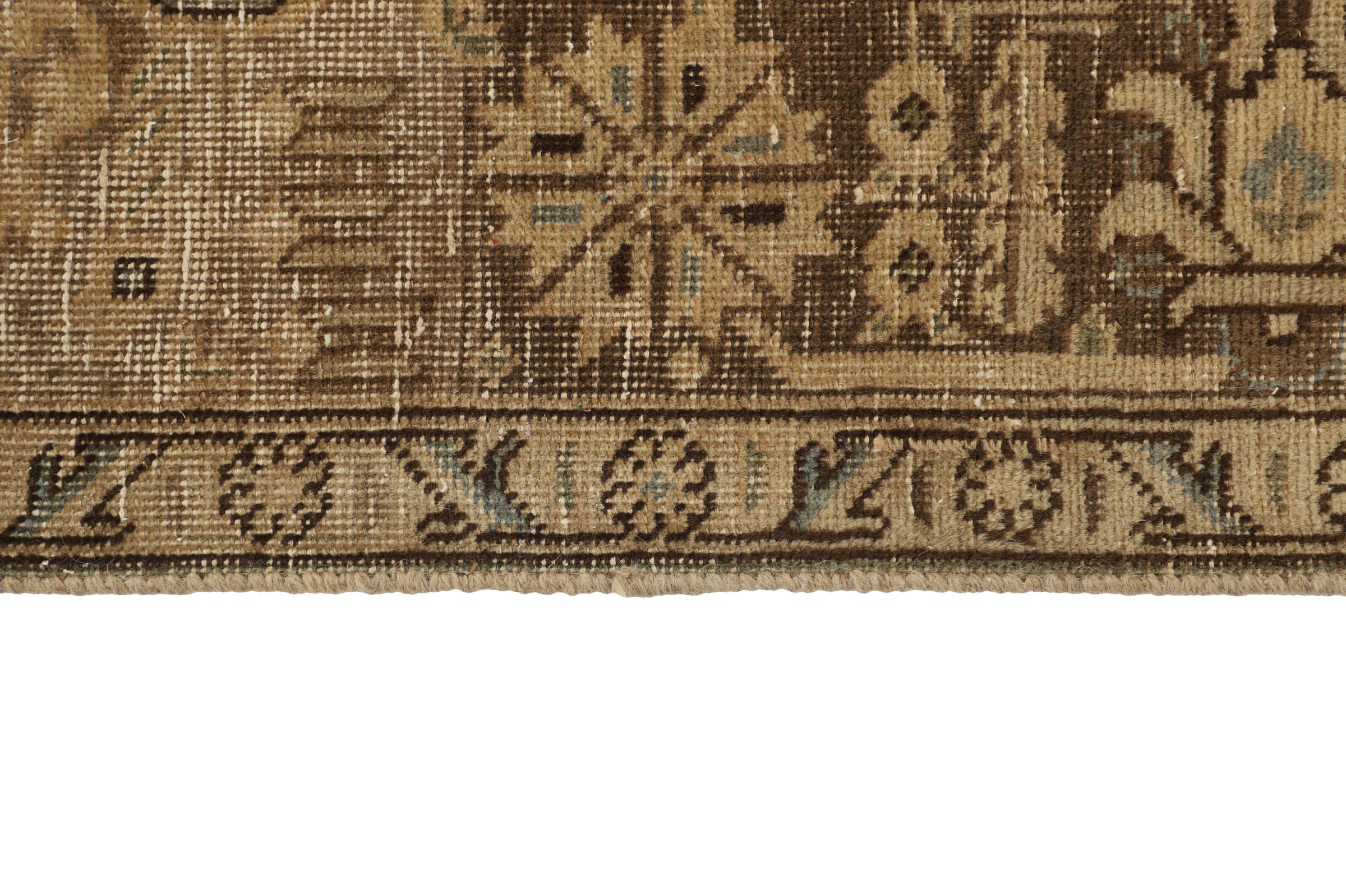 Dette er et håndknyttet persisk tæppe, som er mindst 20 år gammelt. Sådan et tæppe kan holde i generationer med den rette pleje. Tæppet er blevet fuldstændig genfarvet uden helt at overfarve de oprindeligt knyttede ornamenter. Det giver det persiske tæppe af høj kvalitet en unik moderne vintage-karakter.