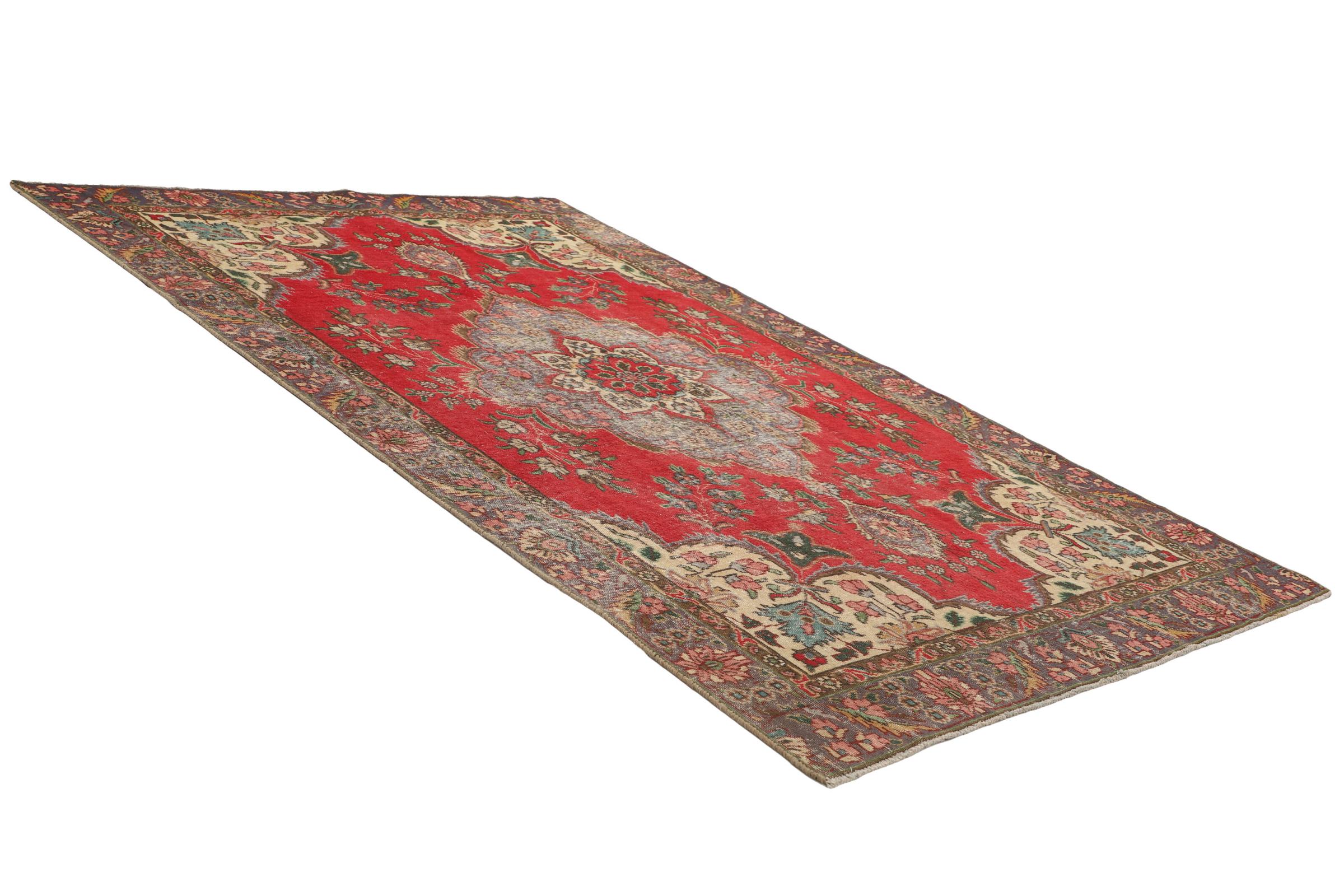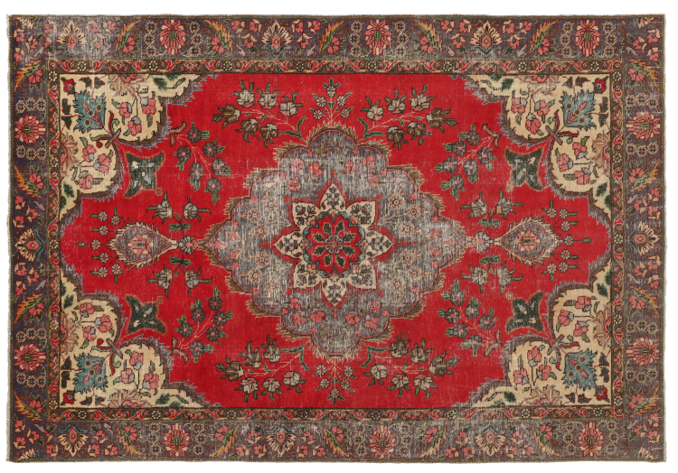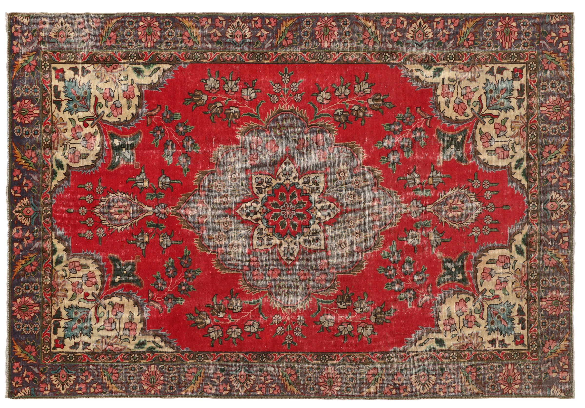 Dette er et håndknyttet persisk tæppe, som er mindst 20 år gammelt. Sådan et tæppe kan holde i generationer med den rette pleje. Tæppet er blevet fuldstændig genfarvet uden helt at overfarve de oprindeligt knyttede ornamenter. Det giver det persiske tæppe af høj kvalitet en unik moderne vintage-karakter.