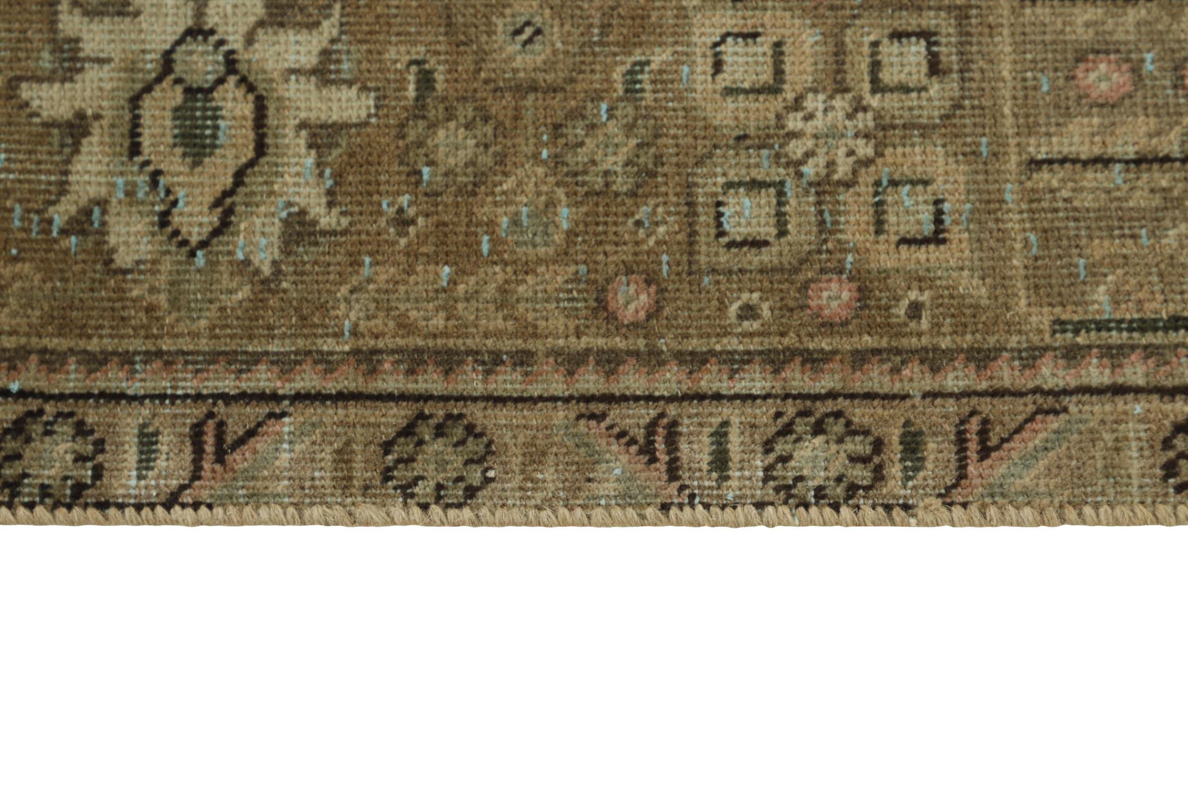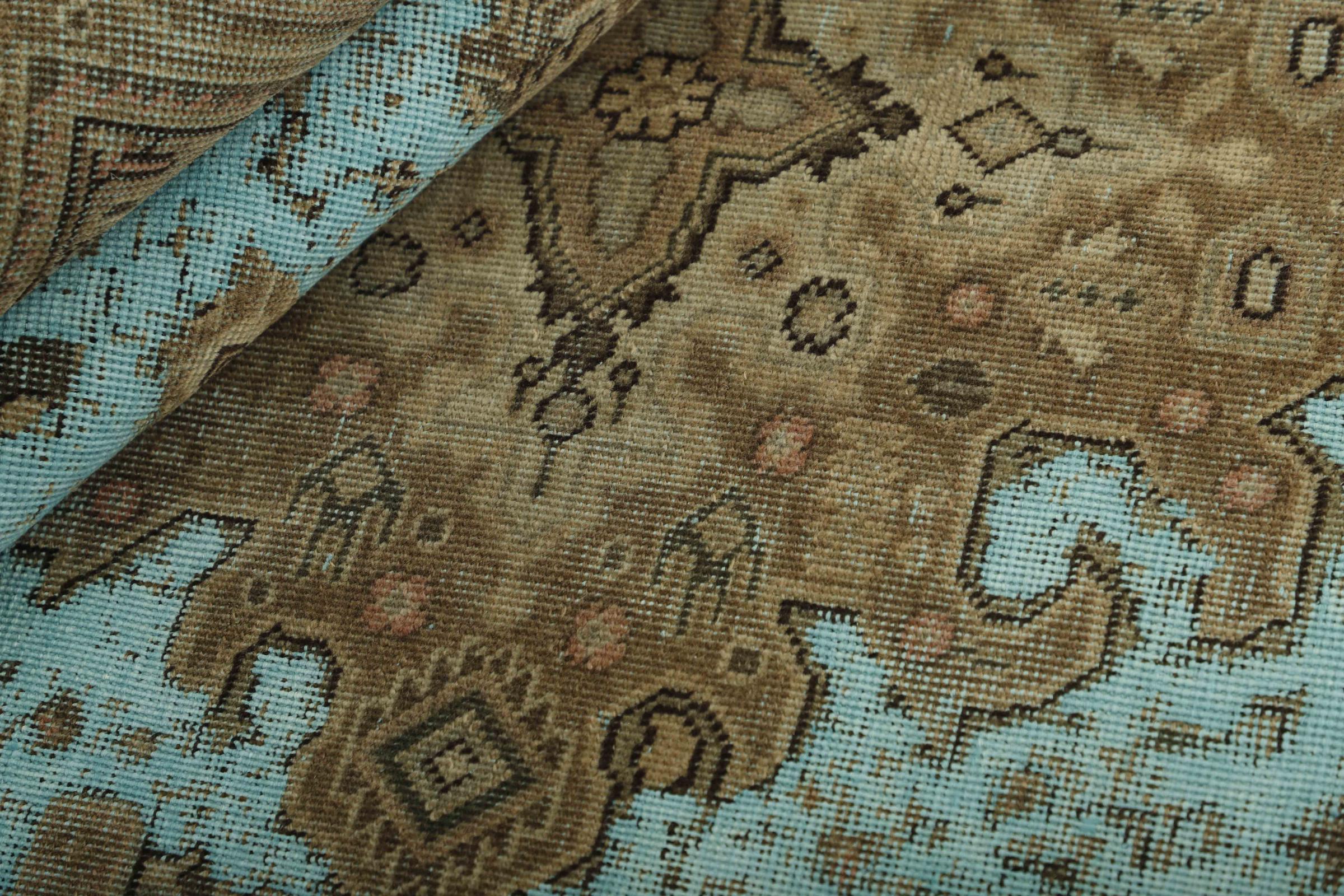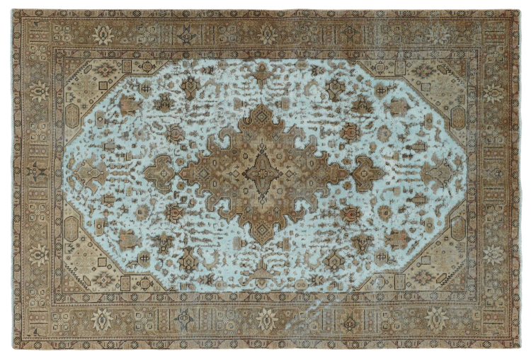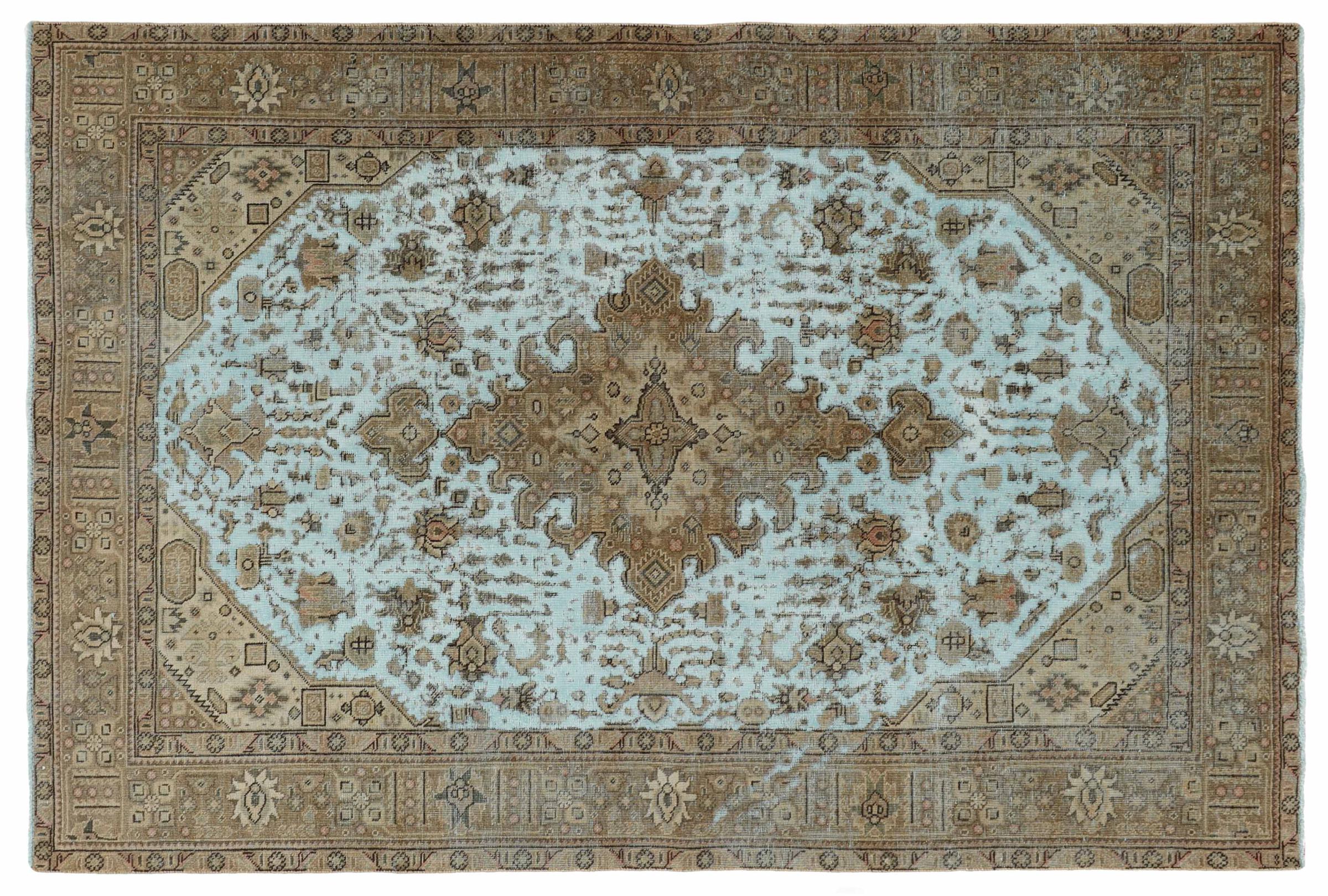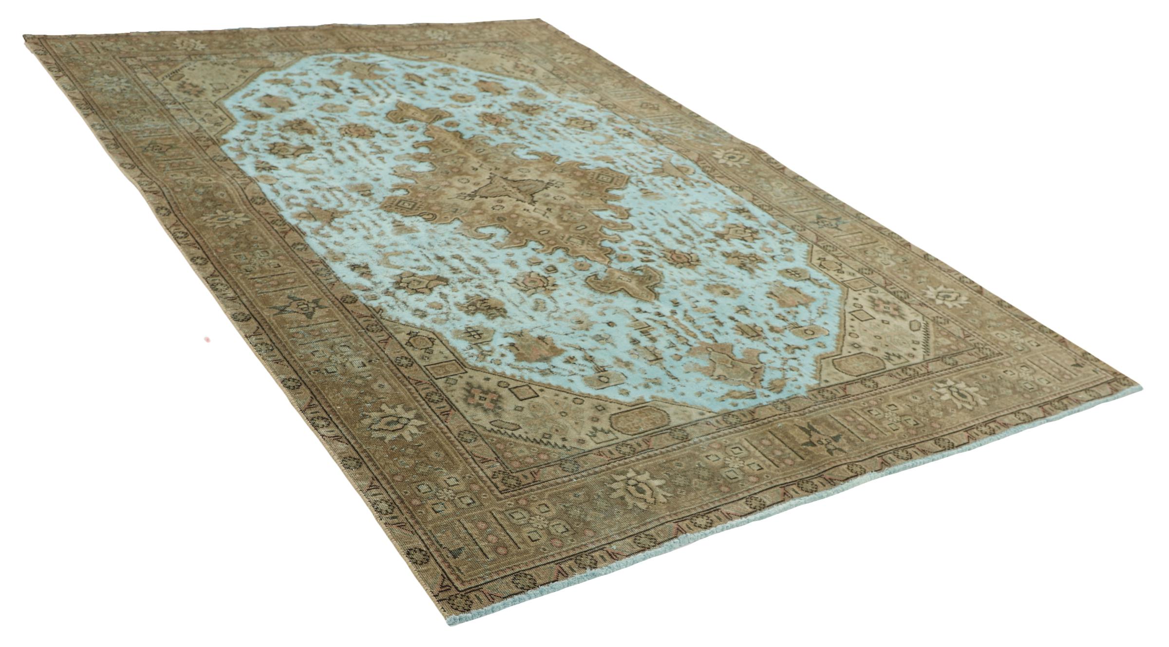 Dette er et håndknyttet persisk tæppe, som er mindst 20 år gammelt. Sådan et tæppe kan holde i generationer med den rette pleje. Tæppet er blevet fuldstændig genfarvet uden helt at overfarve de oprindeligt knyttede ornamenter. Det giver det persiske tæppe af høj kvalitet en unik moderne vintage-karakter.