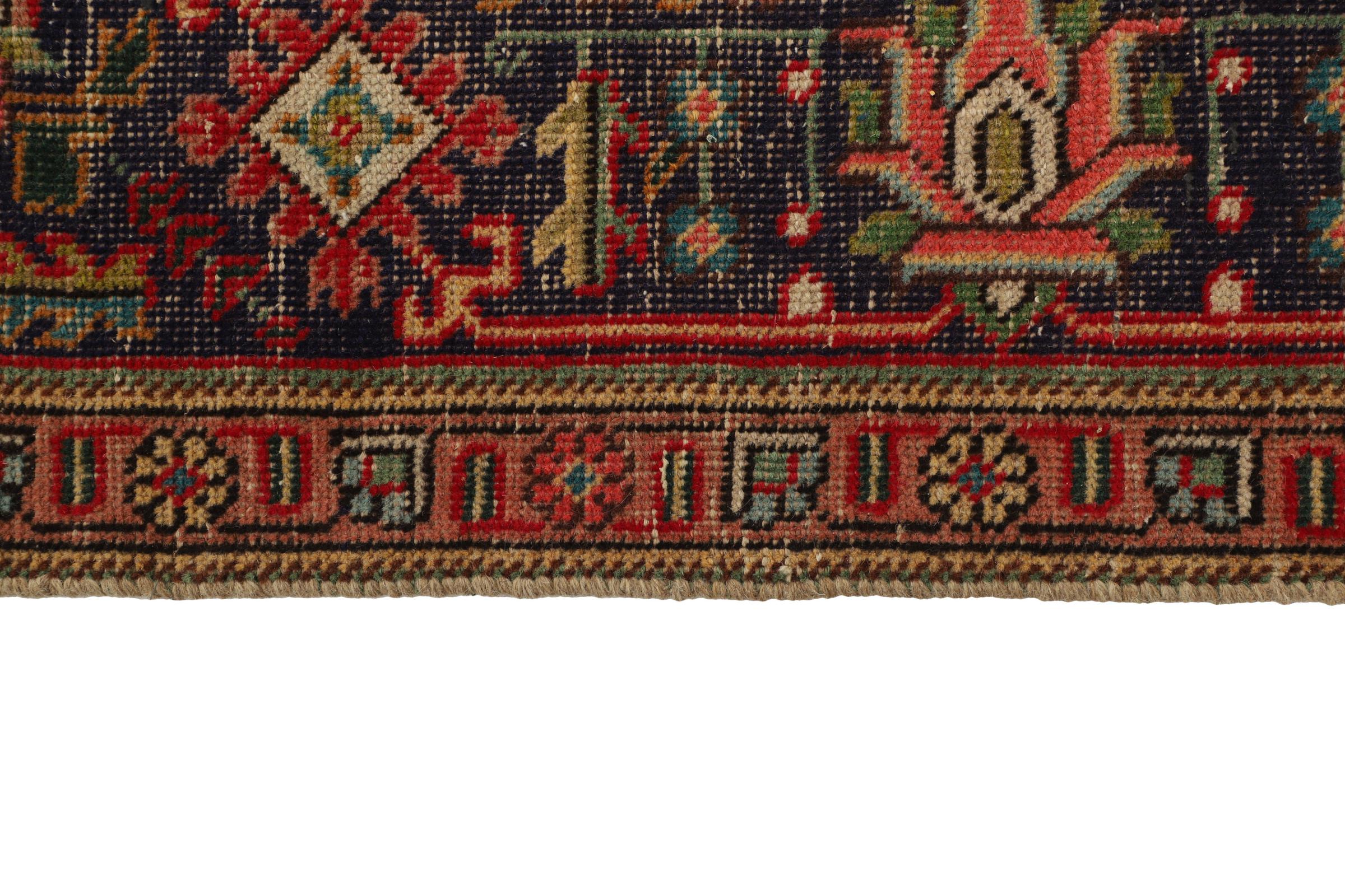 Dette er et håndknyttet persisk tæppe, som er mindst 20 år gammelt. Sådan et tæppe kan holde i generationer med den rette pleje. Tæppet er blevet fuldstændig genfarvet uden helt at overfarve de oprindeligt knyttede ornamenter. Det giver det persiske tæppe af høj kvalitet en unik moderne vintage-karakter.