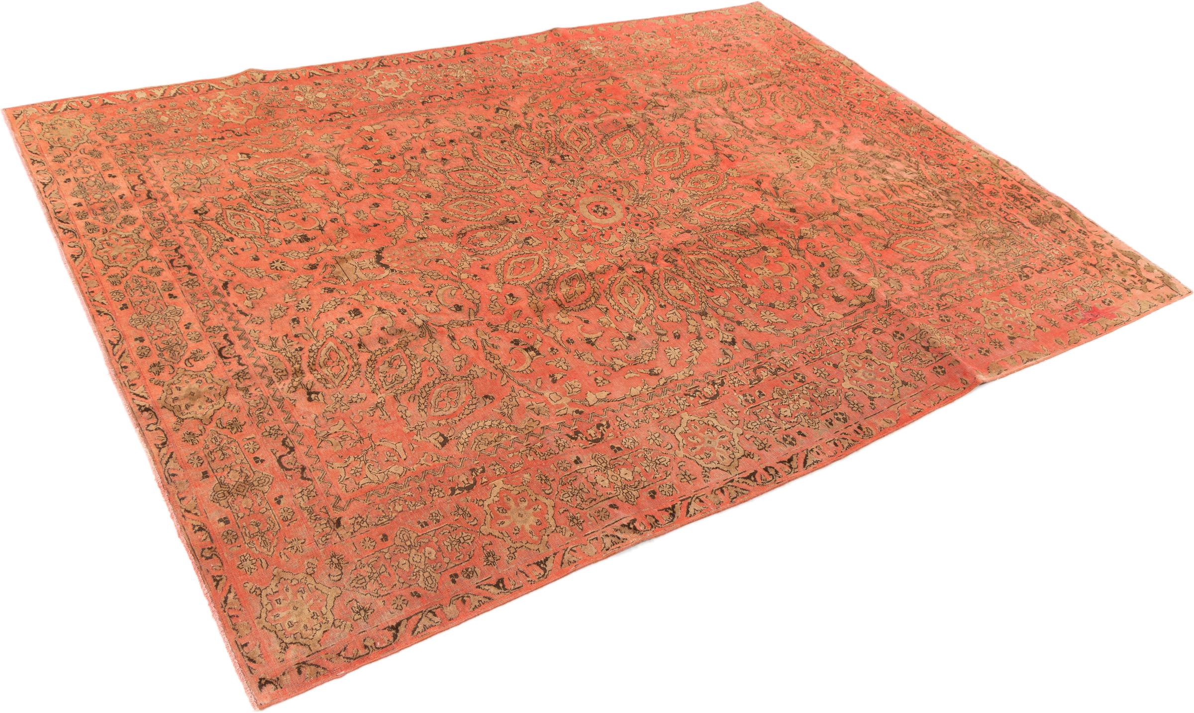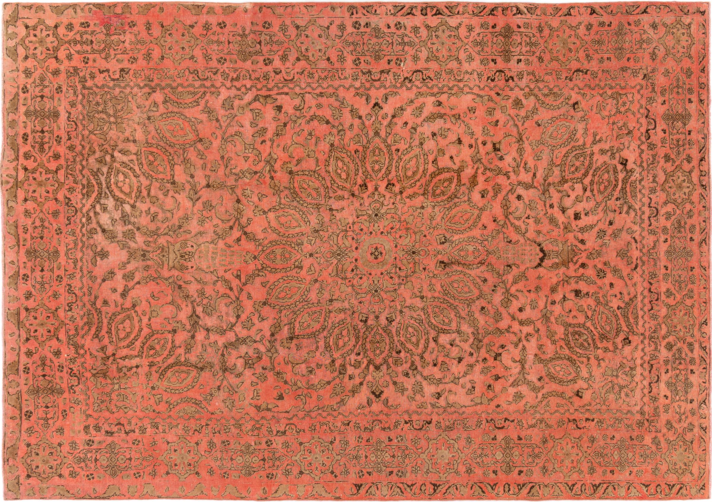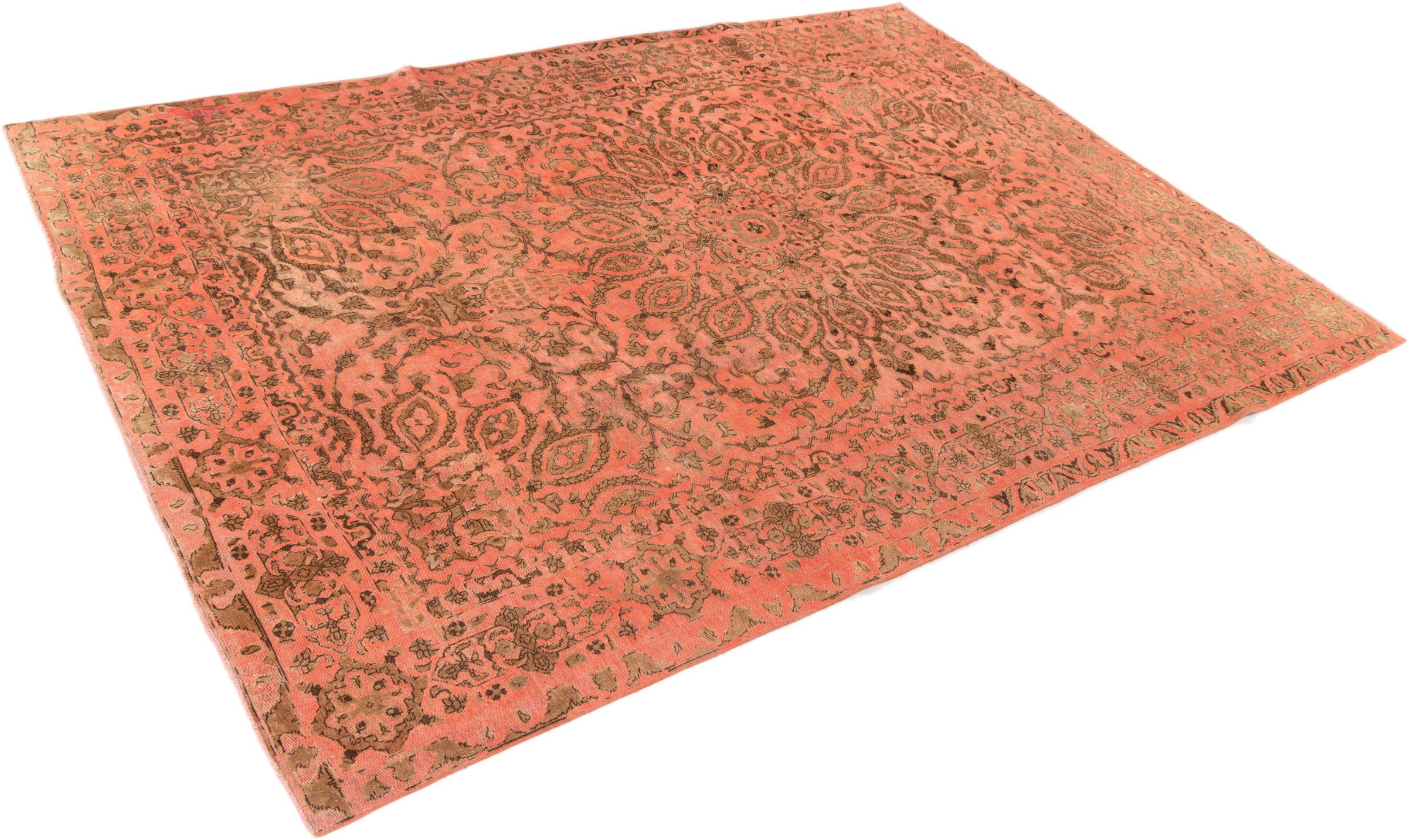 Dette er et håndknyttet persisk tæppe, som er mindst 20 år gammelt. Sådan et tæppe kan holde i generationer med den rette pleje. Tæppet er blevet fuldstændig genfarvet uden helt at overfarve de oprindeligt knyttede ornamenter. Det giver det persiske tæppe af høj kvalitet en unik moderne vintage-karakter.