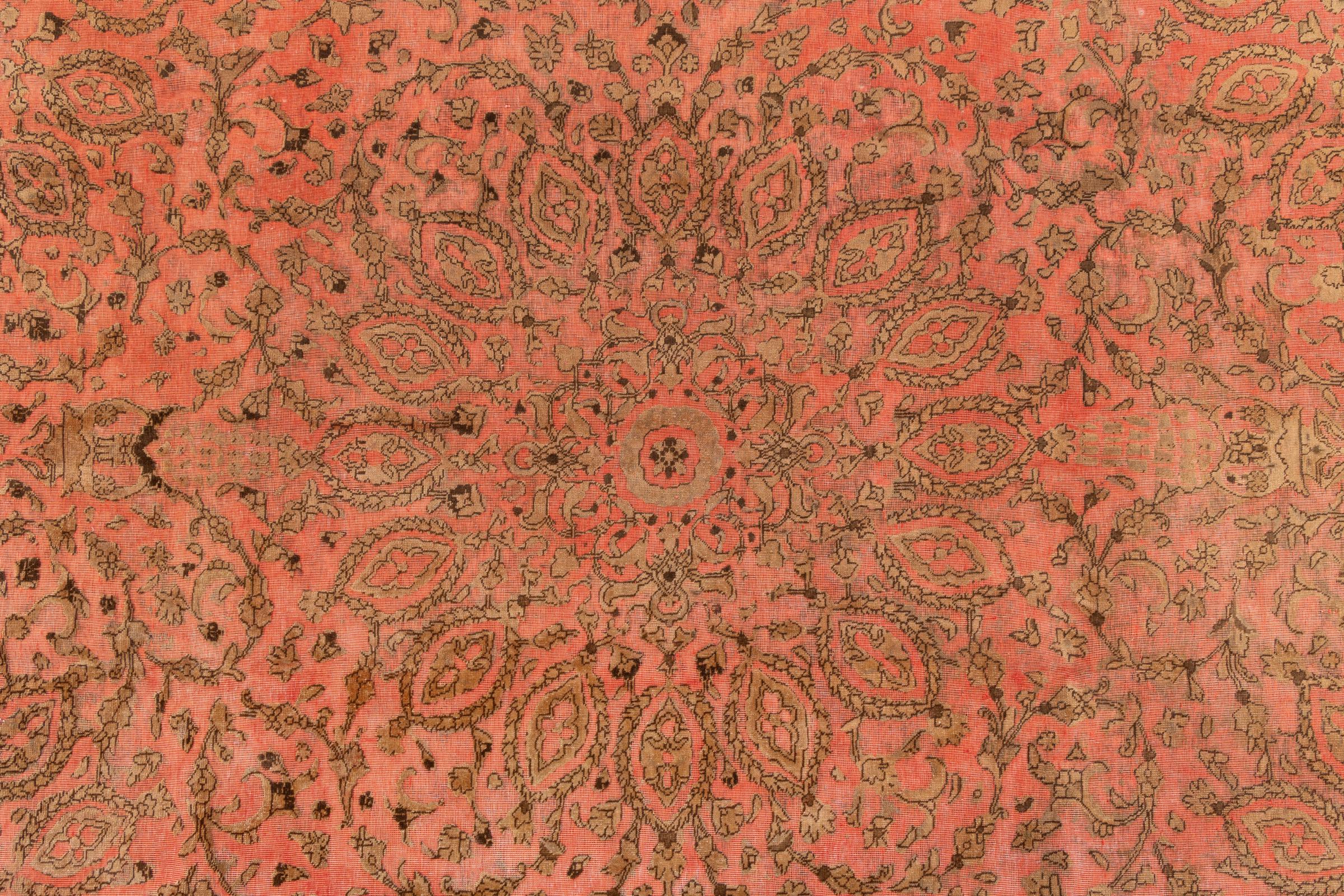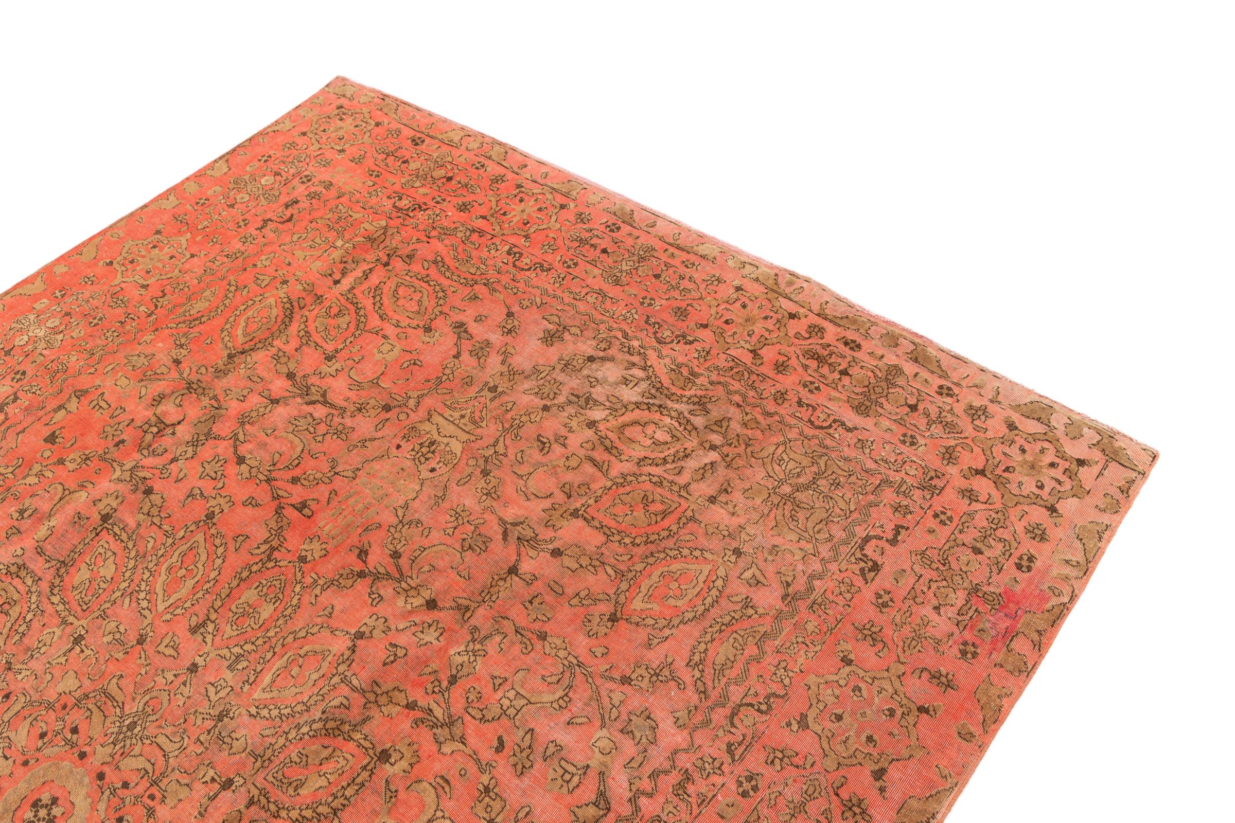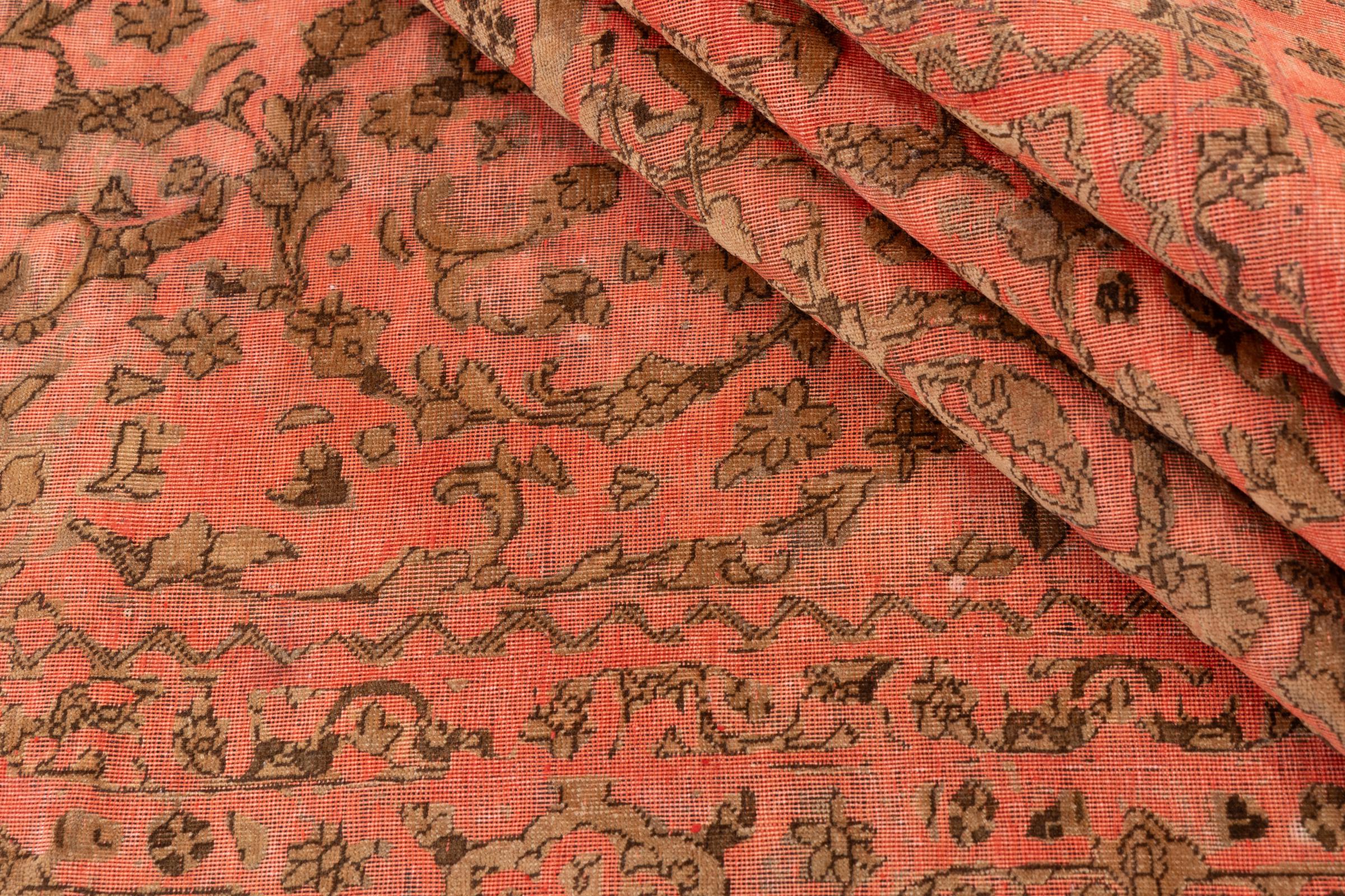 Dette er et håndknyttet persisk tæppe, som er mindst 20 år gammelt. Sådan et tæppe kan holde i generationer med den rette pleje. Tæppet er blevet fuldstændig genfarvet uden helt at overfarve de oprindeligt knyttede ornamenter. Det giver det persiske tæppe af høj kvalitet en unik moderne vintage-karakter.