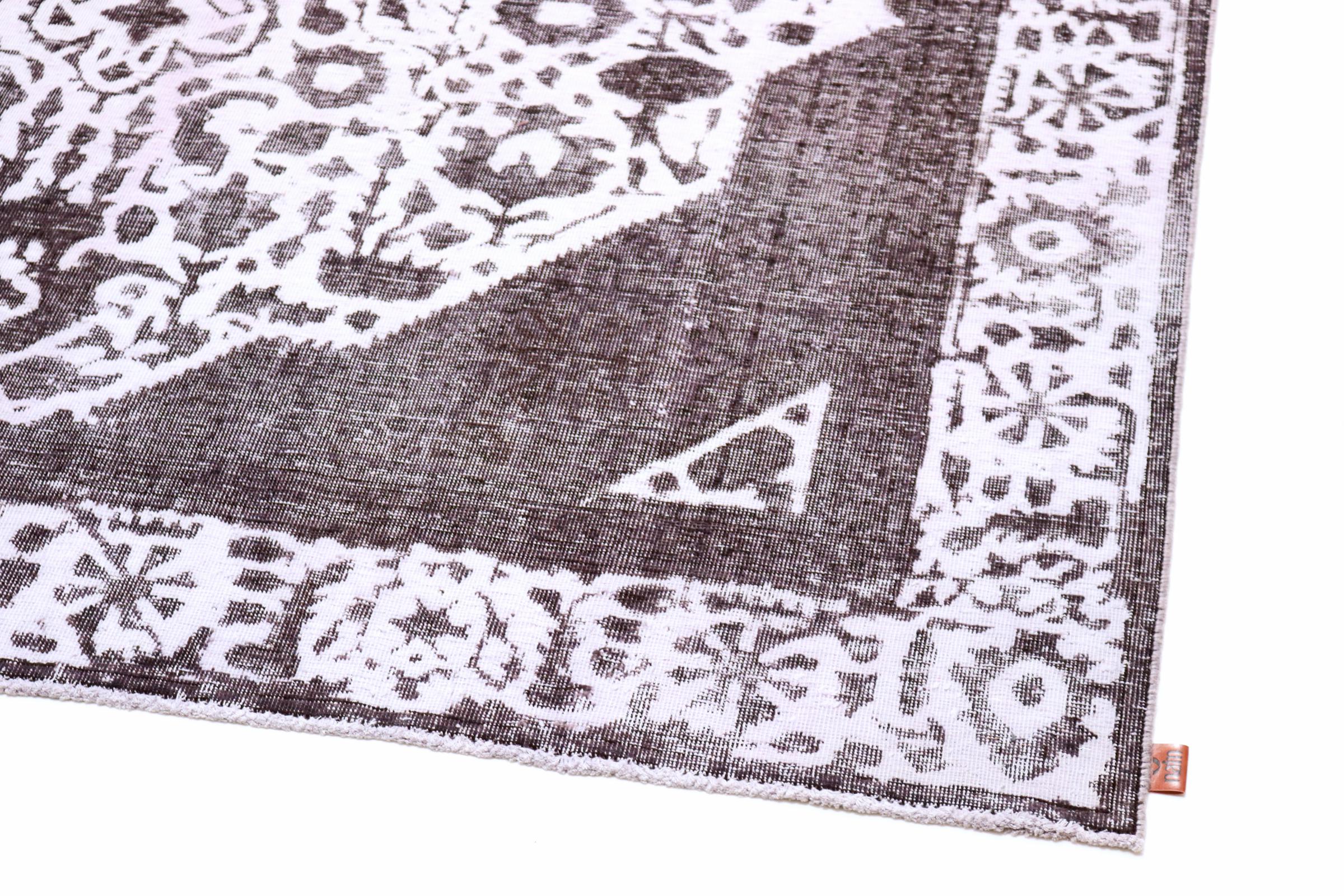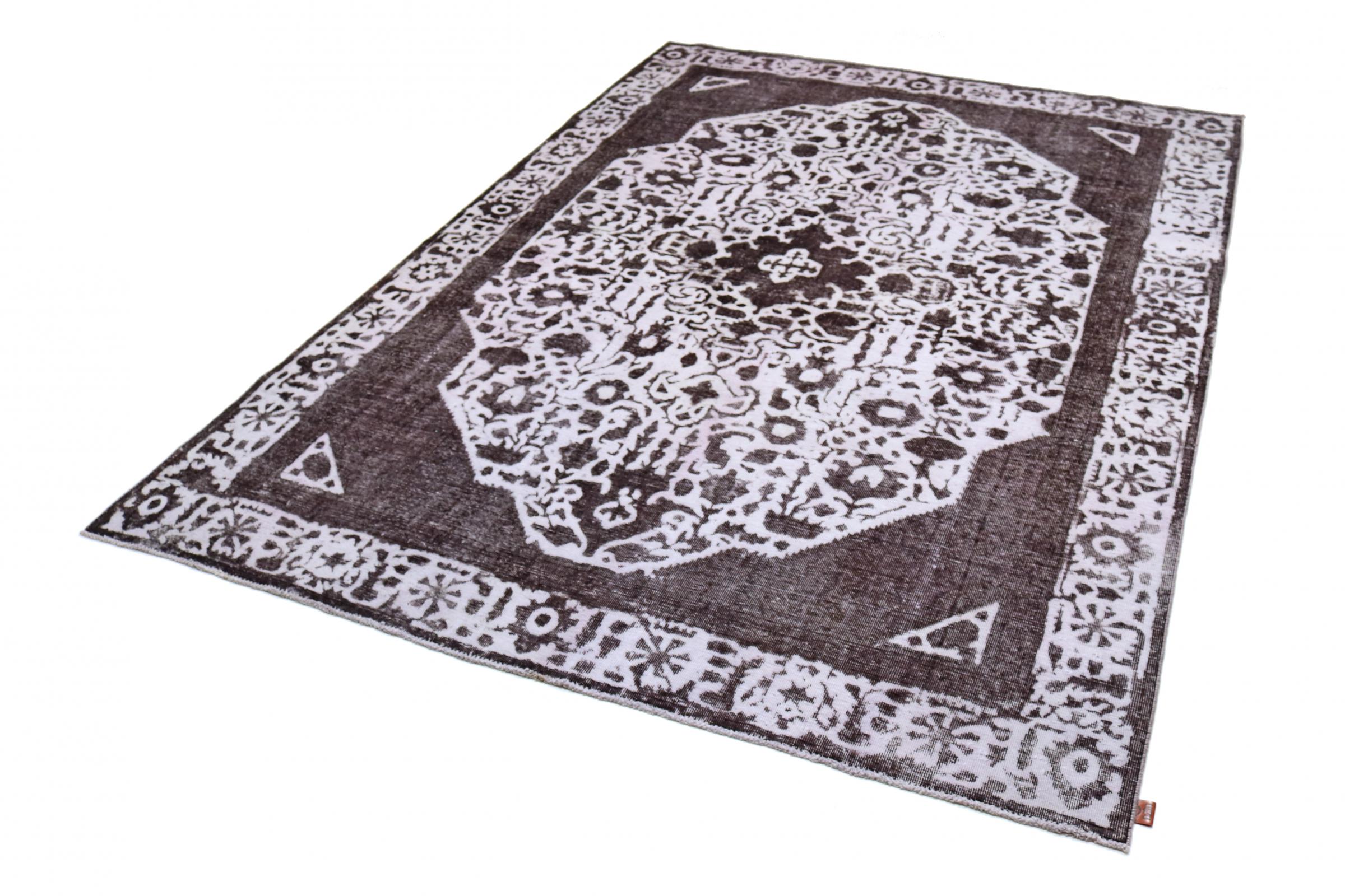 Dette er et håndknyttet persisk tæppe, som er mindst 20 år gammelt. Sådan et tæppe kan holde i generationer med den rette pleje. Tæppet er blevet fuldstændig genfarvet uden helt at overfarve de oprindeligt knyttede ornamenter. Det giver det persiske tæppe af høj kvalitet en unik moderne vintage-karakter.
