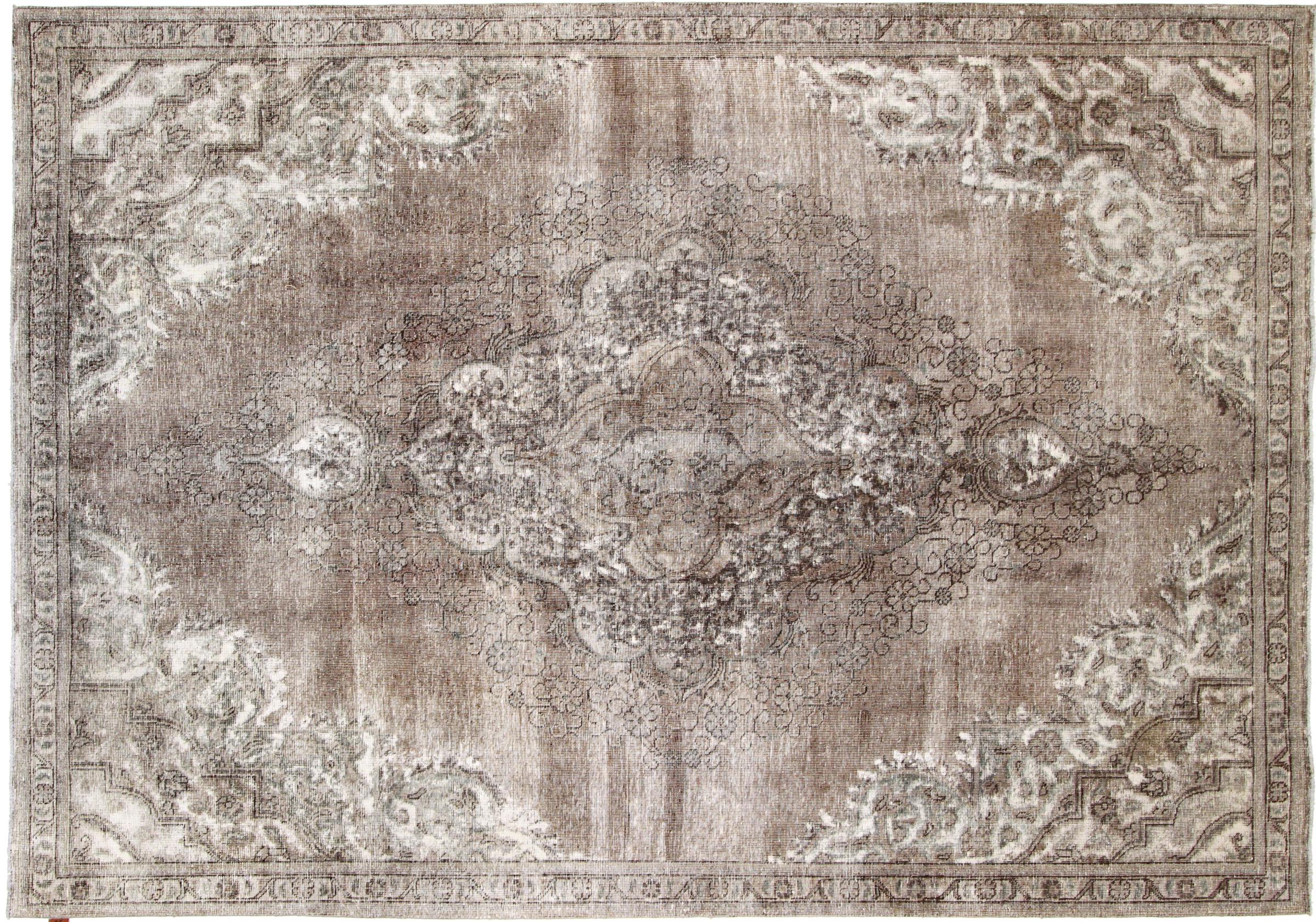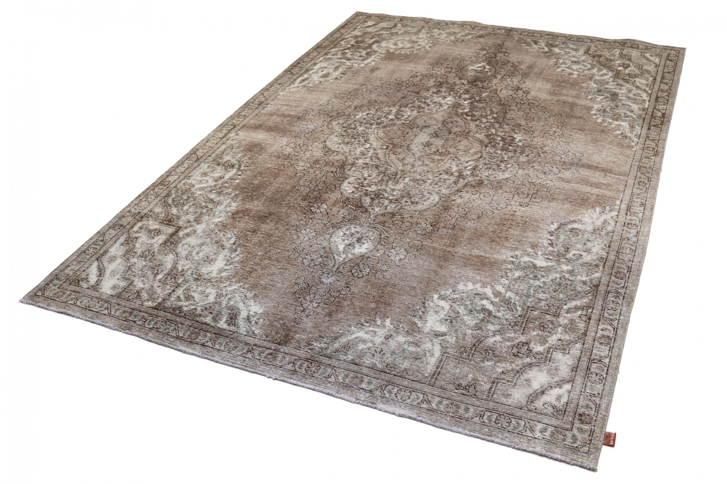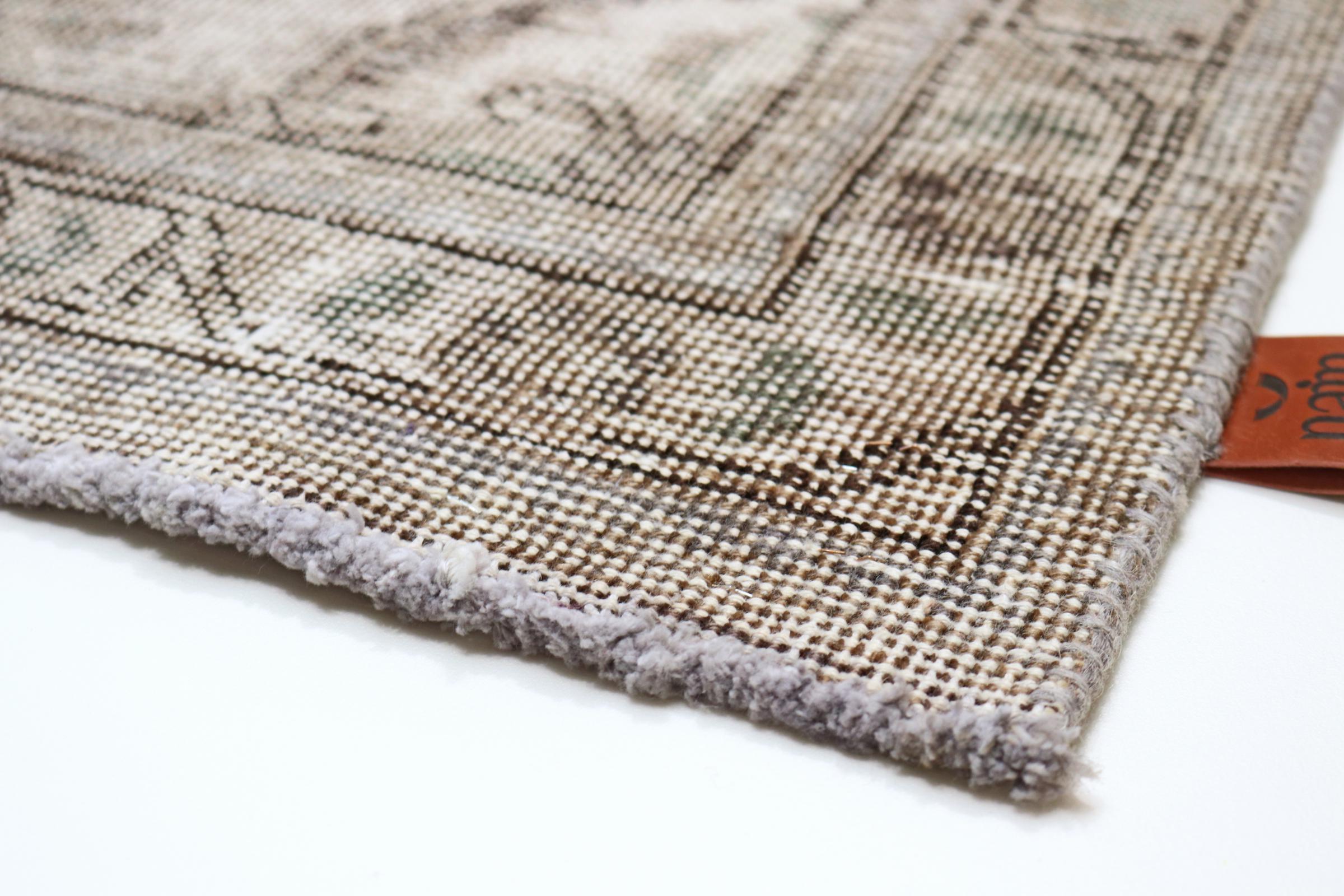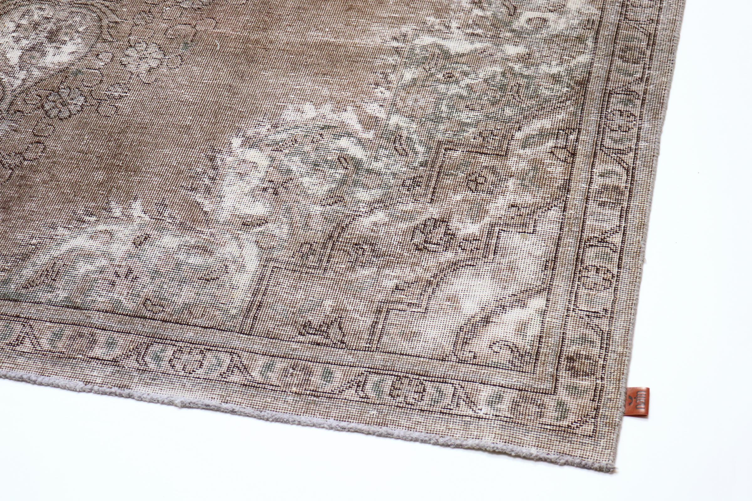 Dette er et håndknyttet persisk tæppe, som er mindst 20 år gammelt. Sådan et tæppe kan holde i generationer med den rette pleje. Tæppet er blevet fuldstændig genfarvet uden helt at overfarve de oprindeligt knyttede ornamenter. Det giver det persiske tæppe af høj kvalitet en unik moderne vintage-karakter.