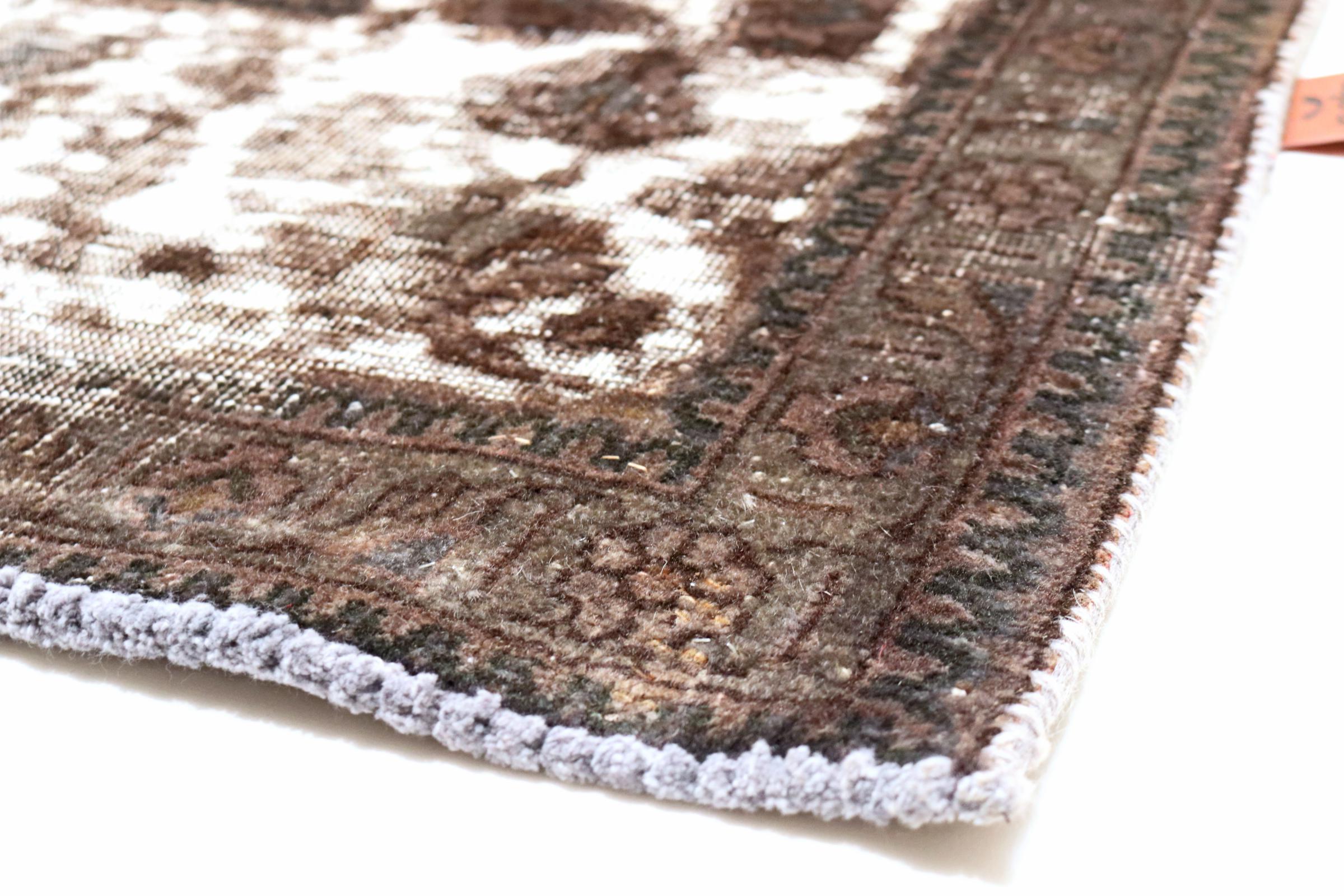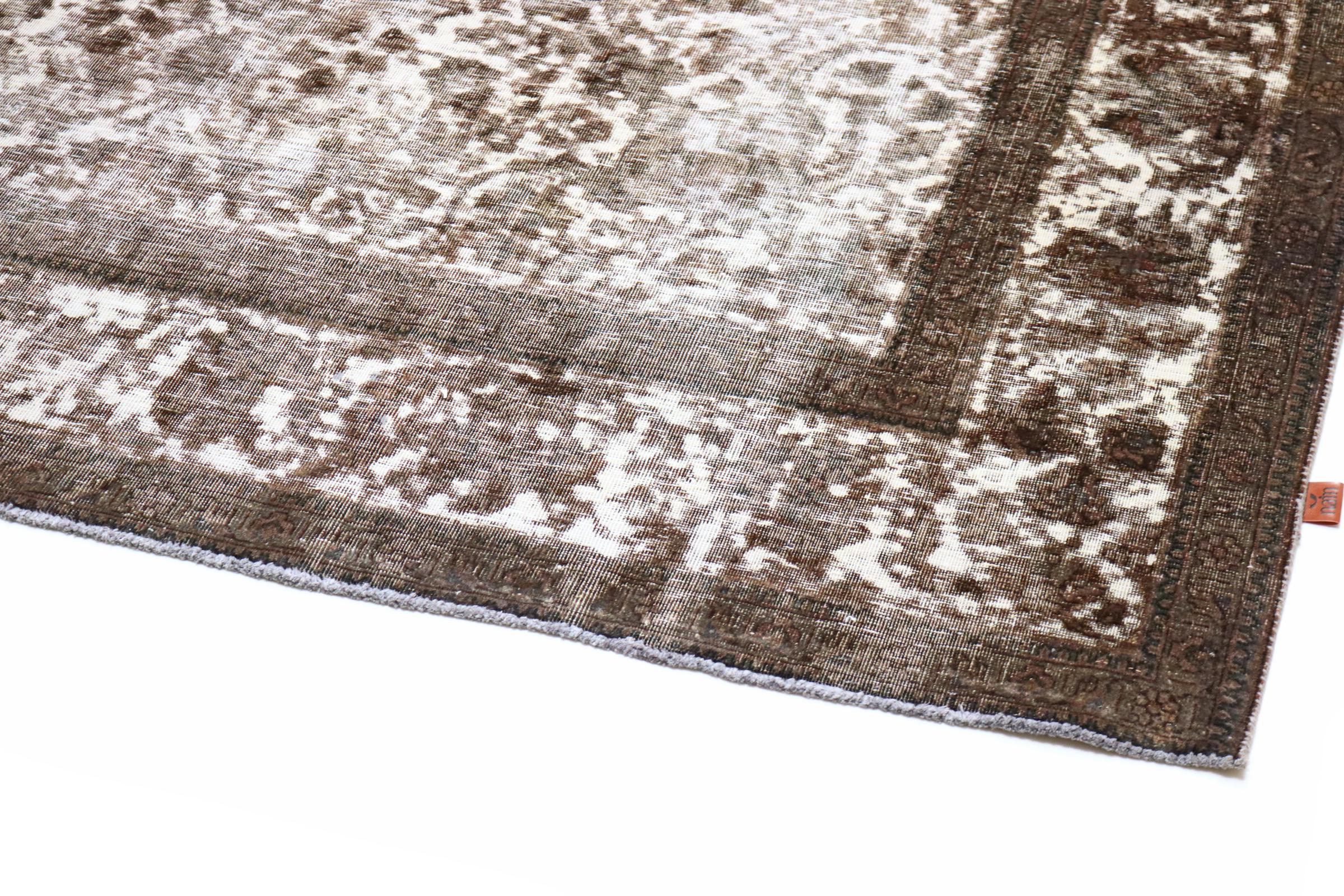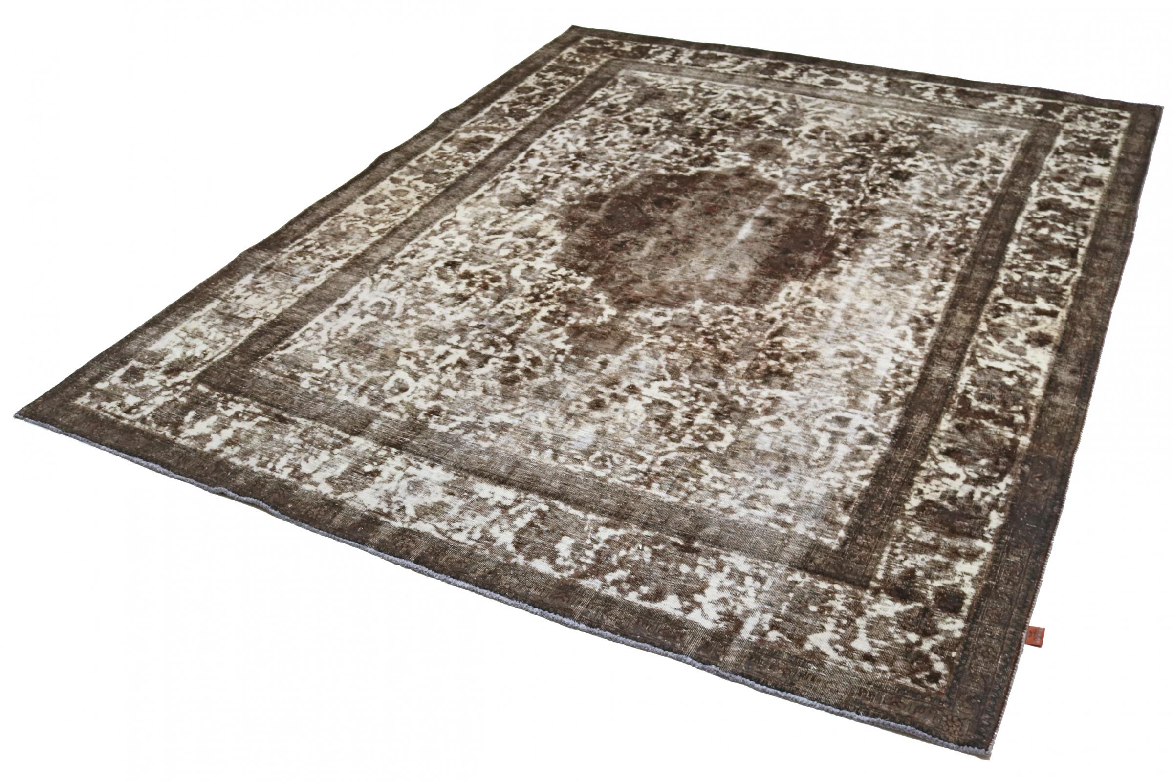 Dette er et håndknyttet persisk tæppe, som er mindst 20 år gammelt. Sådan et tæppe kan holde i generationer med den rette pleje. Tæppet er blevet fuldstændig genfarvet uden helt at overfarve de oprindeligt knyttede ornamenter. Det giver det persiske tæppe af høj kvalitet en unik moderne vintage-karakter.