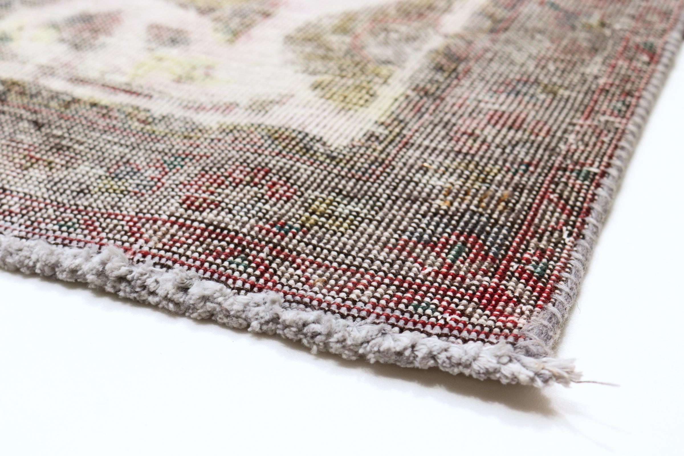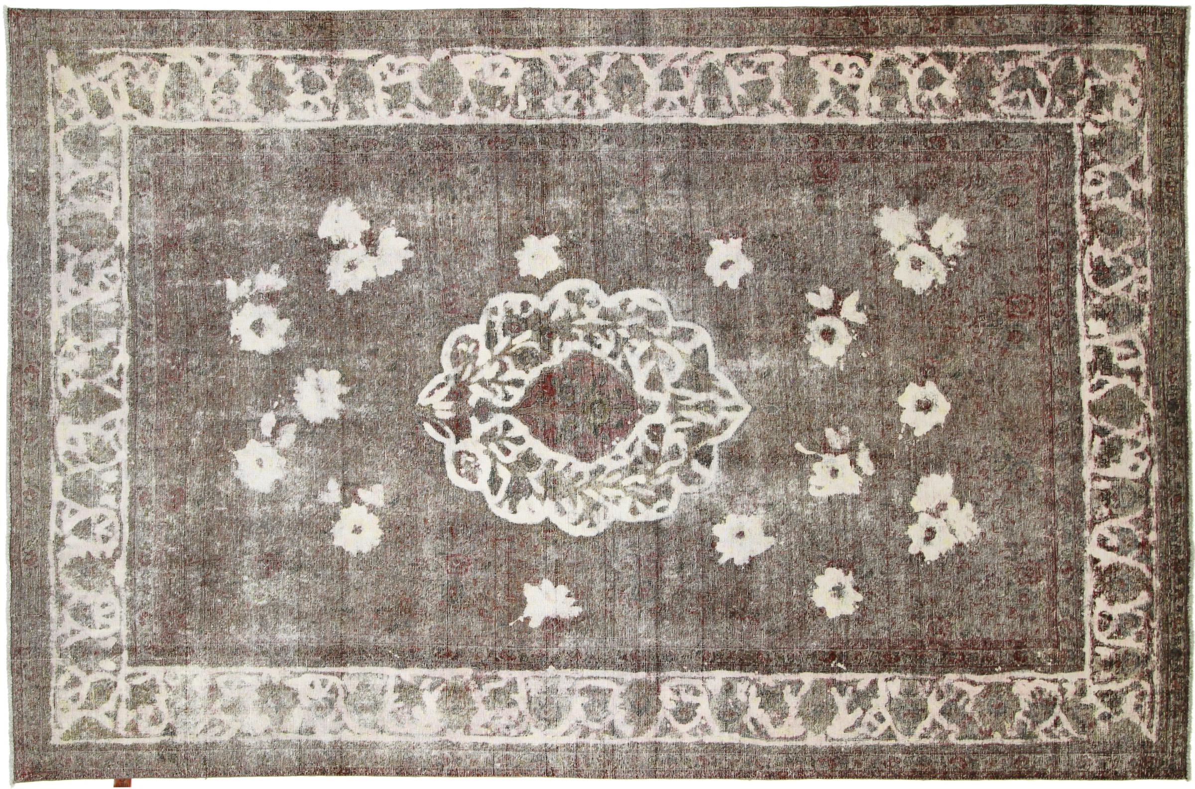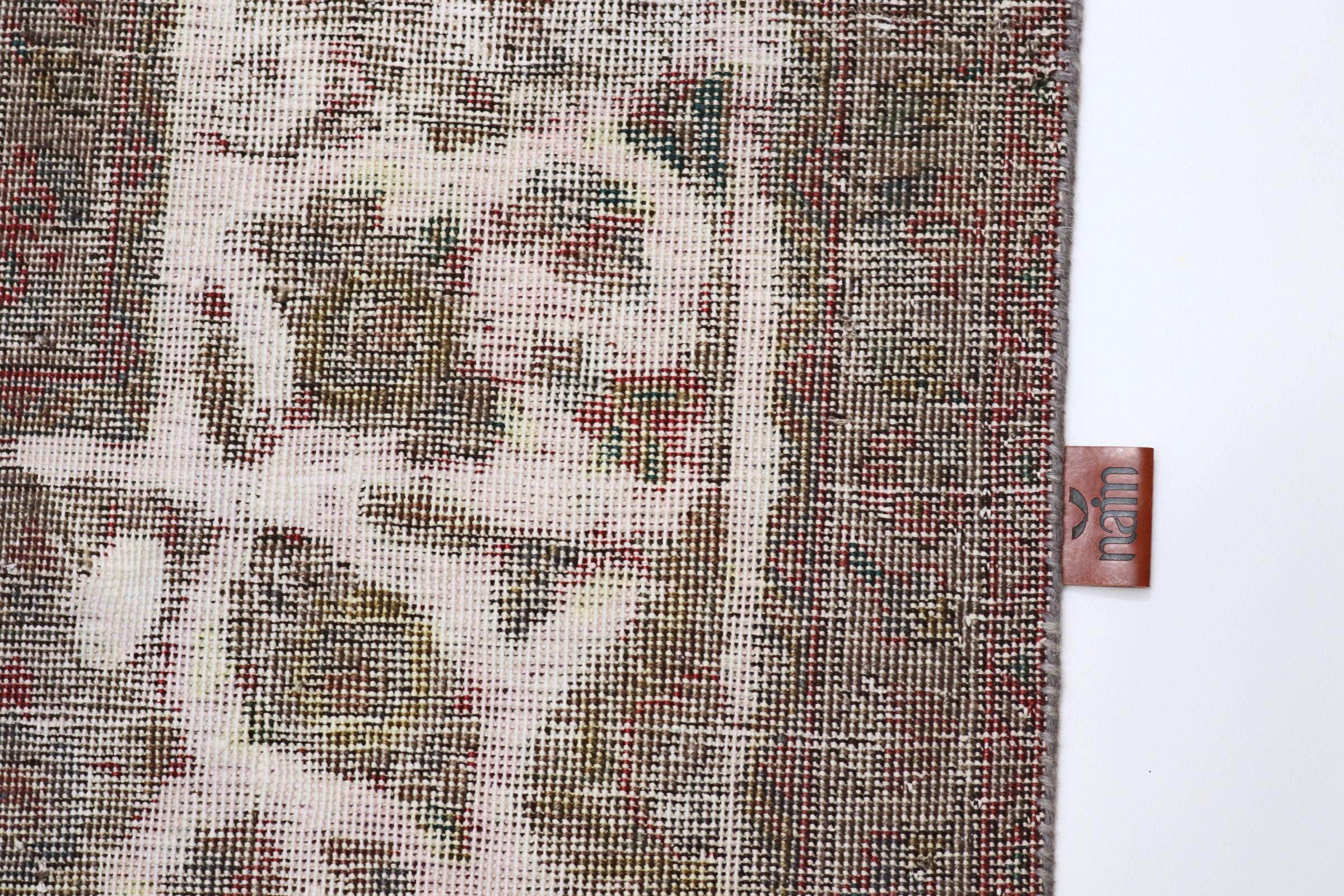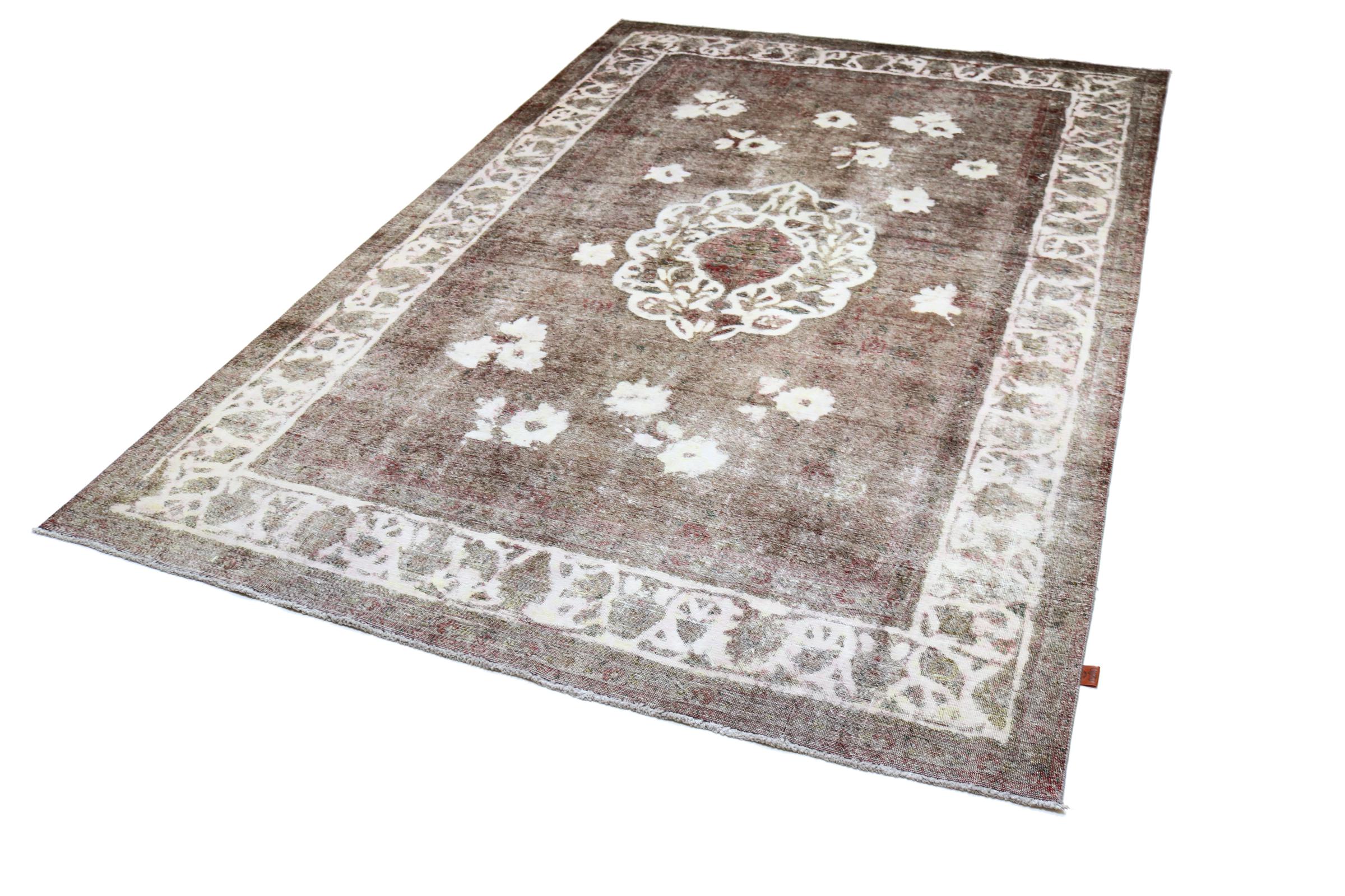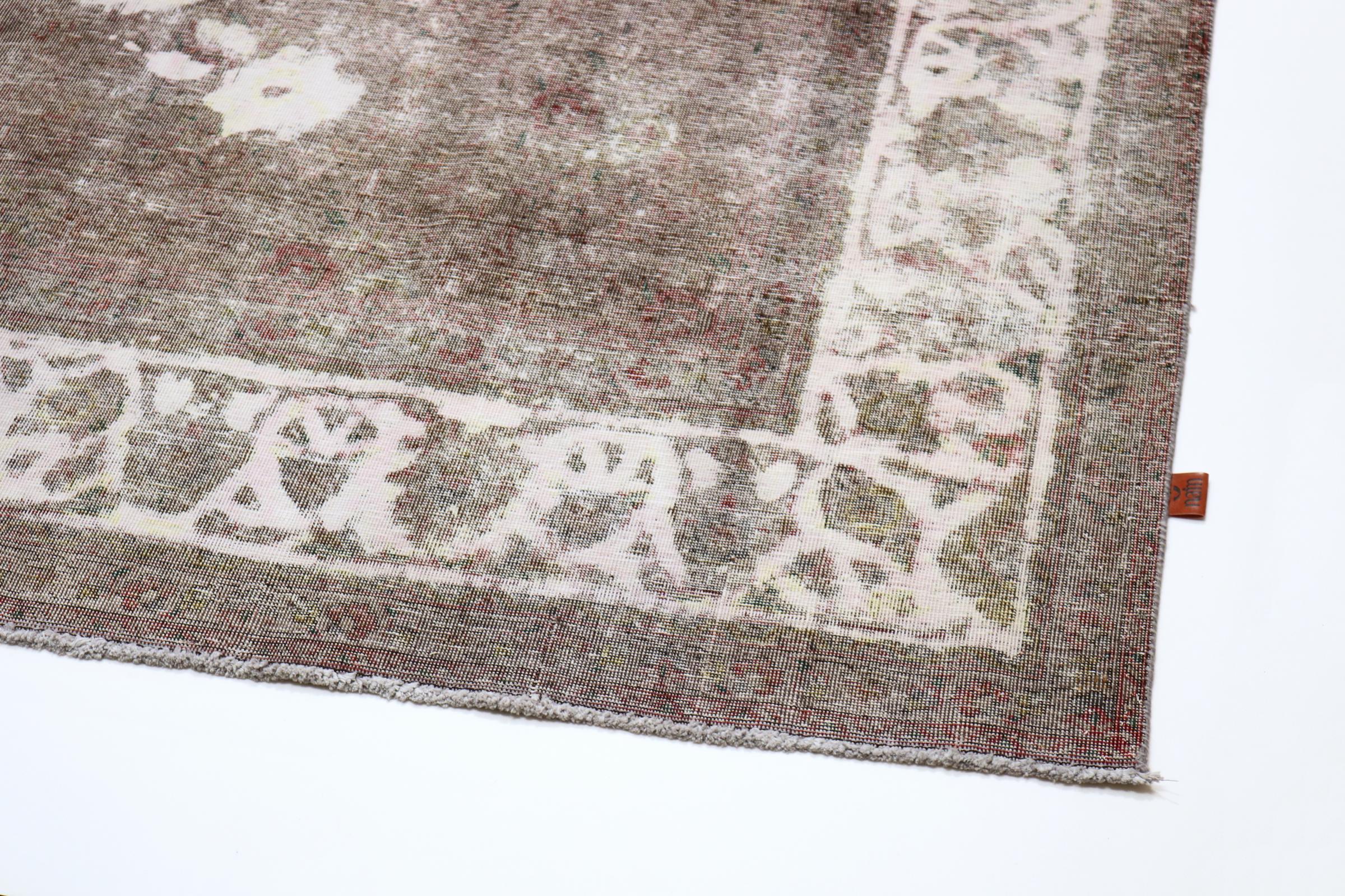 Dette er et håndknyttet persisk tæppe, som er mindst 20 år gammelt. Sådan et tæppe kan holde i generationer med den rette pleje. Tæppet er blevet fuldstændig genfarvet uden helt at overfarve de oprindeligt knyttede ornamenter. Det giver det persiske tæppe af høj kvalitet en unik moderne vintage-karakter.