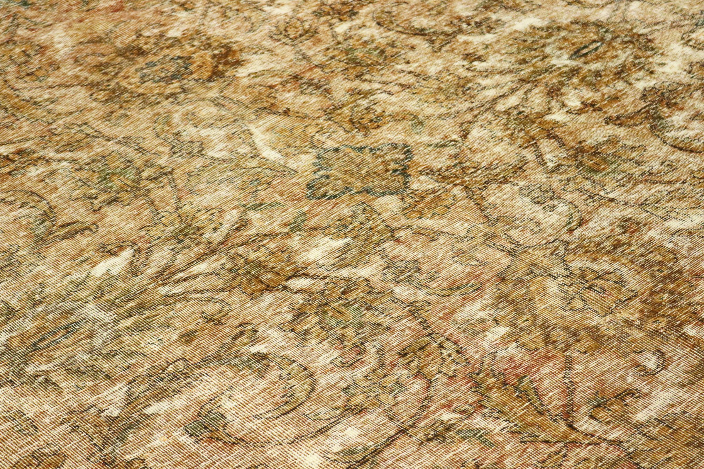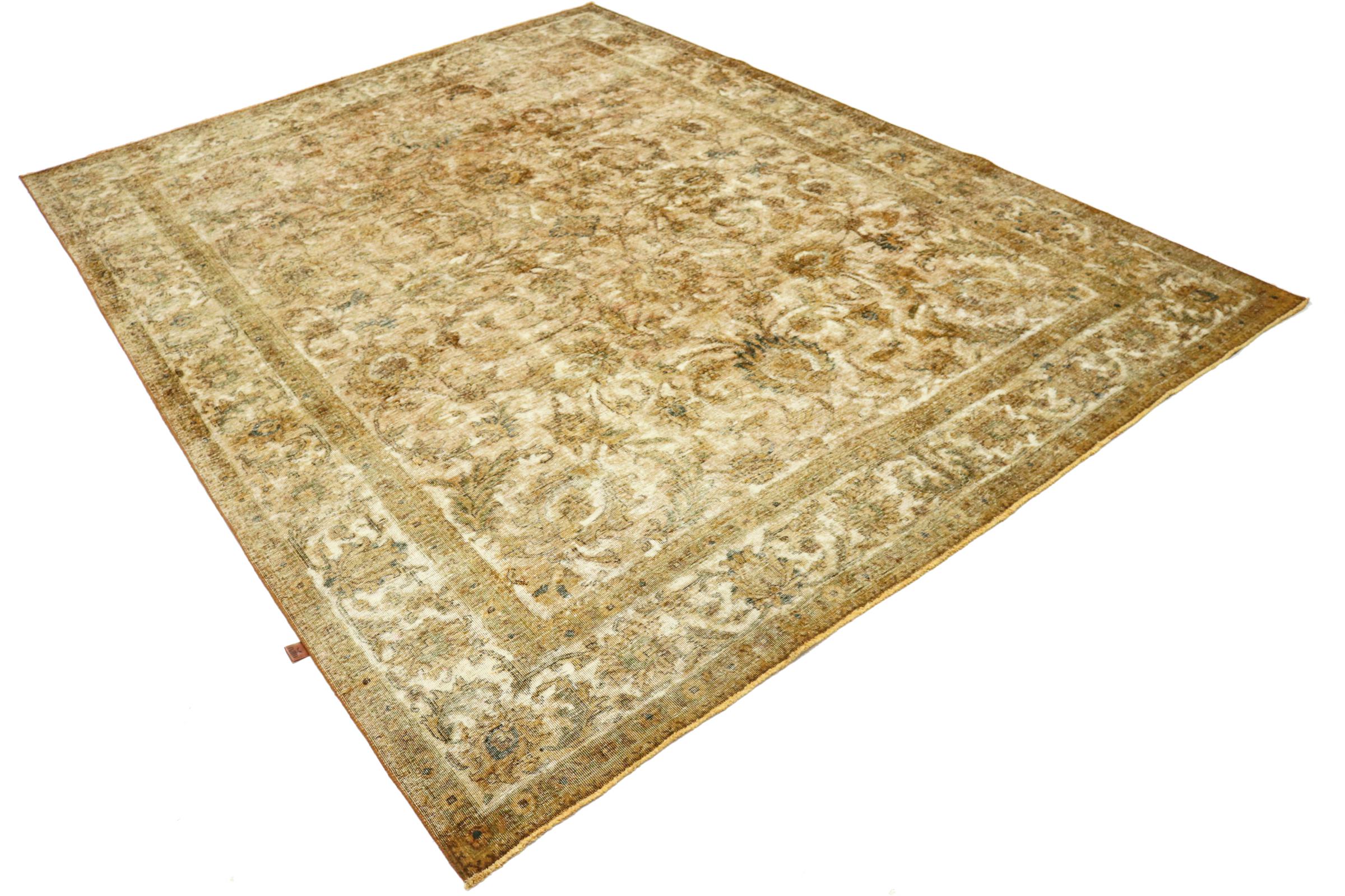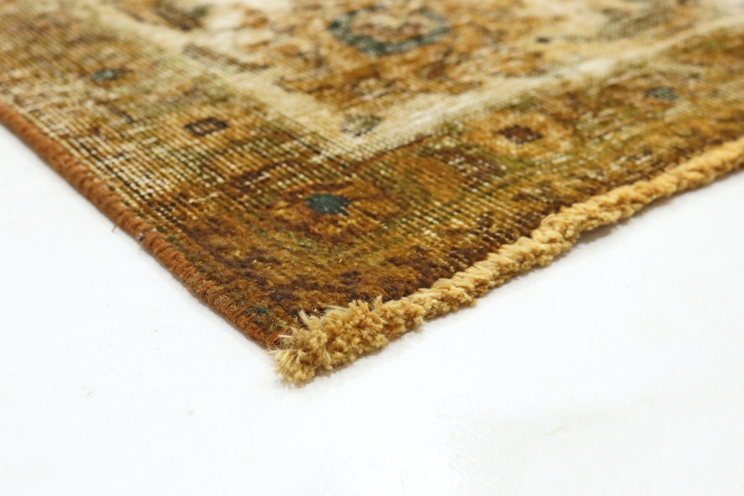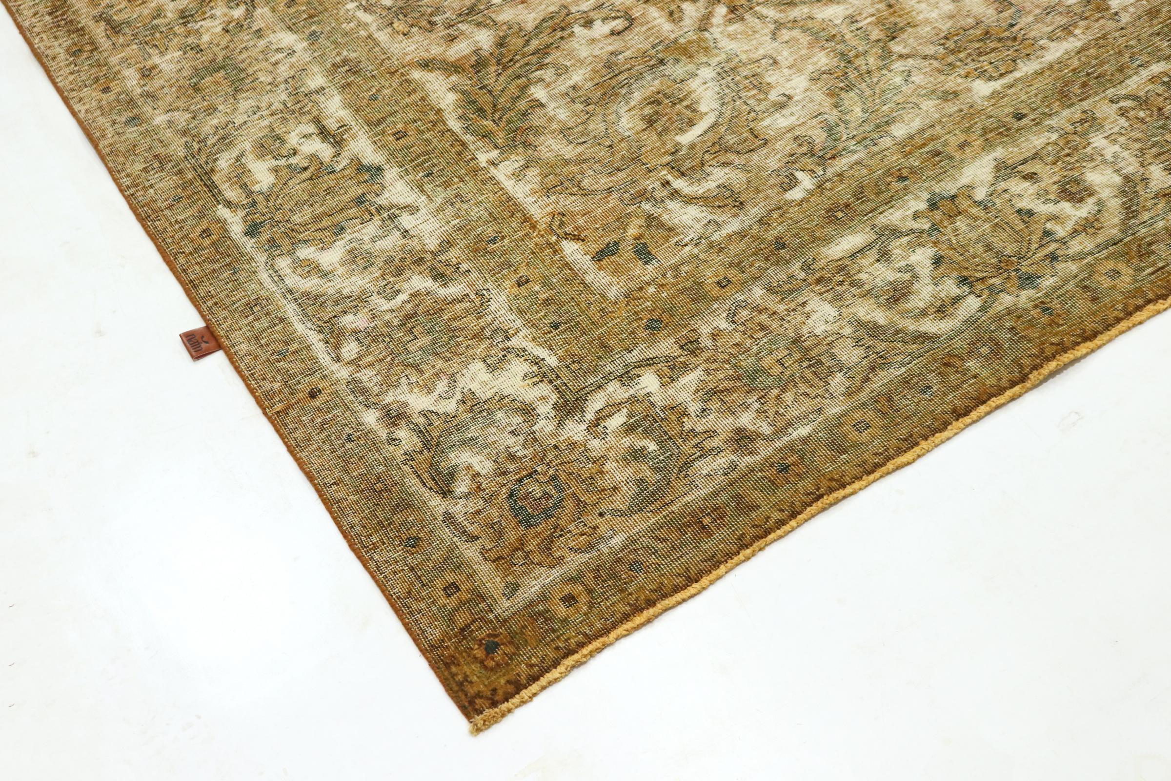 Dette er et håndknyttet persisk tæppe, som er mindst 20 år gammelt. Sådan et tæppe kan holde i generationer med den rette pleje. Tæppet er blevet fuldstændig genfarvet uden helt at overfarve de oprindeligt knyttede ornamenter. Det giver det persiske tæppe af høj kvalitet en unik moderne vintage-karakter.