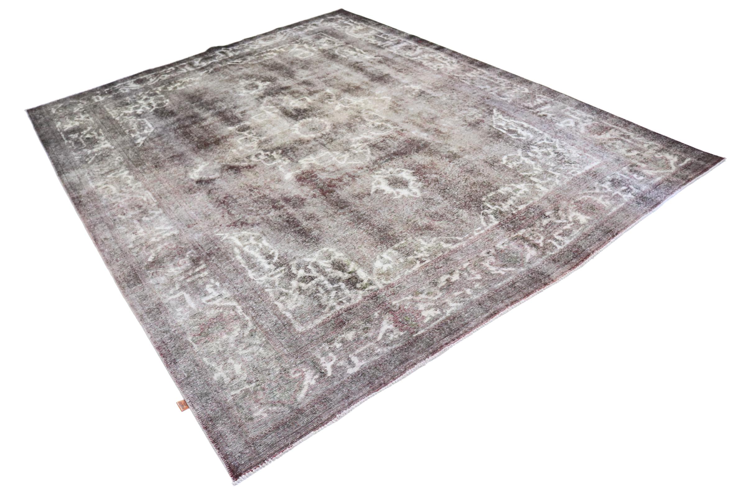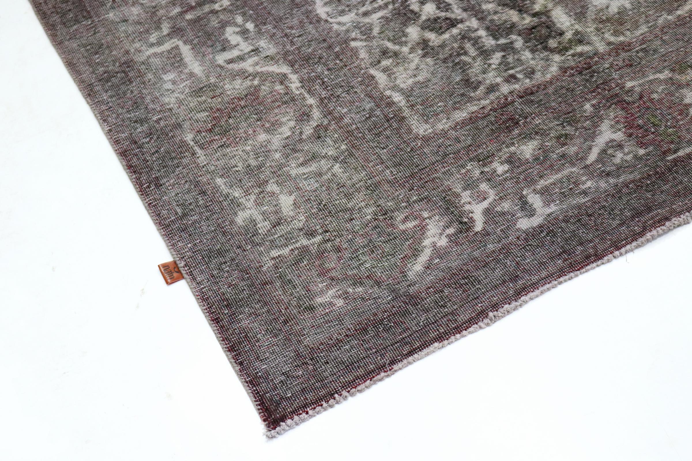 Dette er et håndknyttet persisk tæppe, som er mindst 20 år gammelt. Sådan et tæppe kan holde i generationer med den rette pleje. Tæppet er blevet fuldstændig genfarvet uden helt at overfarve de oprindeligt knyttede ornamenter. Det giver det persiske tæppe af høj kvalitet en unik moderne vintage-karakter.