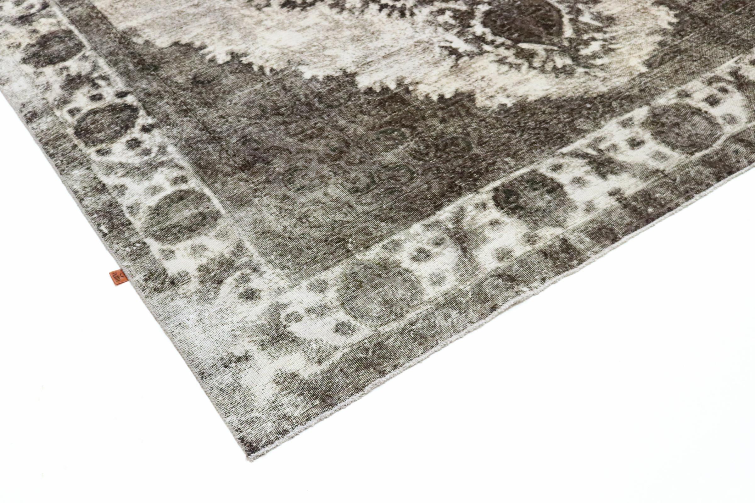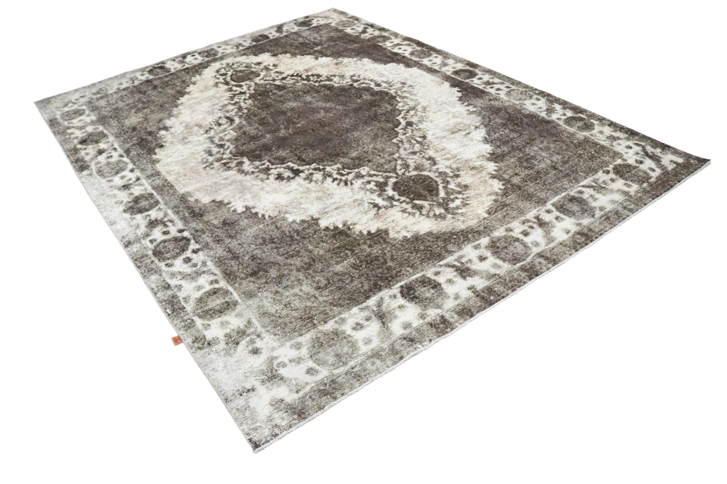 Dette er et håndknyttet persisk tæppe, som er mindst 20 år gammelt. Sådan et tæppe kan holde i generationer med den rette pleje. Tæppet er blevet fuldstændig genfarvet uden helt at overfarve de oprindeligt knyttede ornamenter. Det giver det persiske tæppe af høj kvalitet en unik moderne vintage-karakter.
