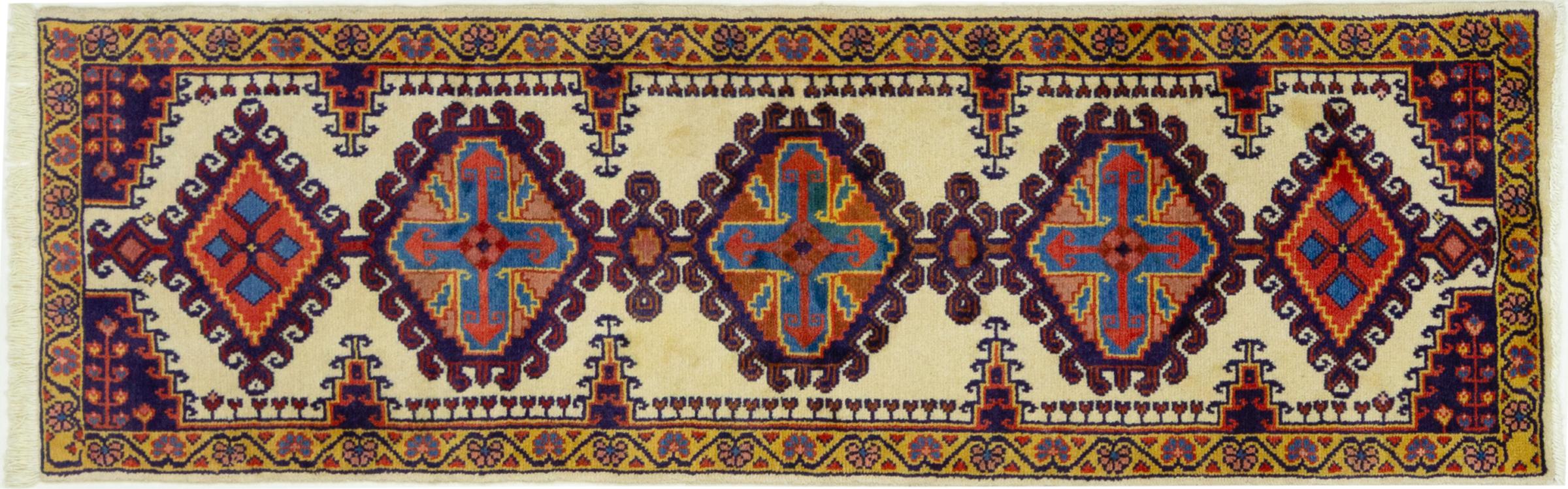 Tæppe-nr.: 303962004963092 Størrelse: 194x64 cm Tykkelse: ca. 5 mm Knuder: 128 000 - 160 000 / m² Forarbejdelse: Knyttet i hånden Luv: Håndspunden uld Kæde: Bomuld Oprindelse: Persien / Iran Alder: Ny Vægt: ca. 4 kg Antal på lager: Unik - Kun 1 tilbage på lager