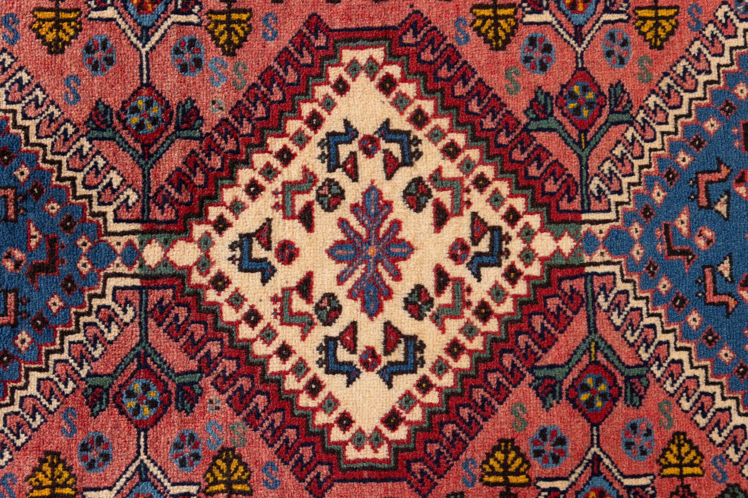 Traditionelt lavet i hånden i Yalameh denne persisk tæppe en smuk repræsentant for sit håndværk. Hvad med at kombinere det med enkle møbler? Garanteret en fryd for øjet.