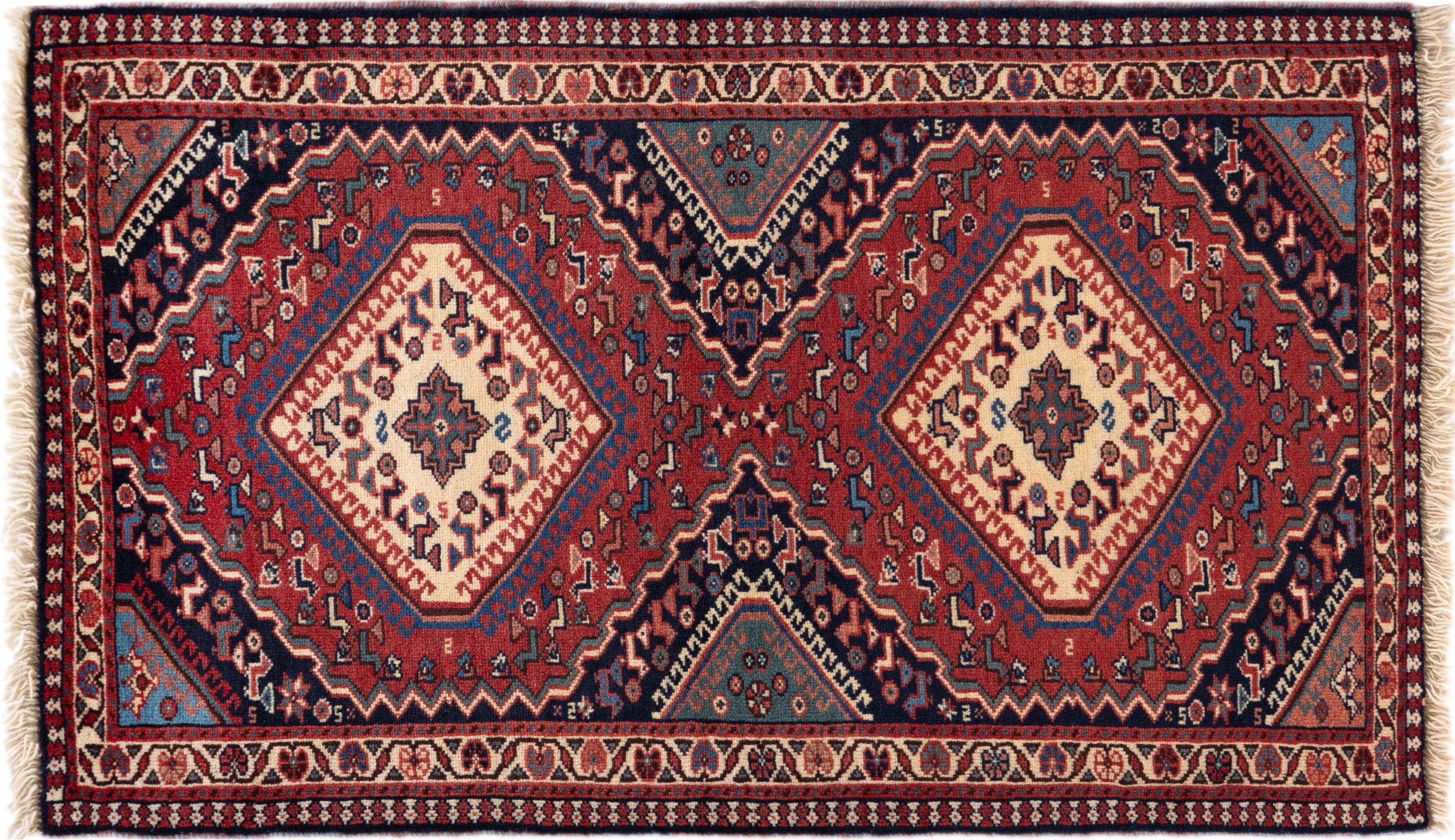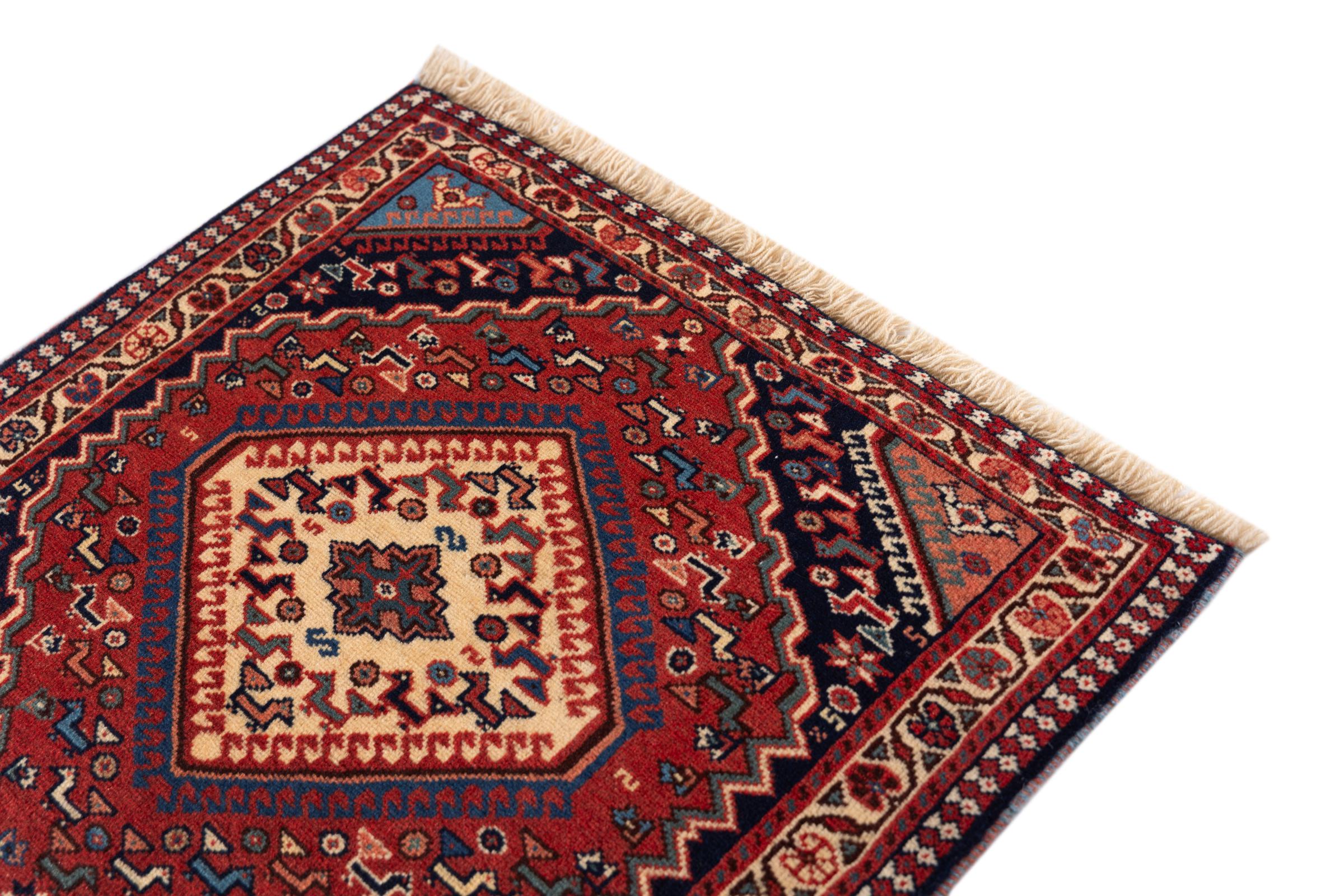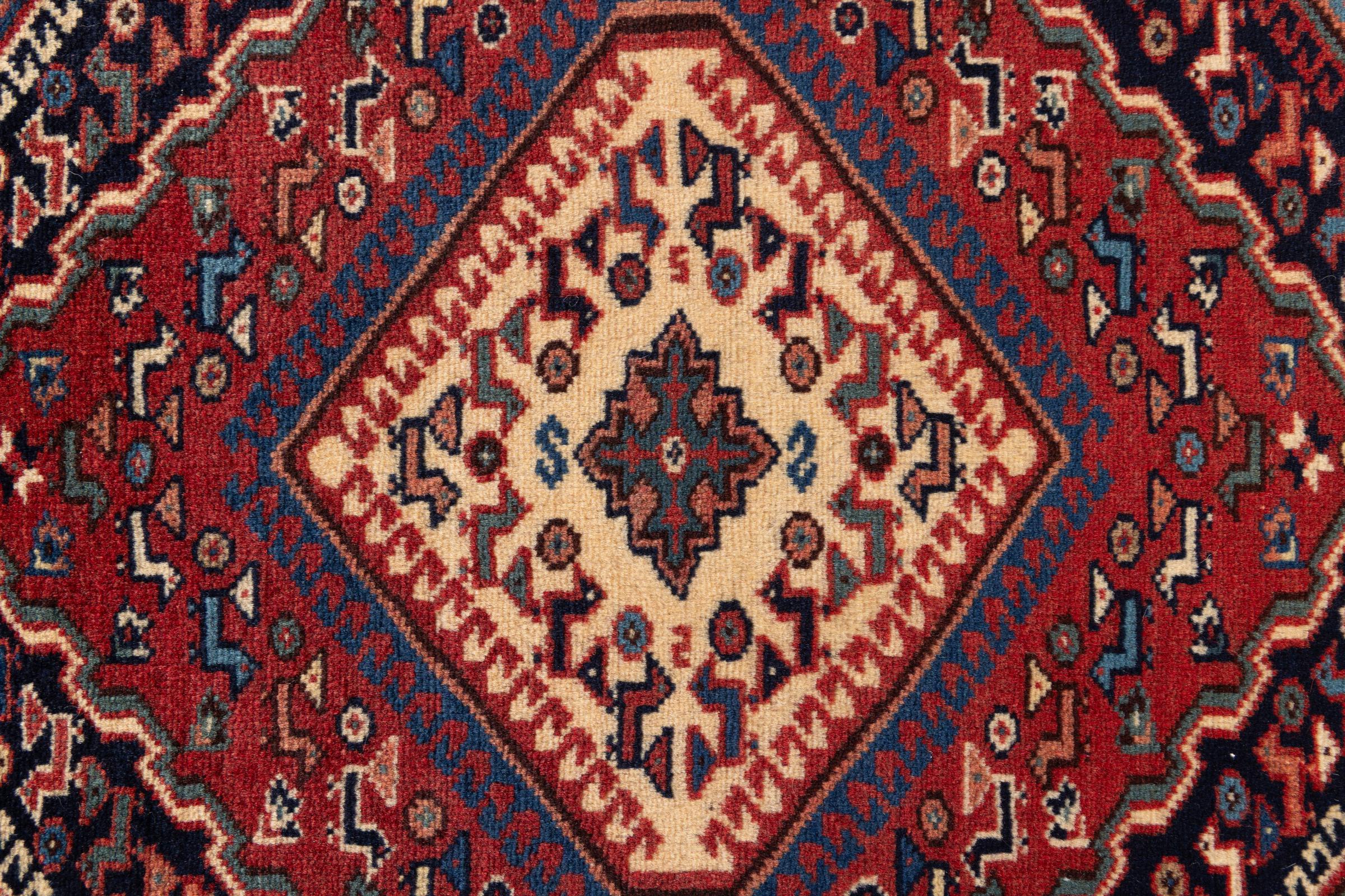 Traditionelt lavet i hånden i Yalameh denne persisk tæppe en smuk repræsentant for sit håndværk. Hvad med at kombinere det med enkle møbler? Garanteret en fryd for øjet.