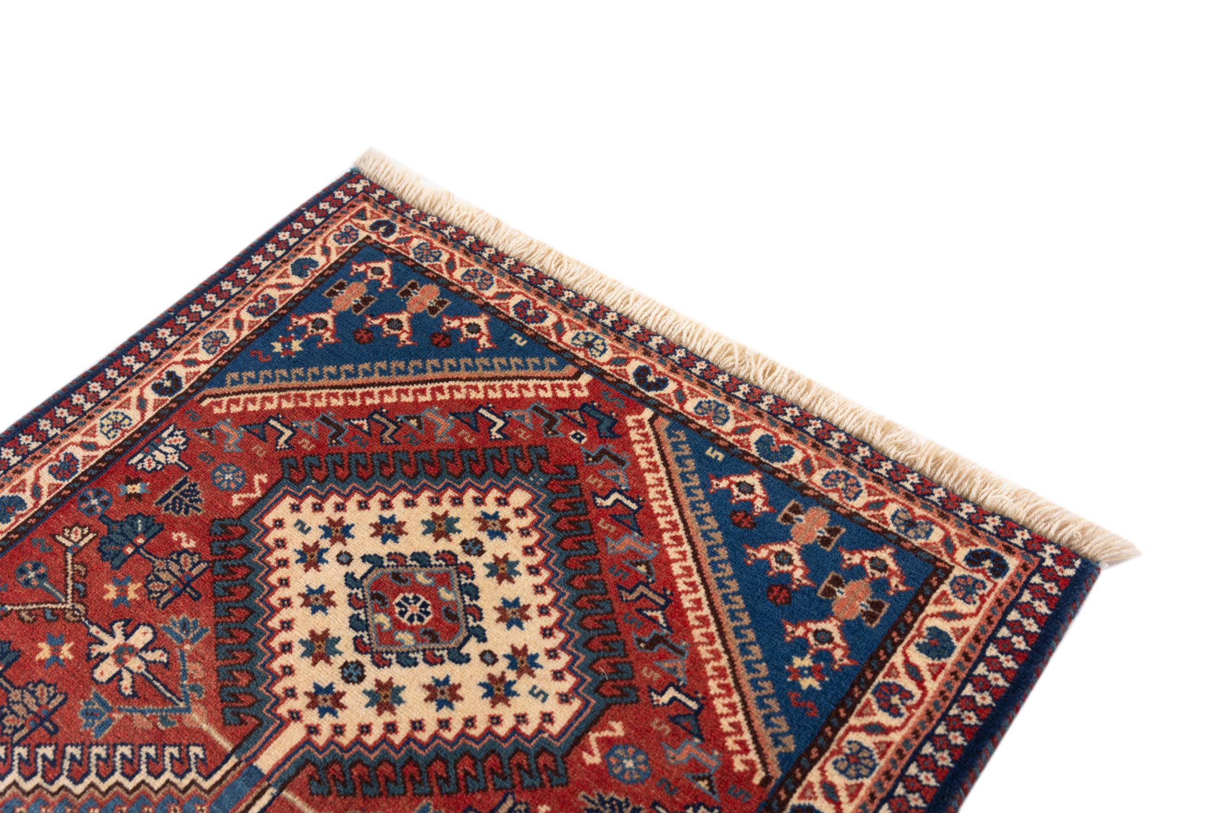 Traditionelt lavet i hånden i Yalameh denne persisk tæppe en smuk repræsentant for sit håndværk. Hvad med at kombinere det med enkle møbler? Garanteret en fryd for øjet.