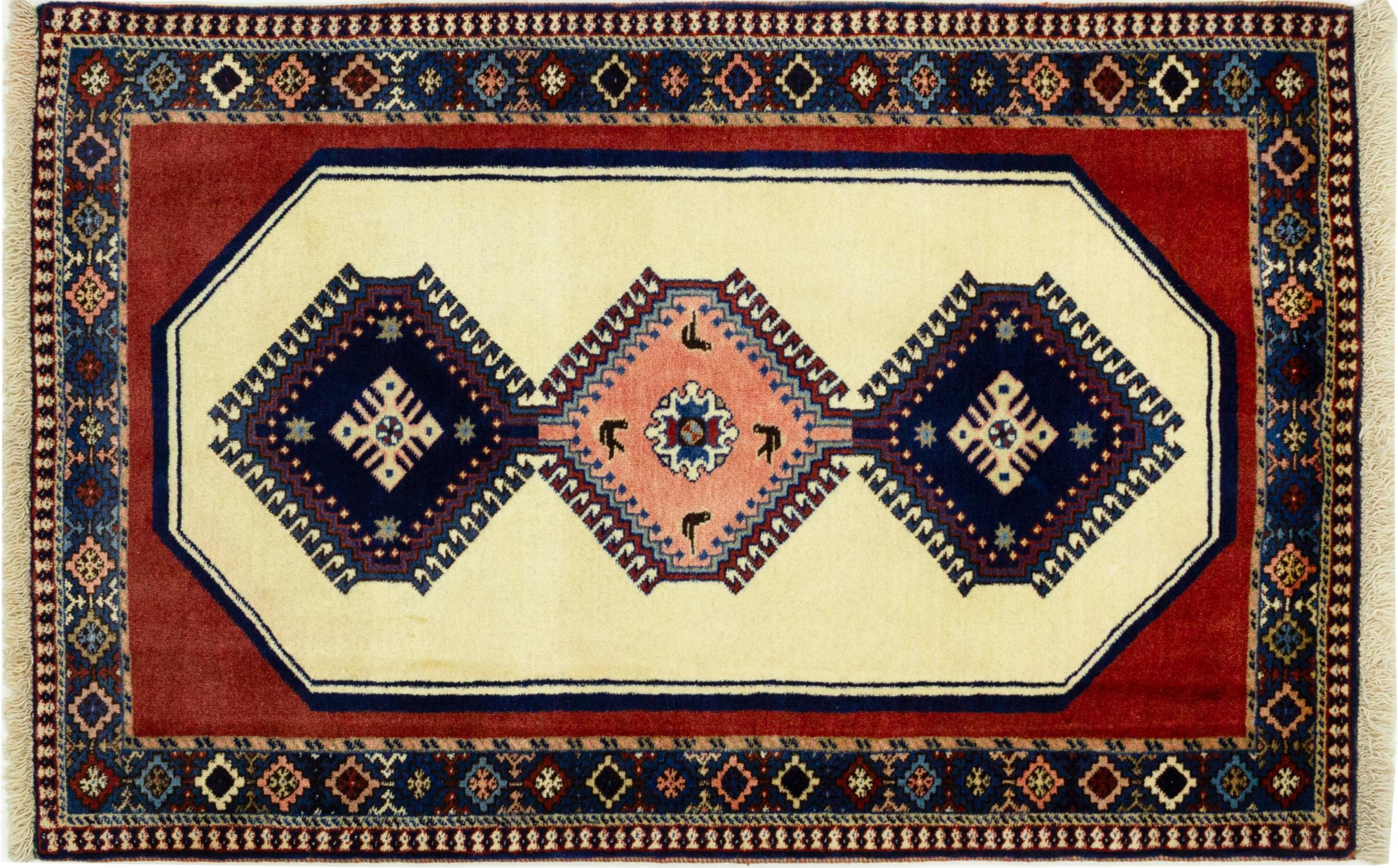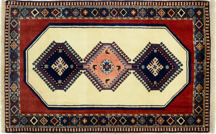 Dette tæppe hører til landsby- og nomadetæpper fra Iran, tidligere Persien. Denne type tæppe er håndknyttet i små byer og landsbyer i den gamle tradition. Nomader fremstiller også persiske tæpper under den åbne himmel. Tæpperne er knudt helt fra hovedet uden en skabelon. De er kendetegnet ved klassiske ornamenter, der er opstillet i lineære og geometriske mønstre. Takket være deres kulturelle og traditionelle oprindelse har disse tæpper en unik karakter, der udgør det gamle Persien.