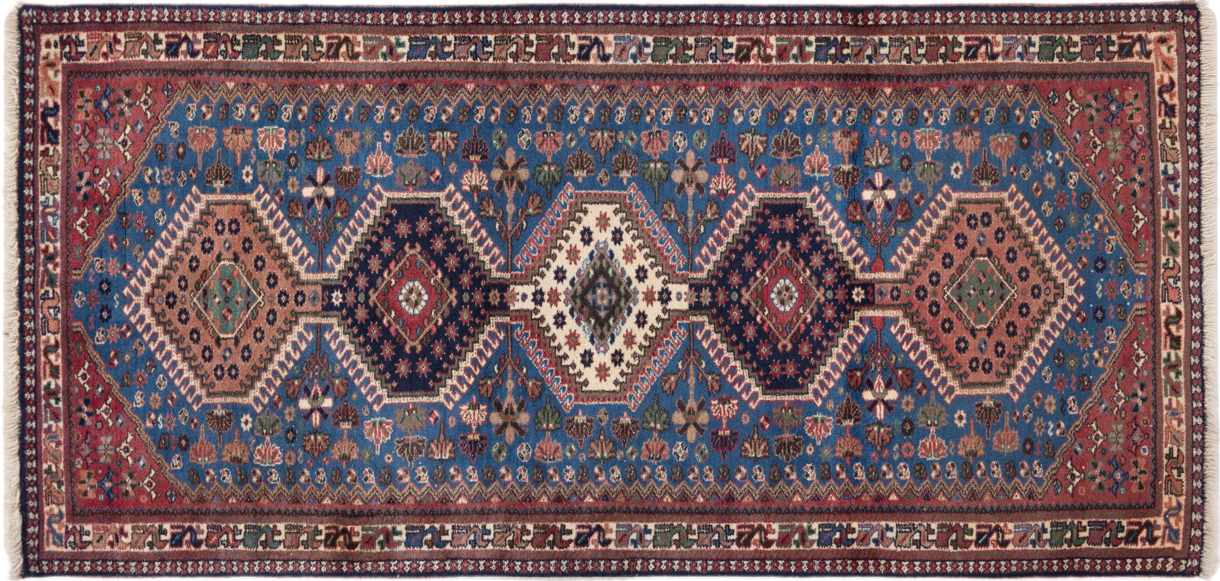 Traditionelt lavet i hånden i Yalameh denne persisk tæppe en smuk repræsentant for sit håndværk. Hvad med at kombinere det med enkle møbler? Garanteret en fryd for øjet.
