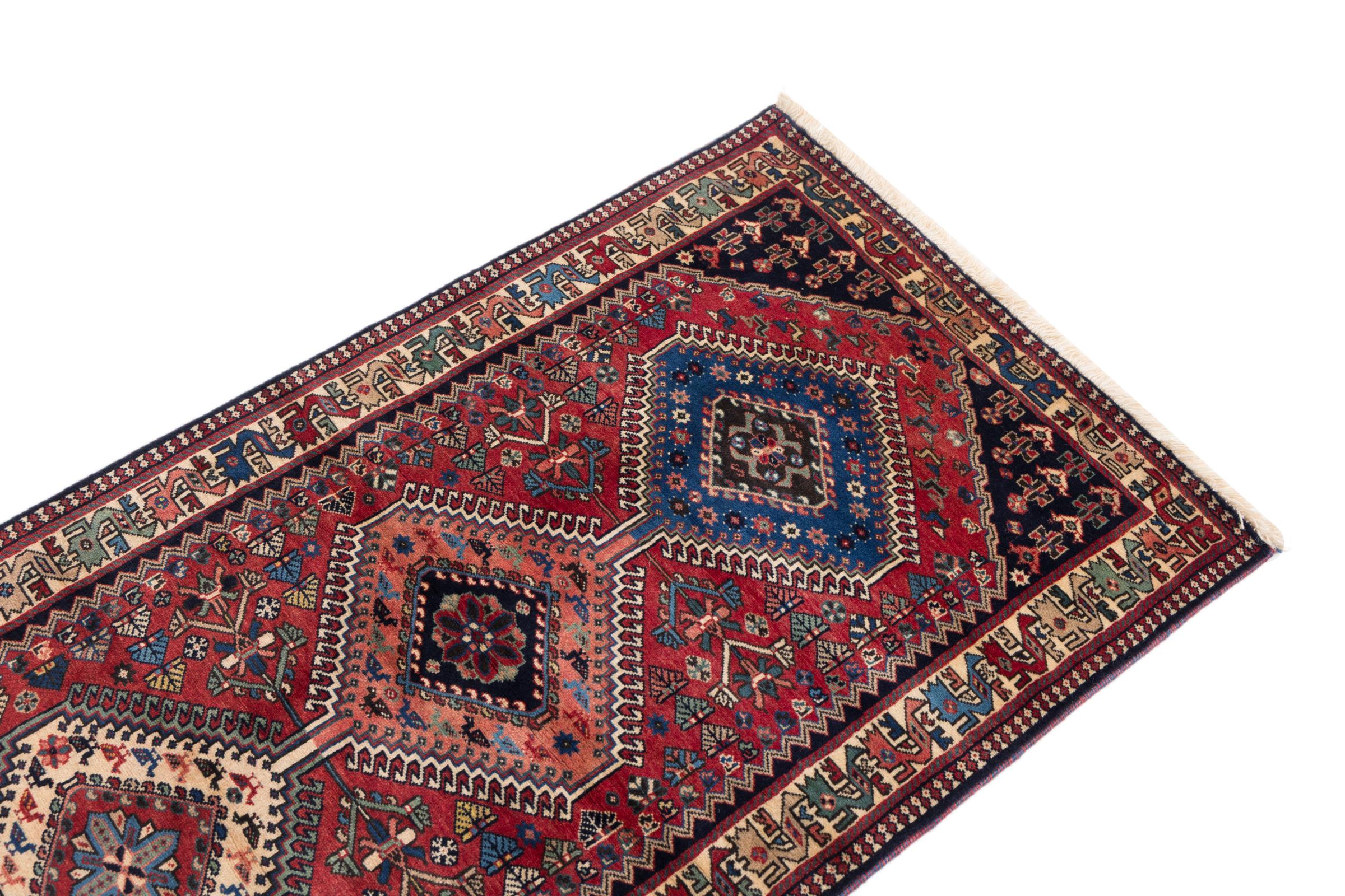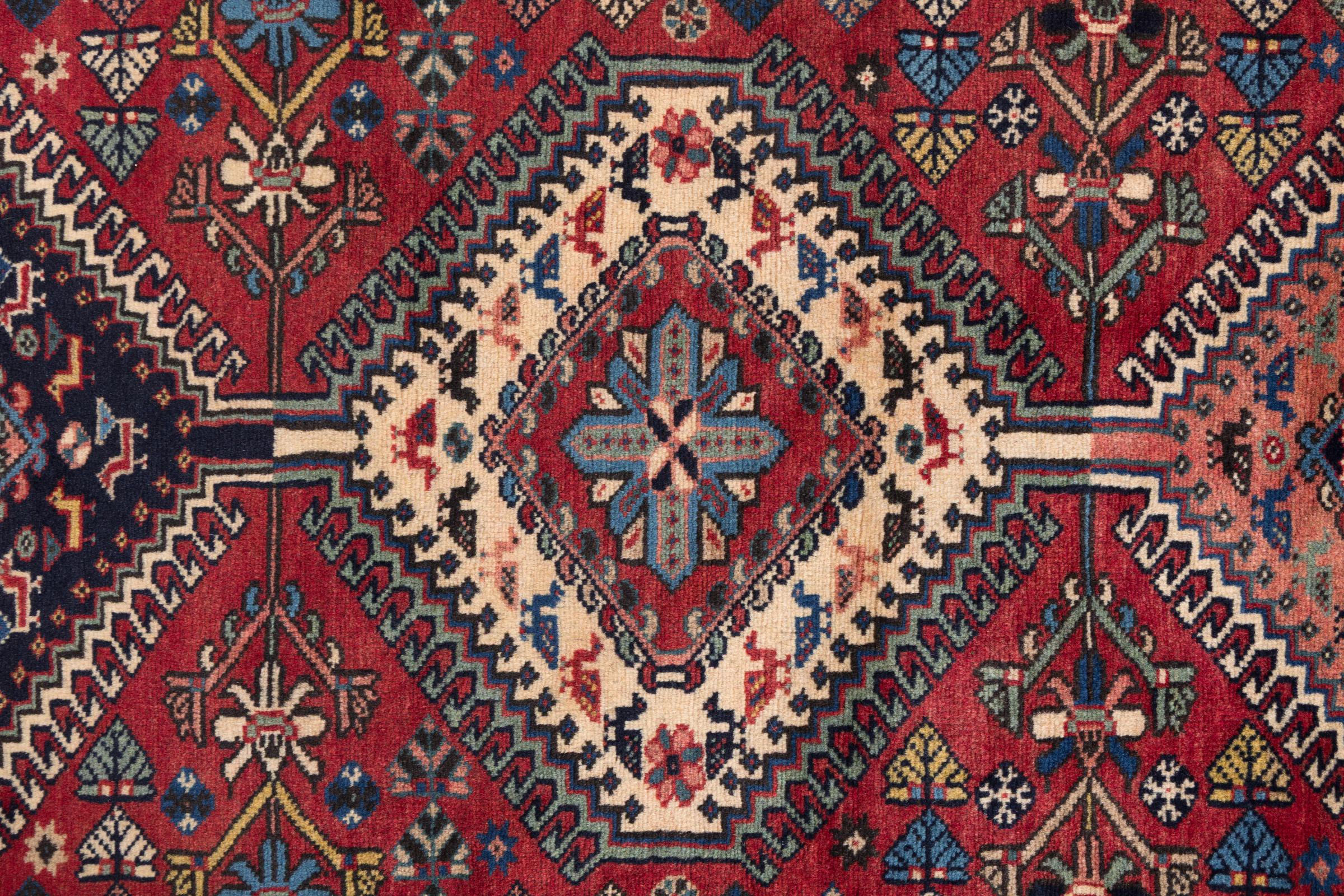 Traditionelt lavet i hånden i Yalameh denne persisk tæppe en smuk repræsentant for sit håndværk. Hvad med at kombinere det med enkle møbler? Garanteret en fryd for øjet.
