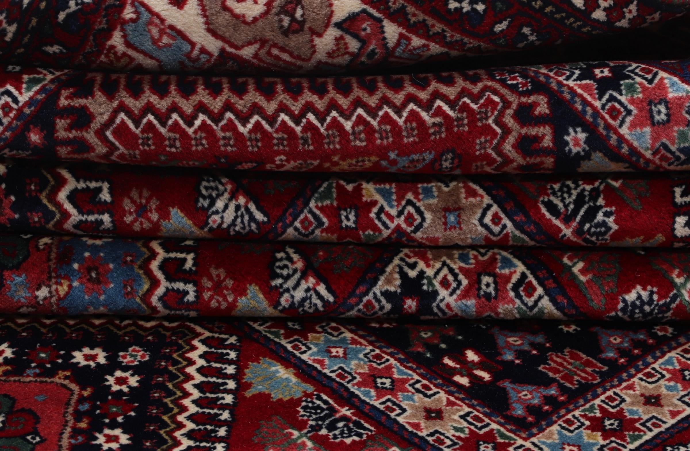 Traditionelt lavet i hånden i Yalameh denne persisk tæppe en smuk repræsentant for sit håndværk. Hvad med at kombinere det med enkle møbler? Garanteret en fryd for øjet.