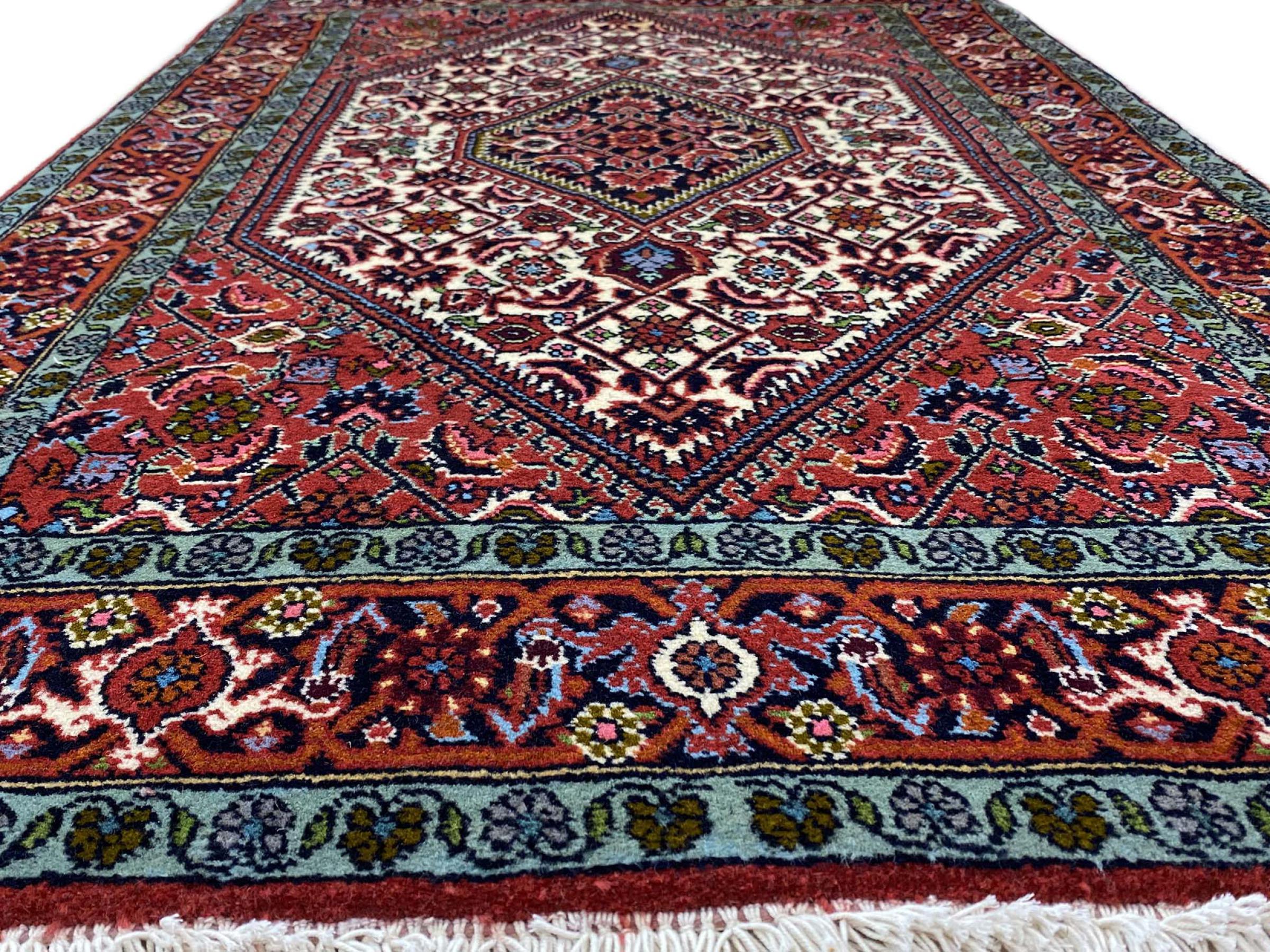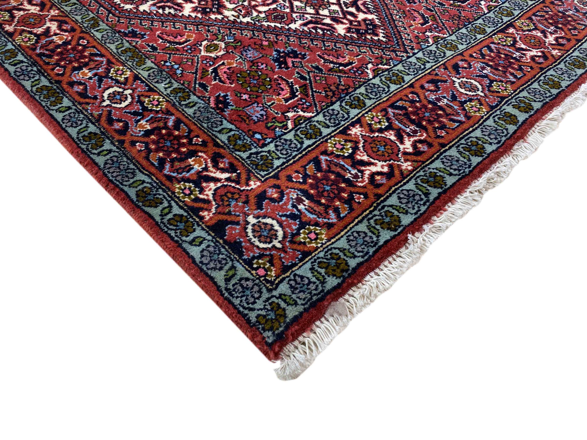 Dette knyttede hånden Sandjan er meget robust og kan anvendes i områder med høj frekvens. Denne persisk tæppe blev håndknyttet i byen Sandjan. Enten i indgangen eller i stuen, tæppet føler sig overalt tilpas. Høj kvalitet betaler sig som altid.