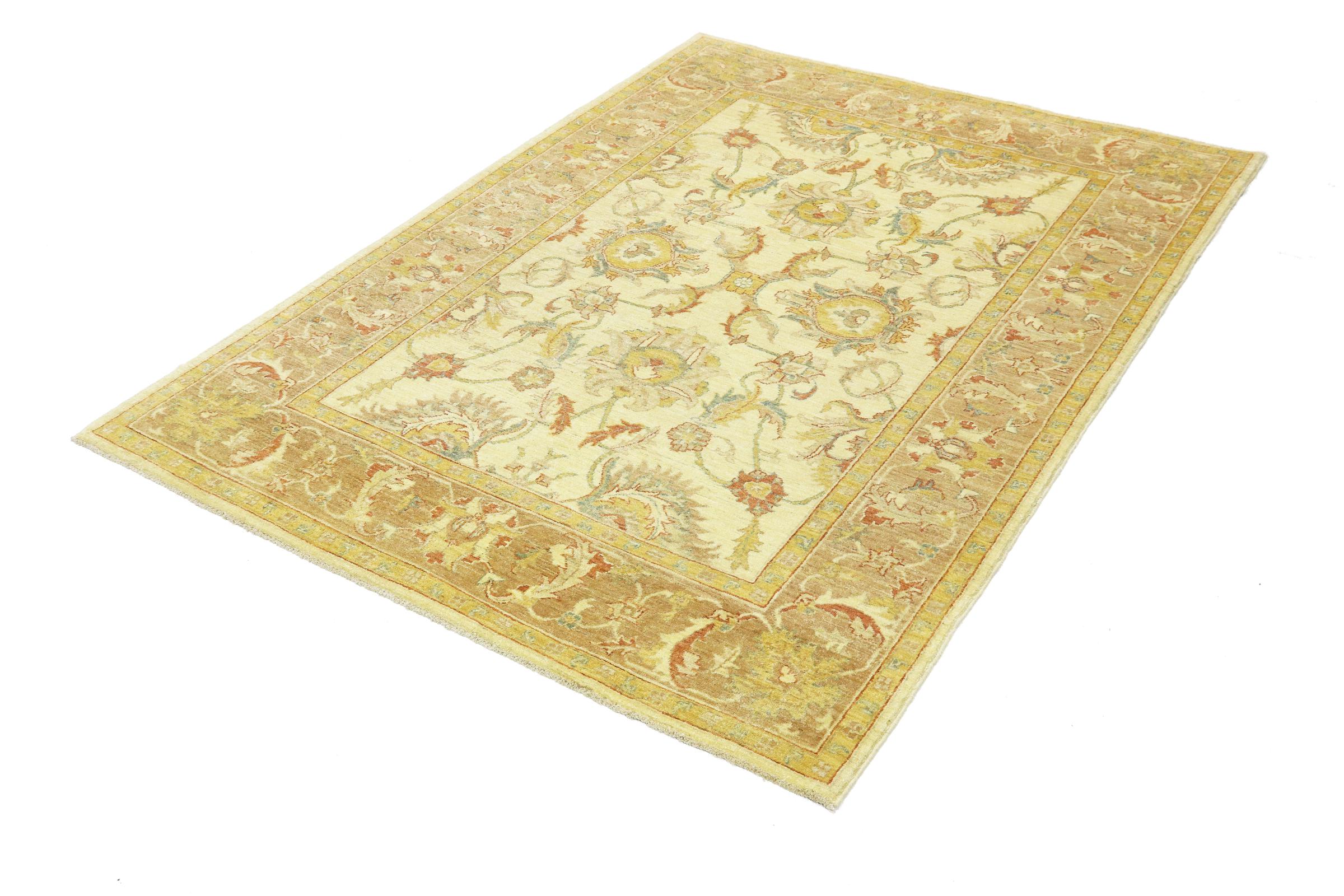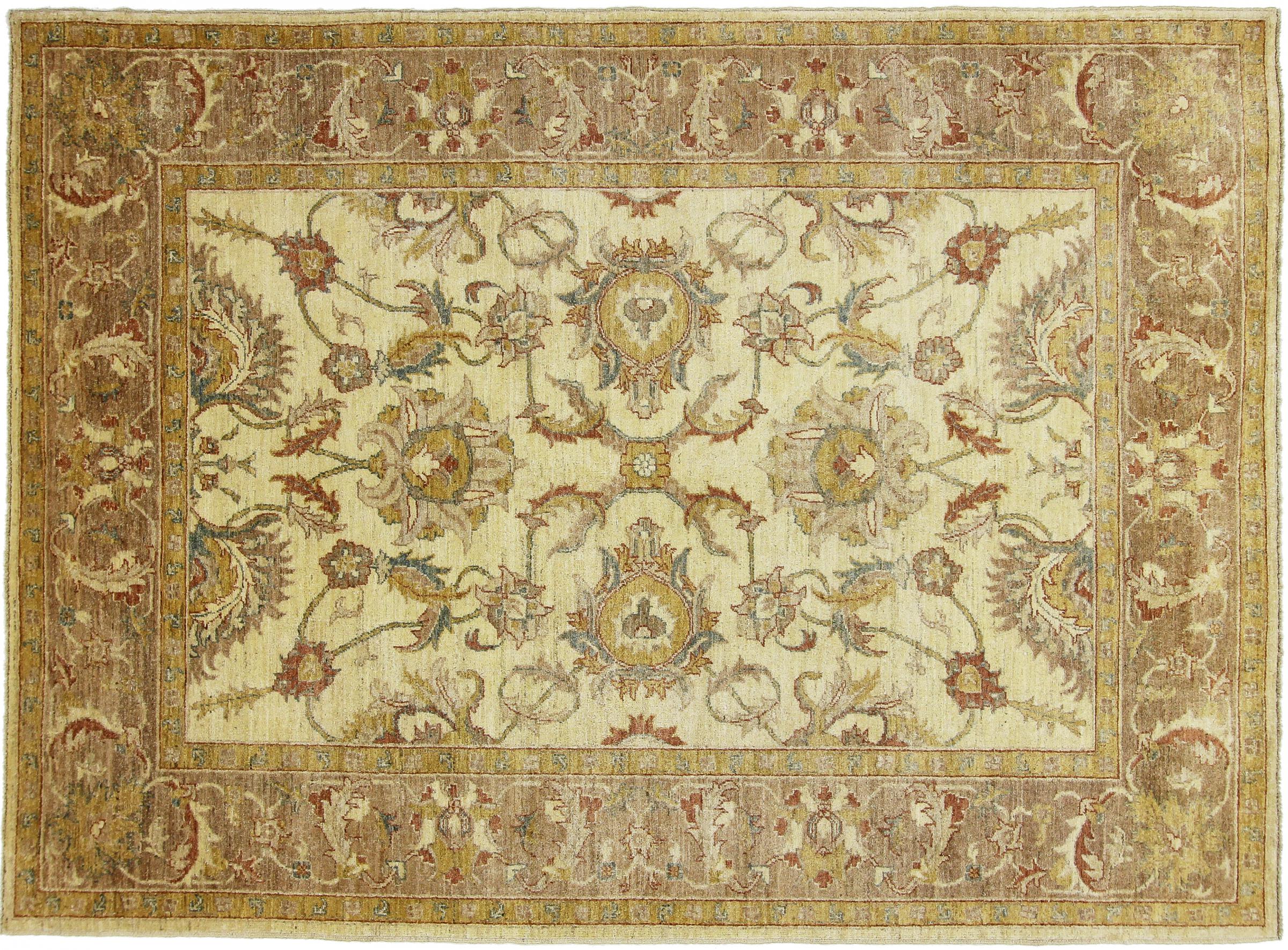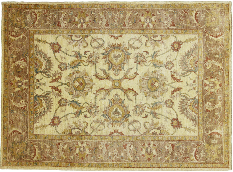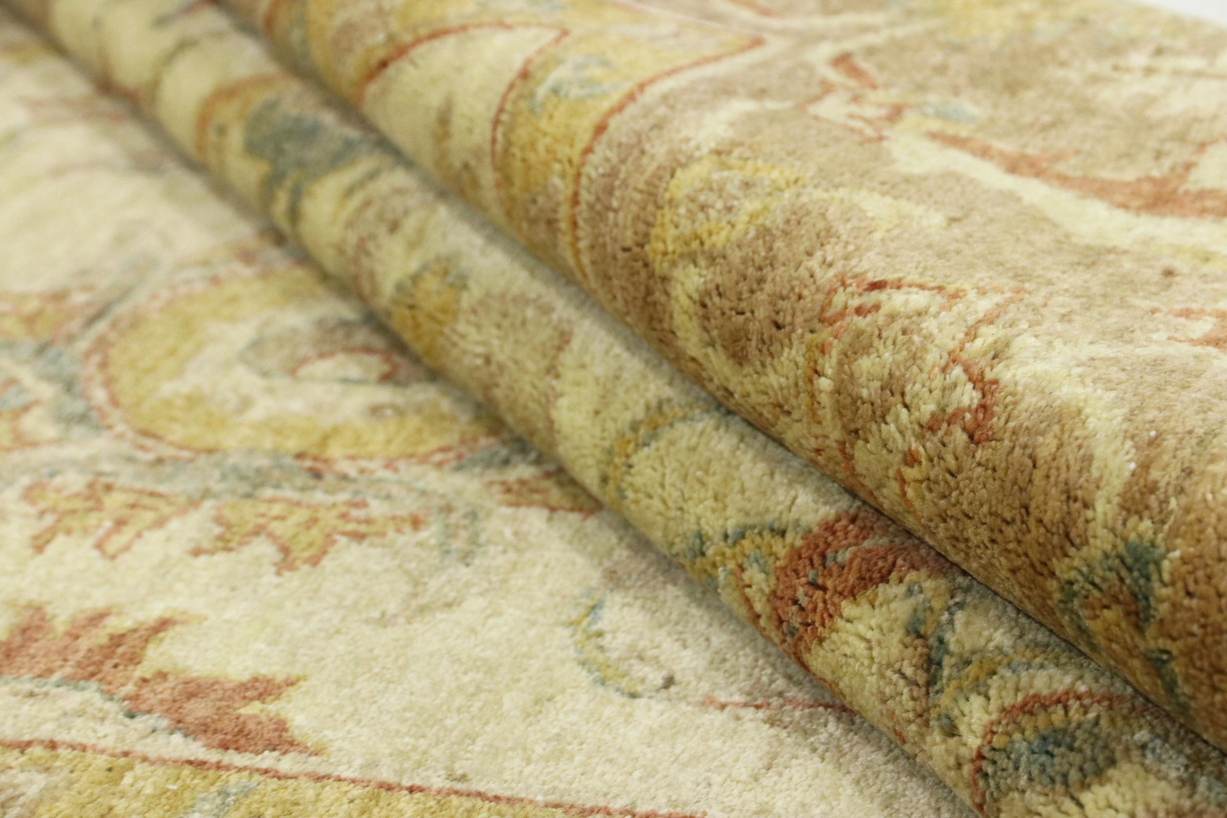 Ved håndknytning opstod dette Ziegler Farahan i Pakistan. Der blev kun anvendt uld i høj kvalitet. De særlige behandlingsmetoder giver anledning til en smukke, moderne vintage patina, som er meget moderne med diskrete farver.
