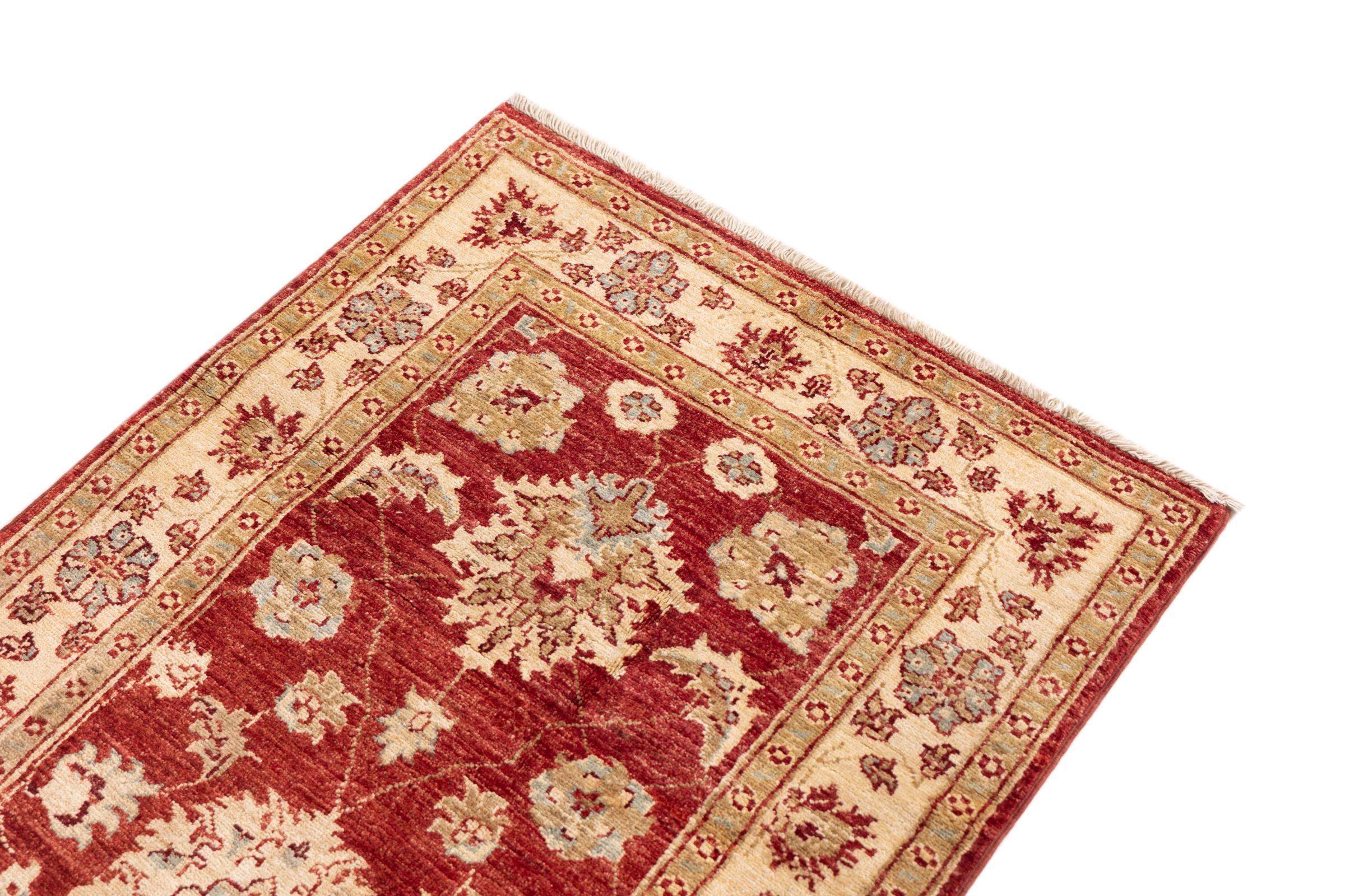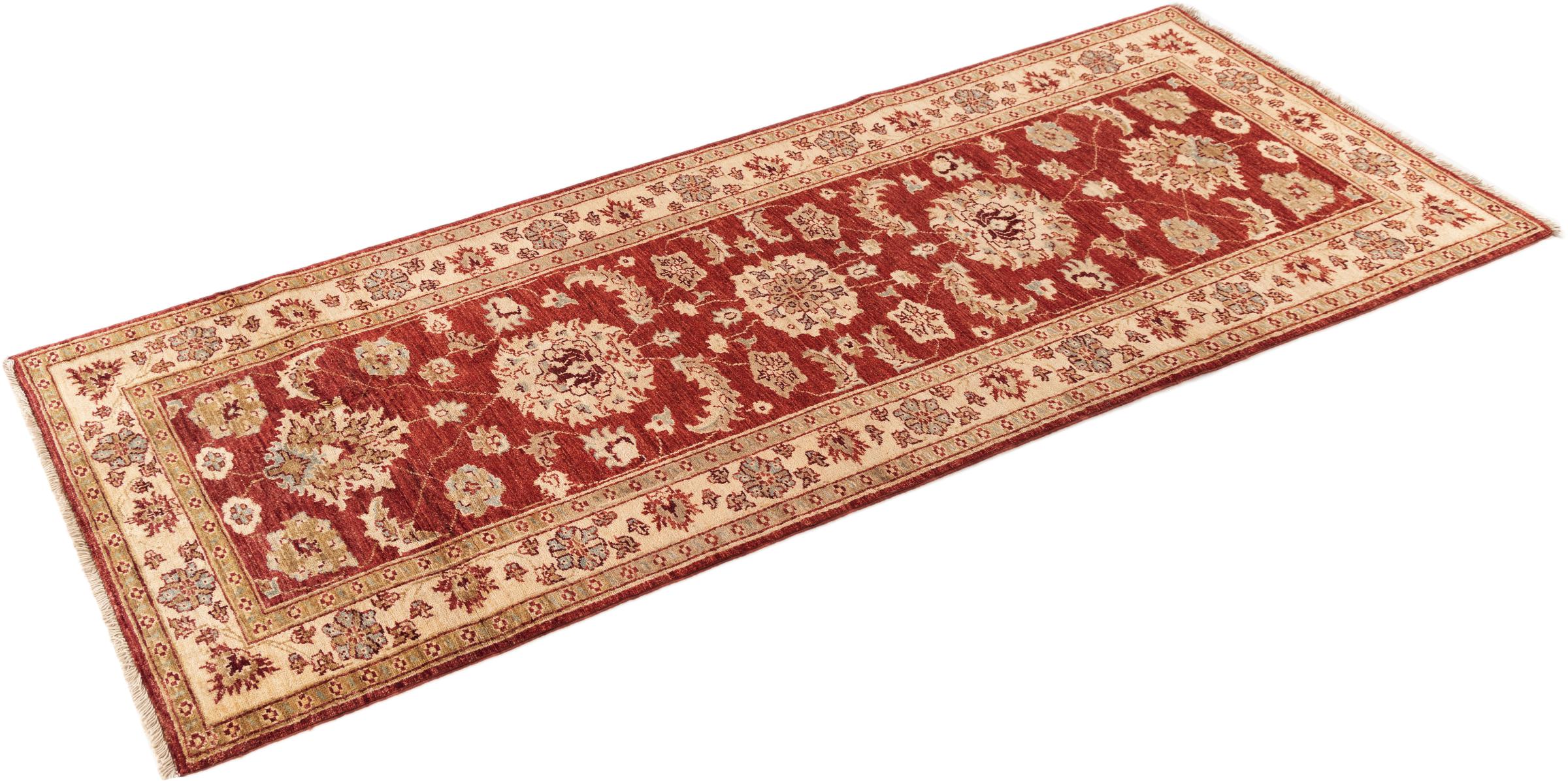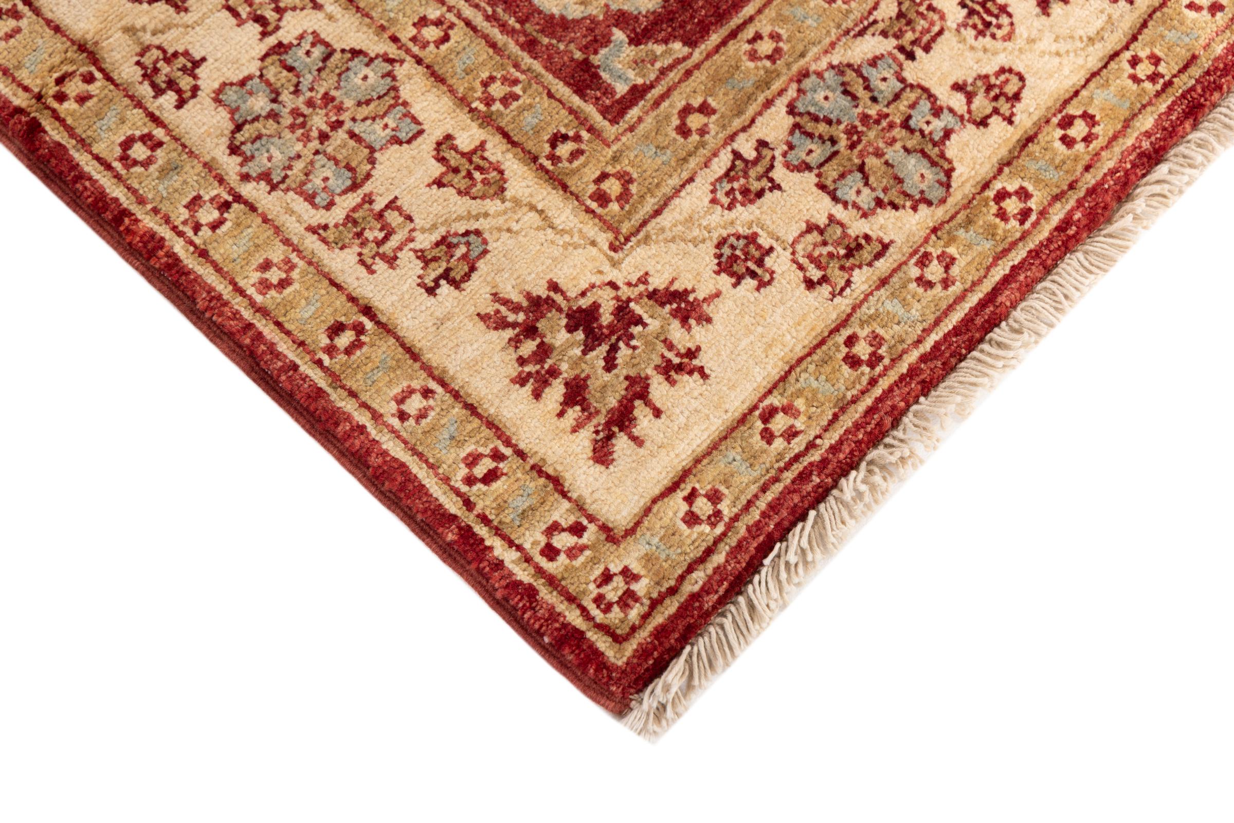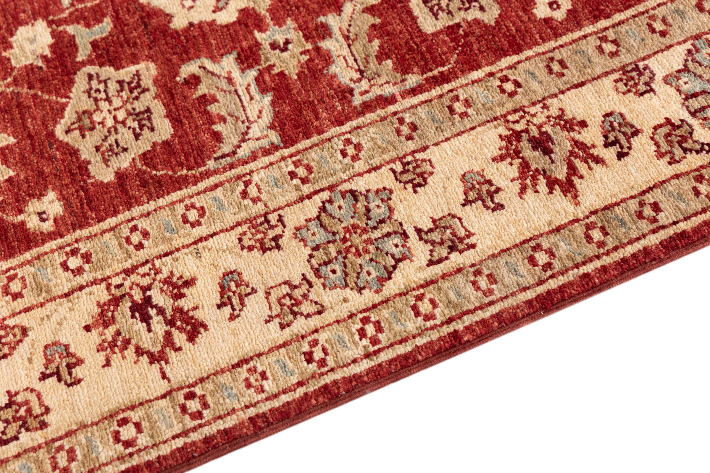 Ved håndknytning opstod dette Ziegler Farahan i Pakistan. Der blev kun anvendt uld i høj kvalitet. De særlige behandlingsmetoder giver anledning til en smukke, moderne vintage patina, som er meget moderne med diskrete farver.