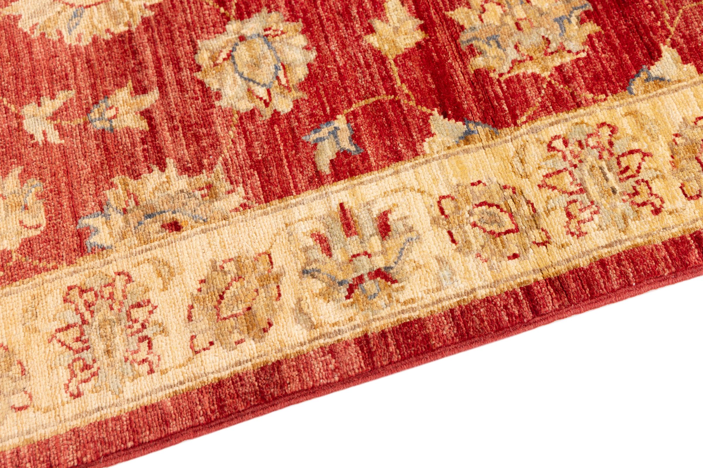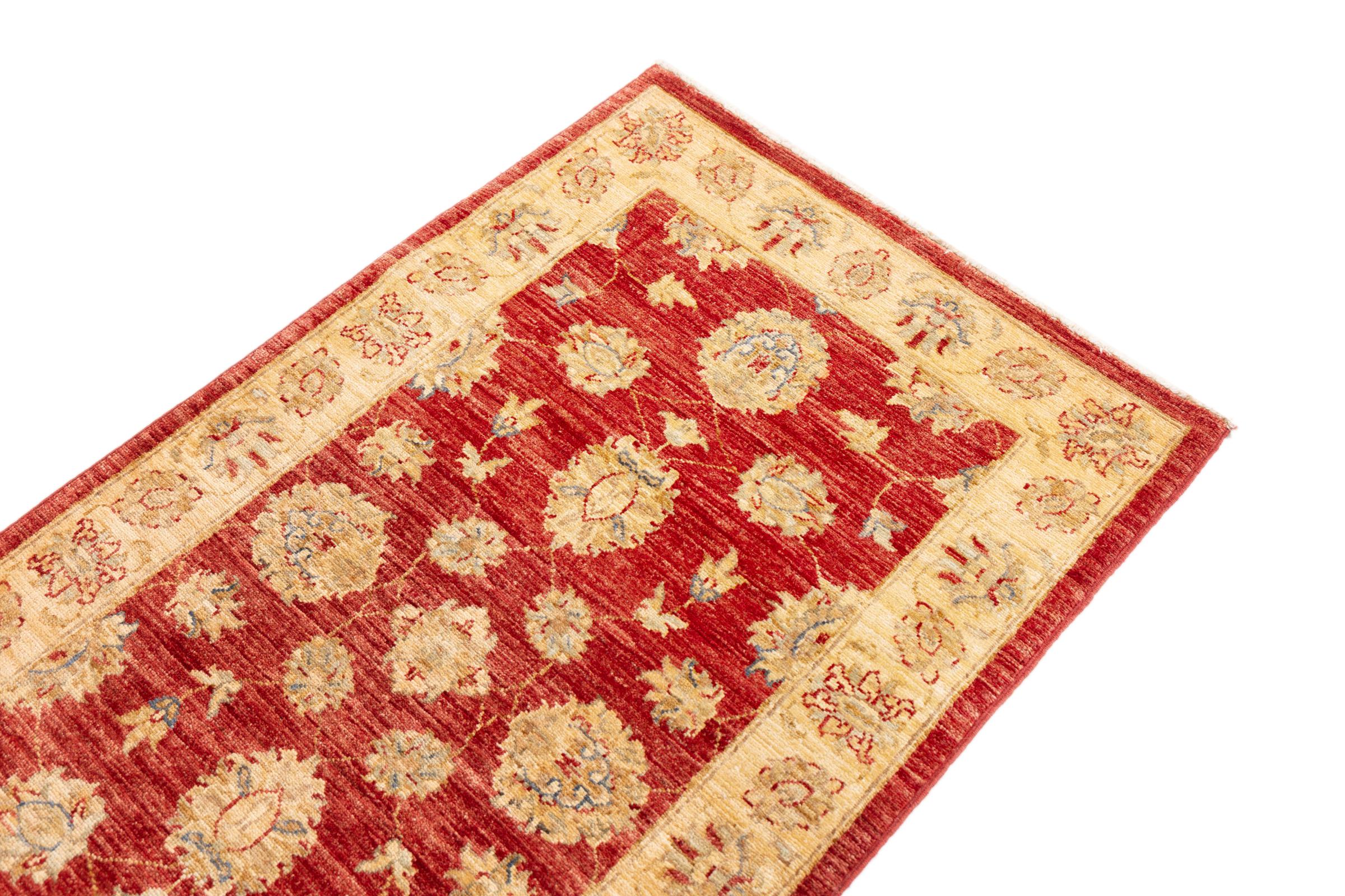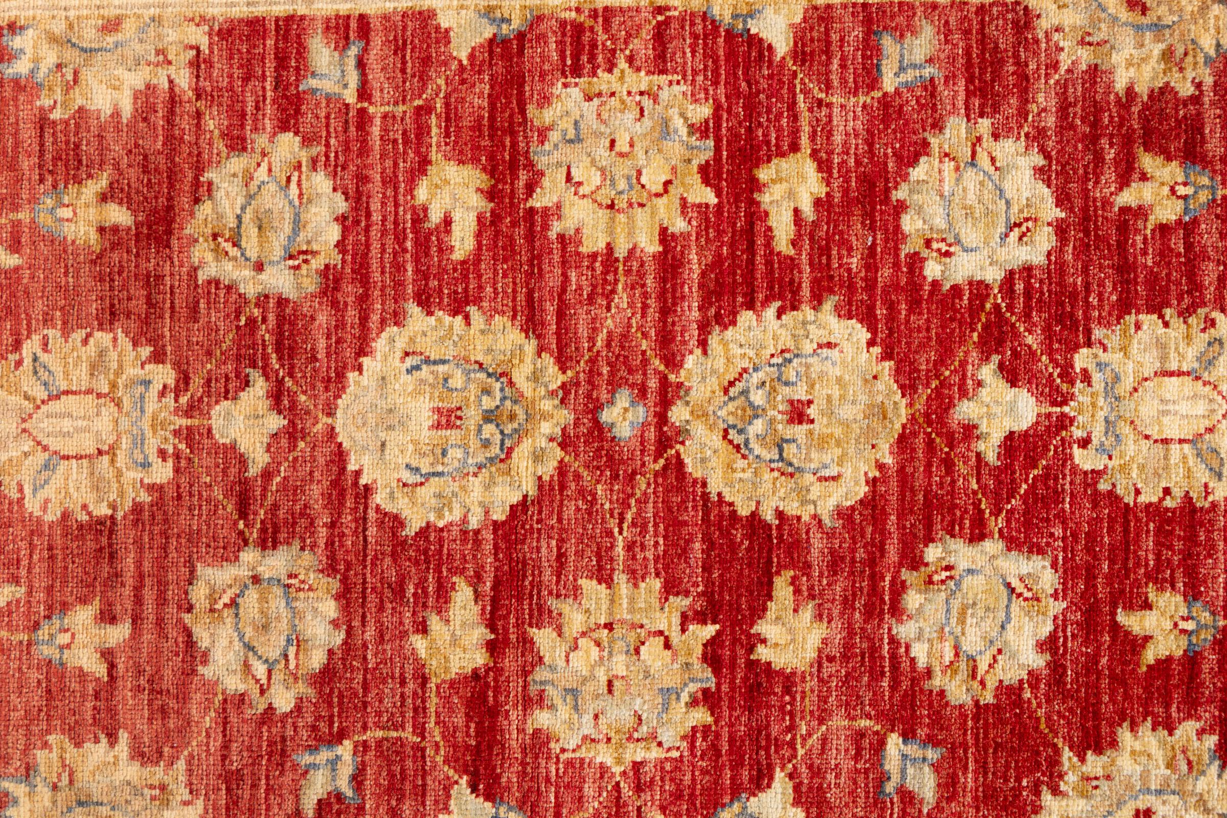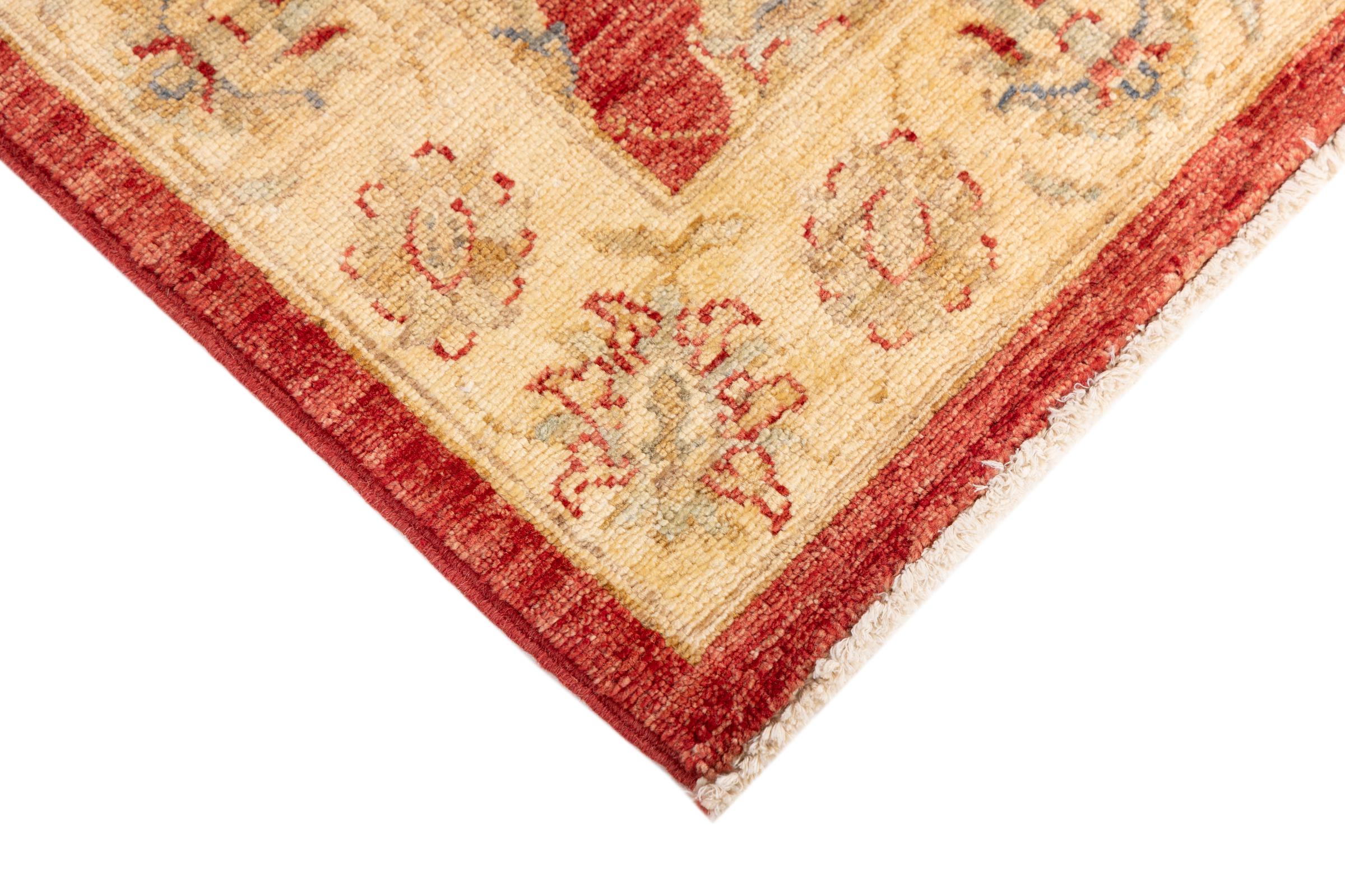 Ved håndknytning opstod dette Ziegler Farahan i Pakistan. Der blev kun anvendt uld i høj kvalitet. De særlige behandlingsmetoder giver anledning til en smukke, moderne vintage patina, som er meget moderne med diskrete farver.