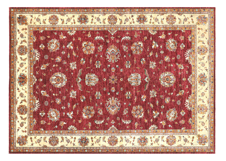 Dette tæppe består af håndspundet fåruld af højeste kvalitet. Især i Iran (tidligere Persien), Afghanistan og Pakistan spindes uld med hånden, før tæppet faktisk knuses. Uld har bevist sig som et naturligt og ekstremt slidstærkt materiale gennem århundreder. Det har blandt andet snavsafvisende og varmeisolerende egenskaber. Samtidig er uld uforlignelig blød og bringer en naturlig glans.
